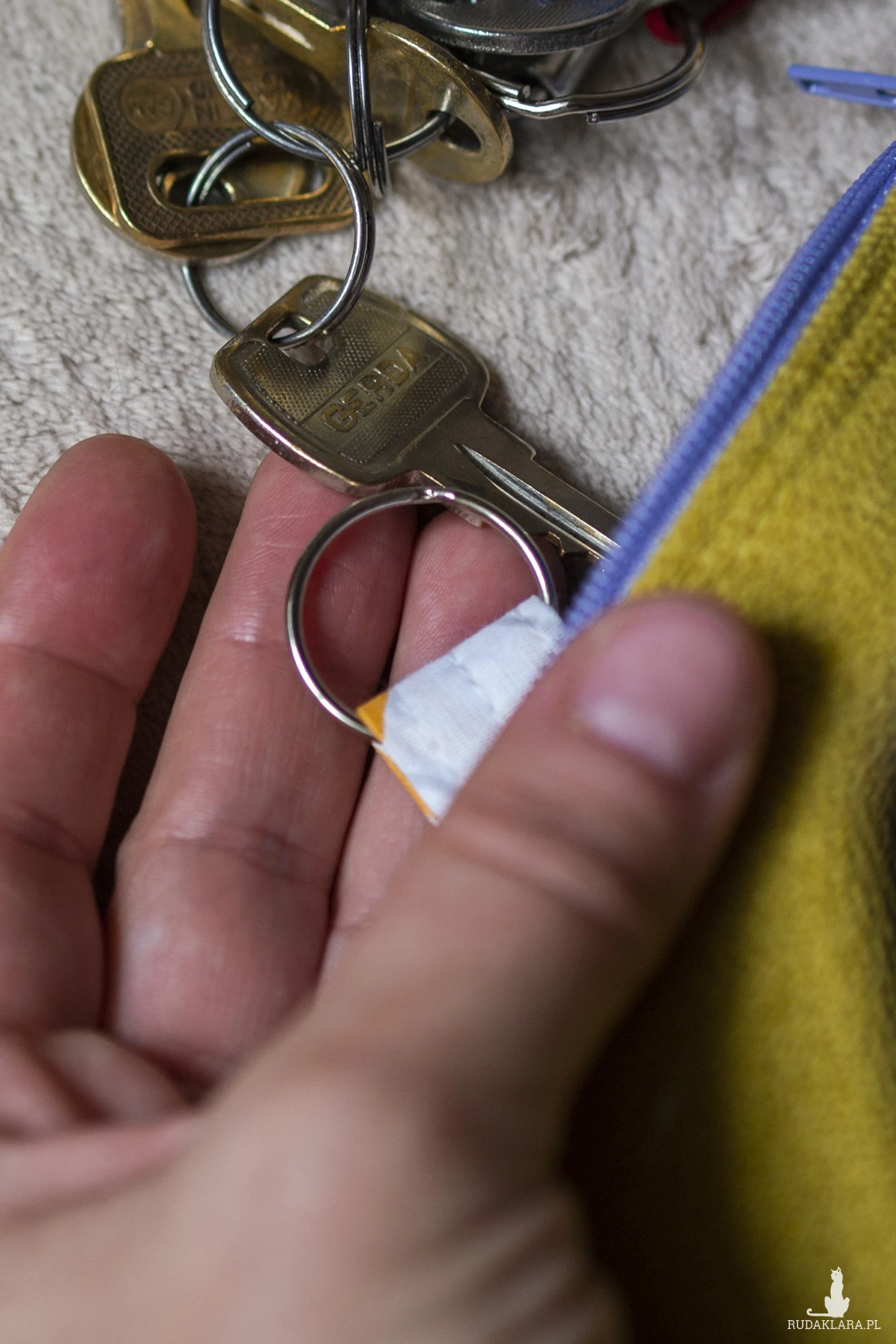 Pokrowiec w środku posiada metalowe kółko do którego można dopiąć klucze.