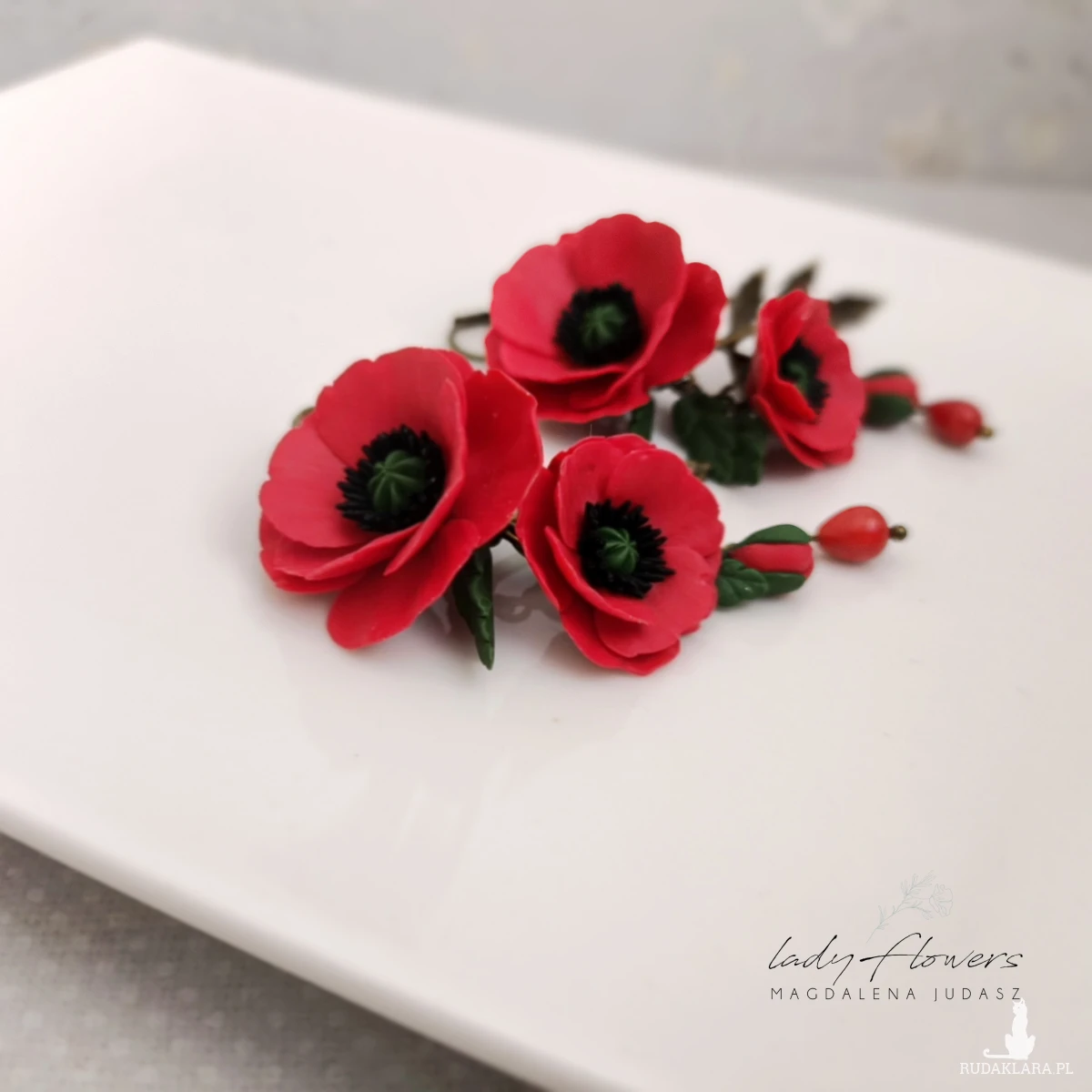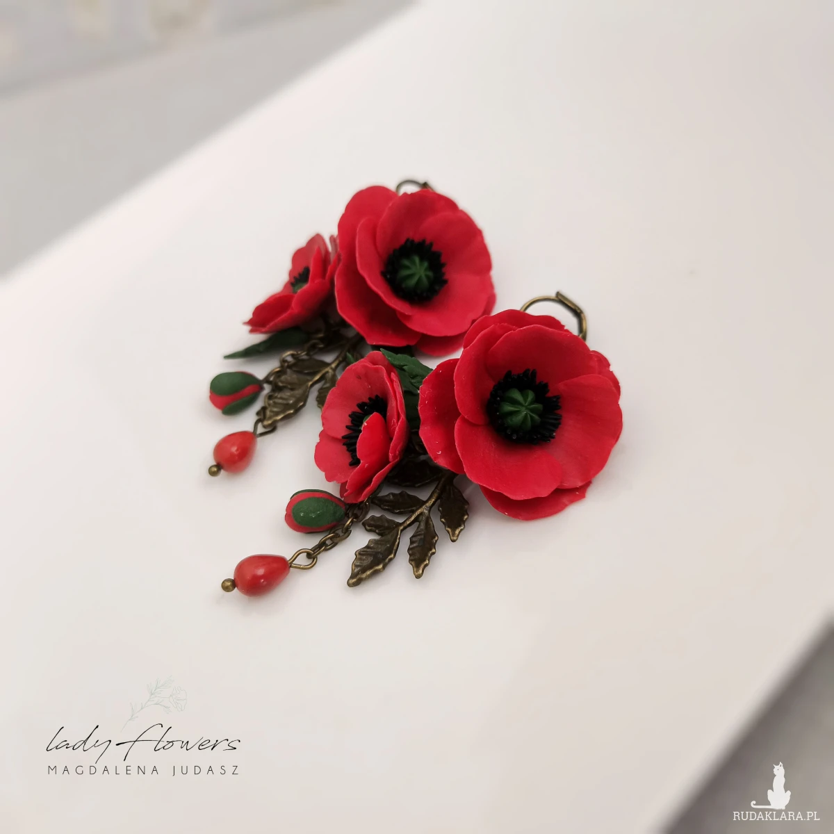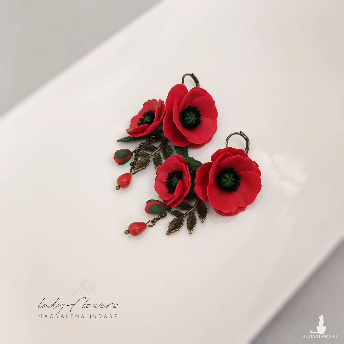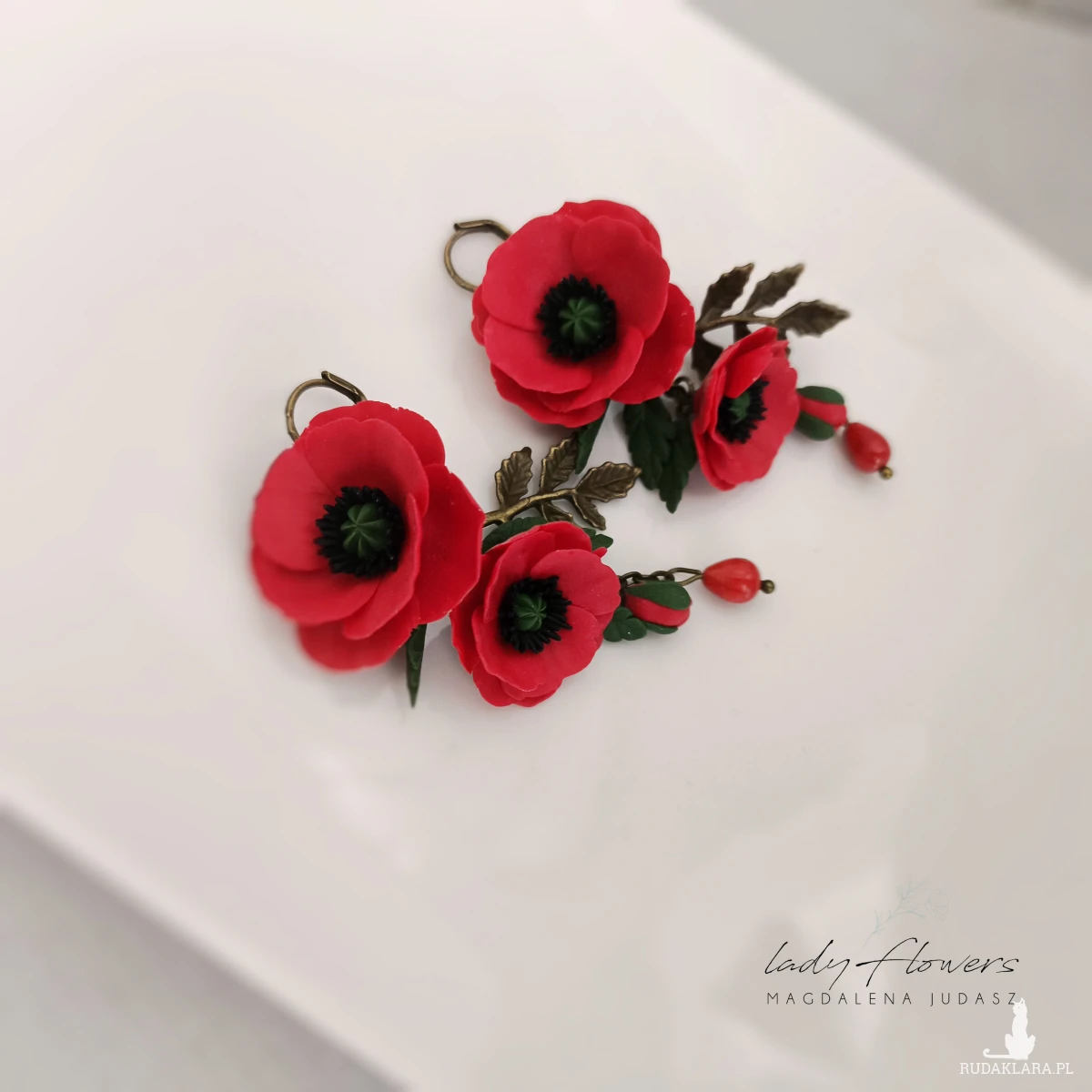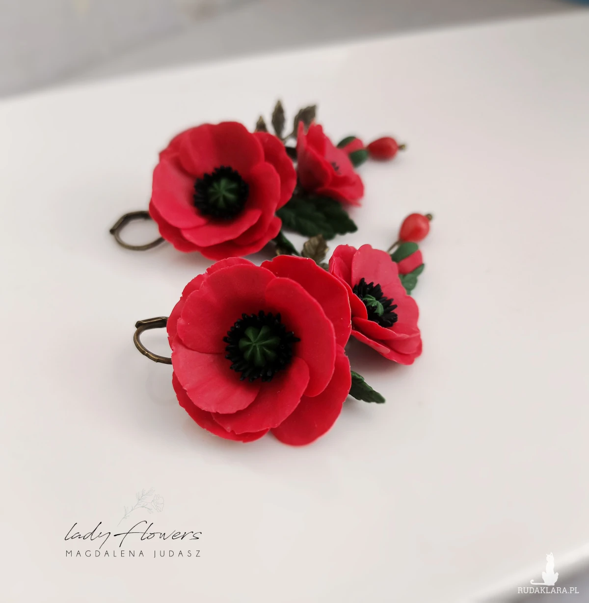 Kolczyki z makami ręcznie wykonane z profesjonalnej masy termoutwardzalnej.