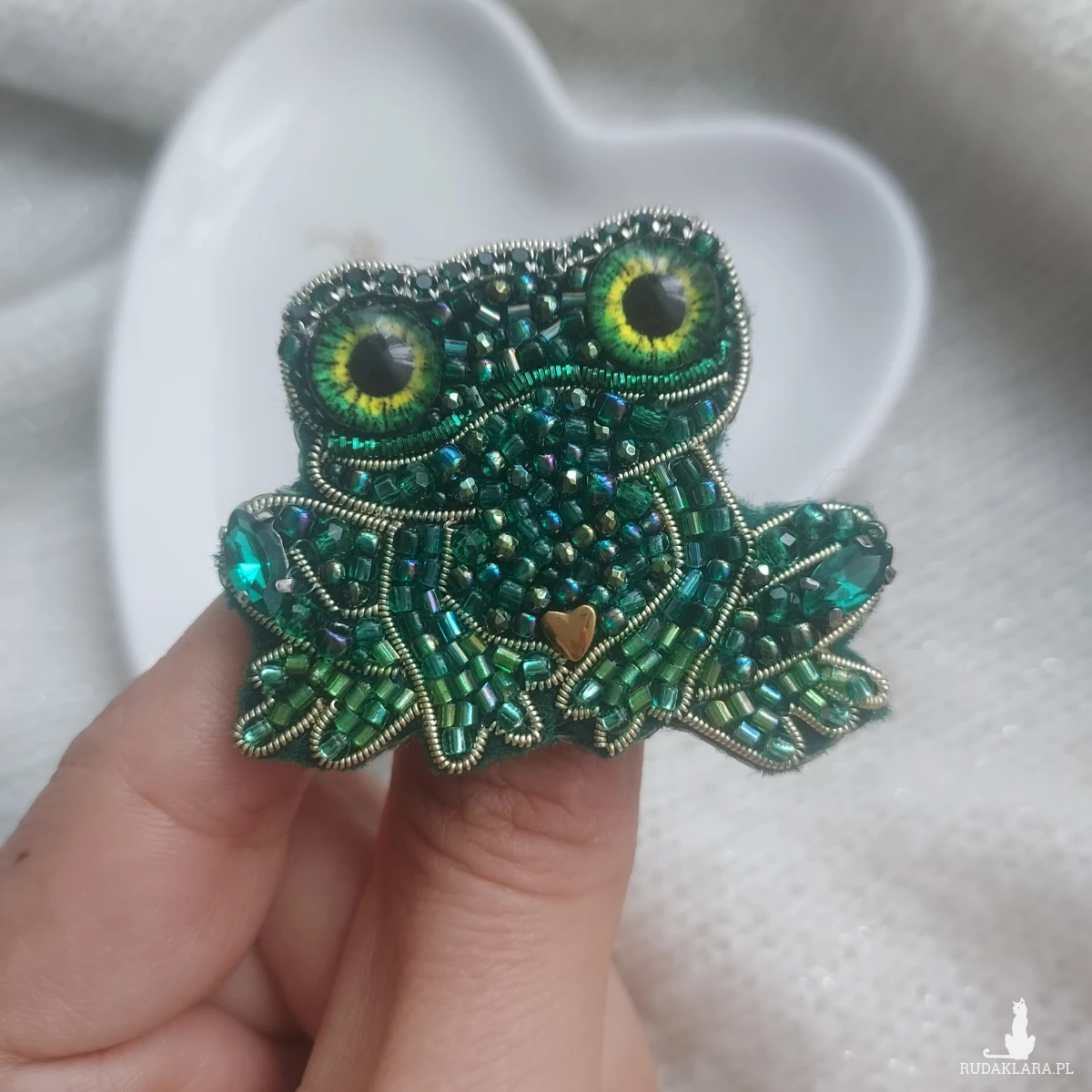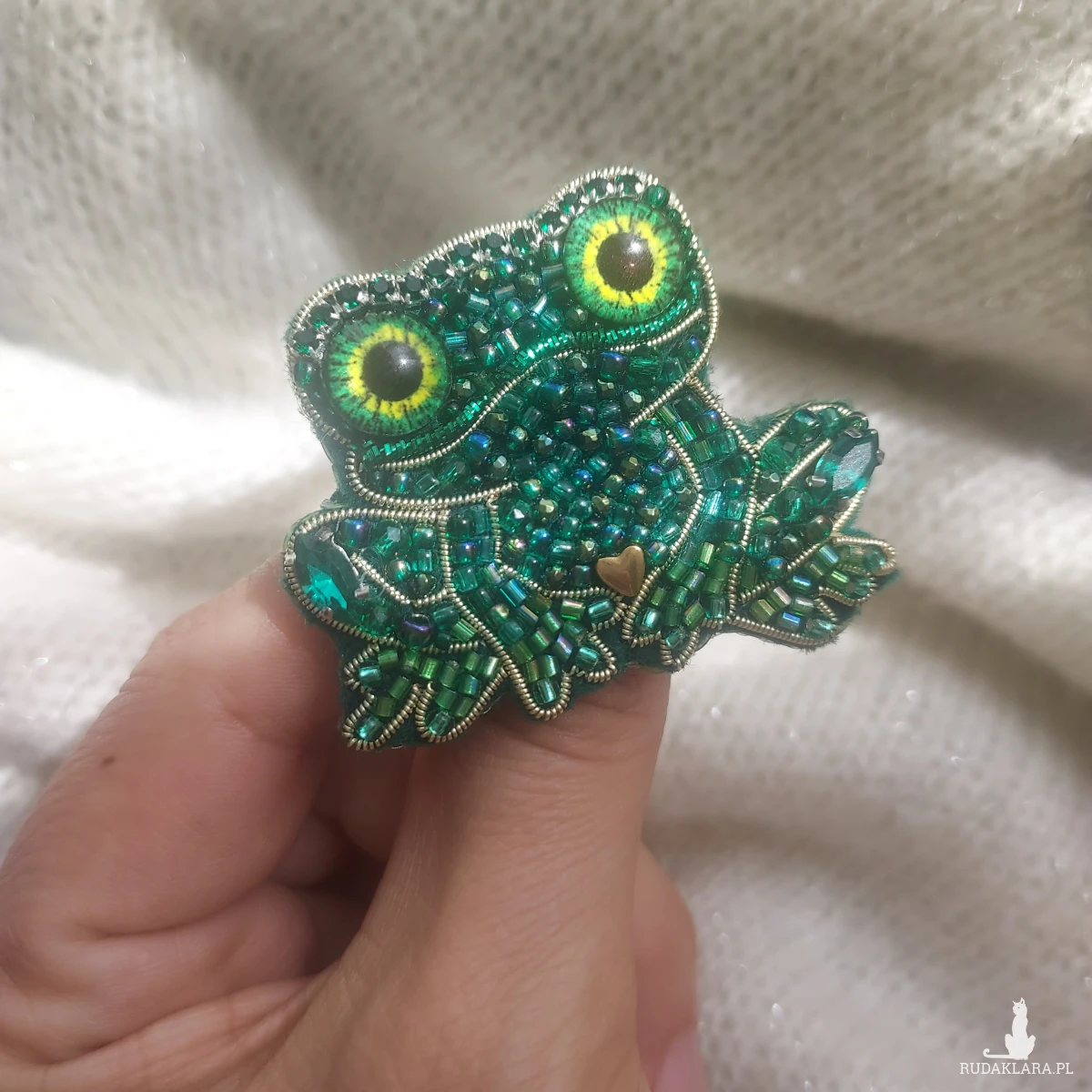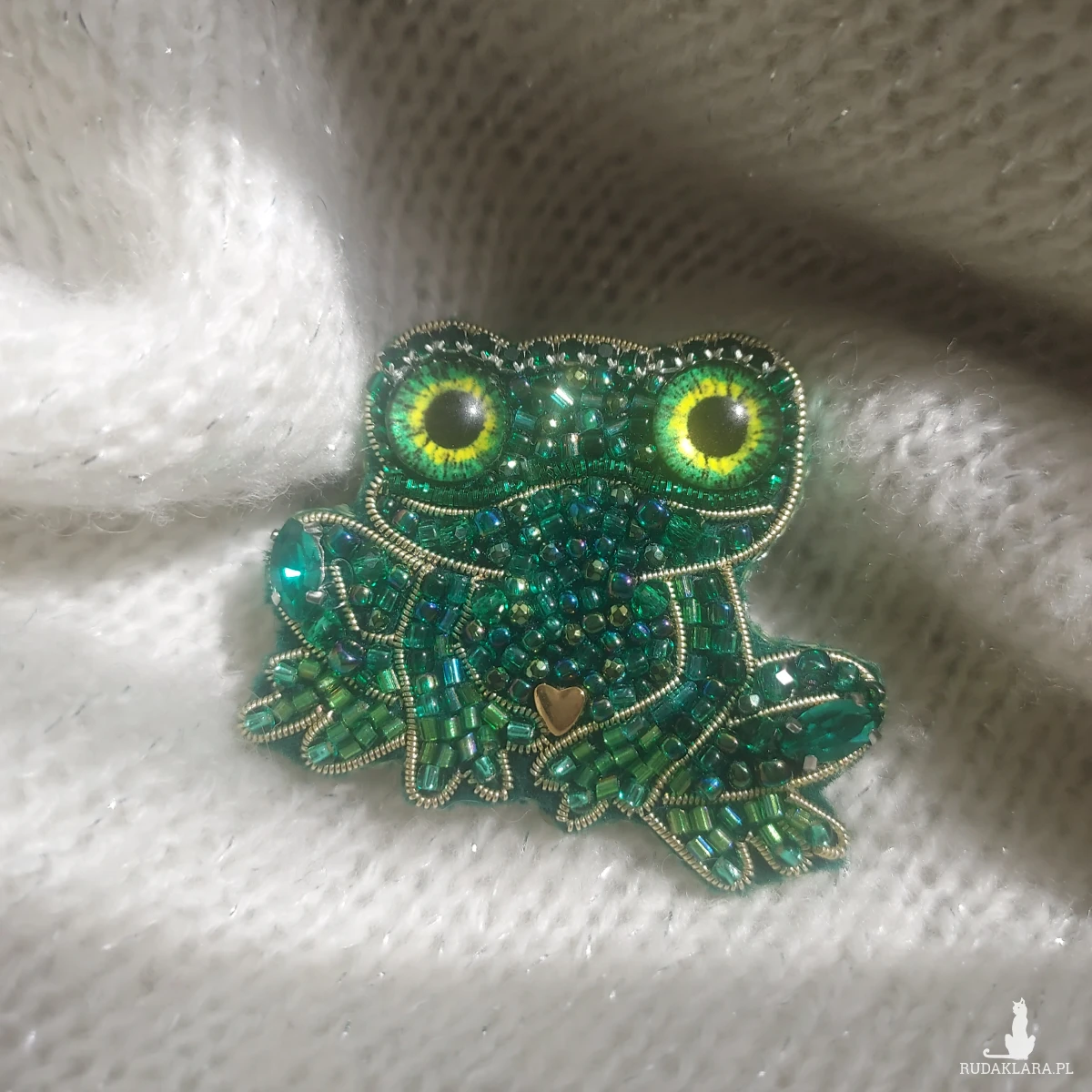 Wyjątkowa broszka ŻABKA- wykonana z ogromną starannością i dbałością o detale haftem koralikowym.