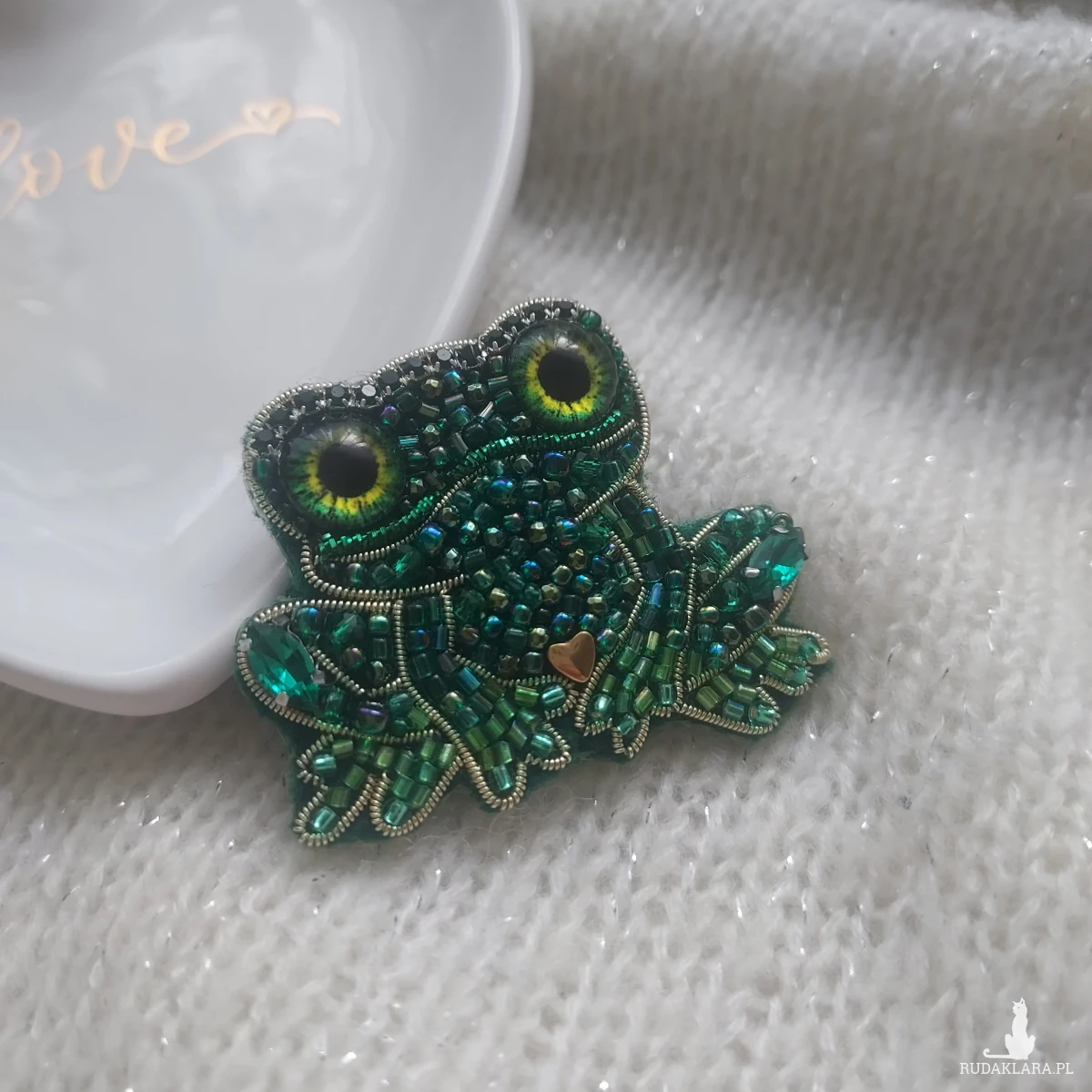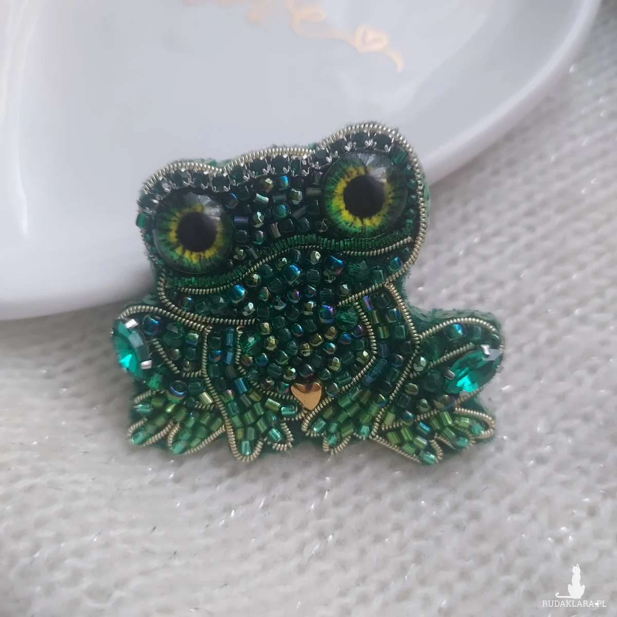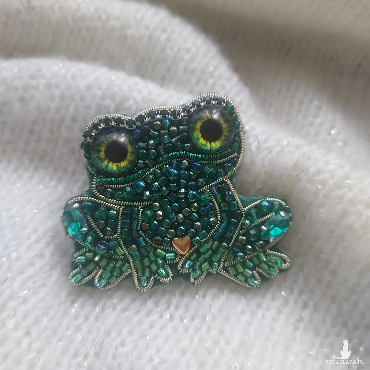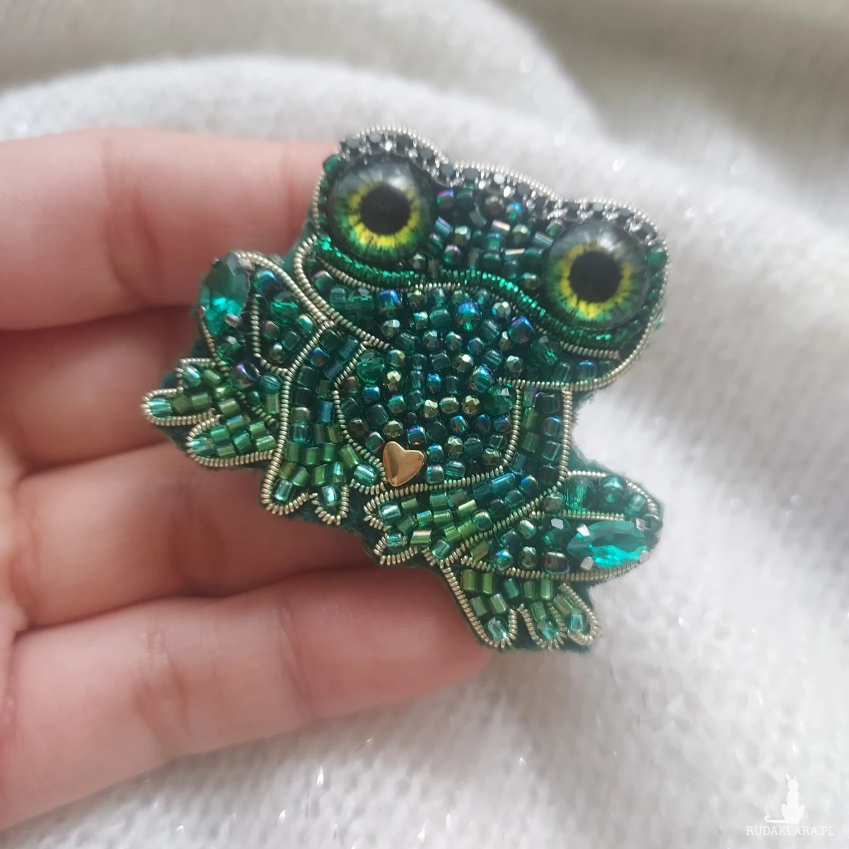 Wyjątkowa broszka ŻABKA- wykonana z ogromną starannością i dbałością o detale haftem koralikowym.