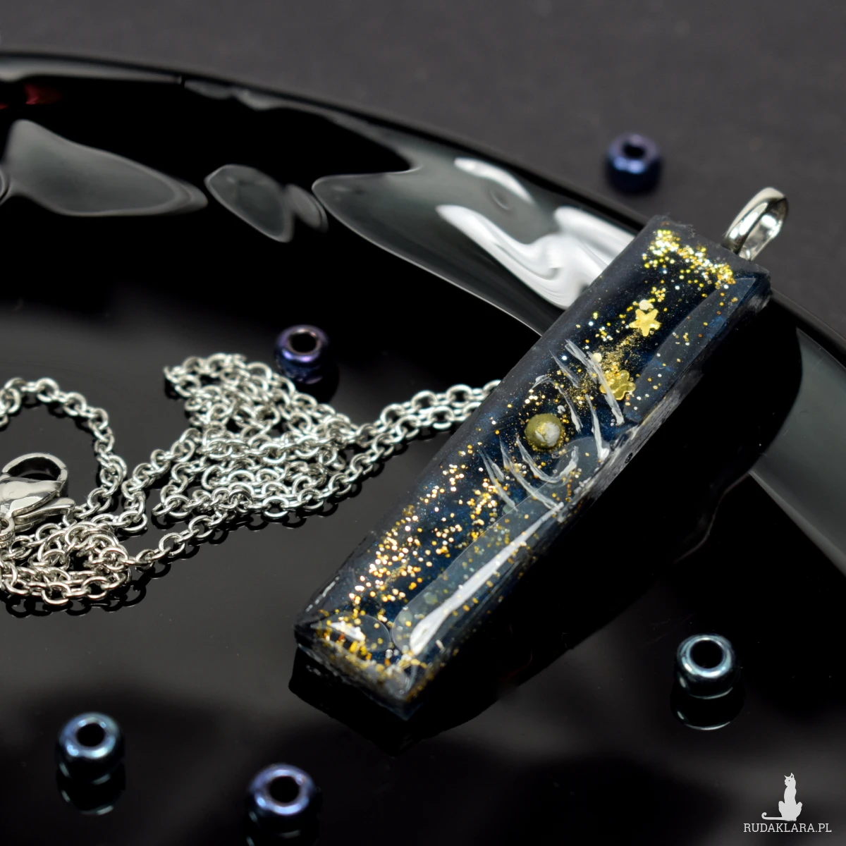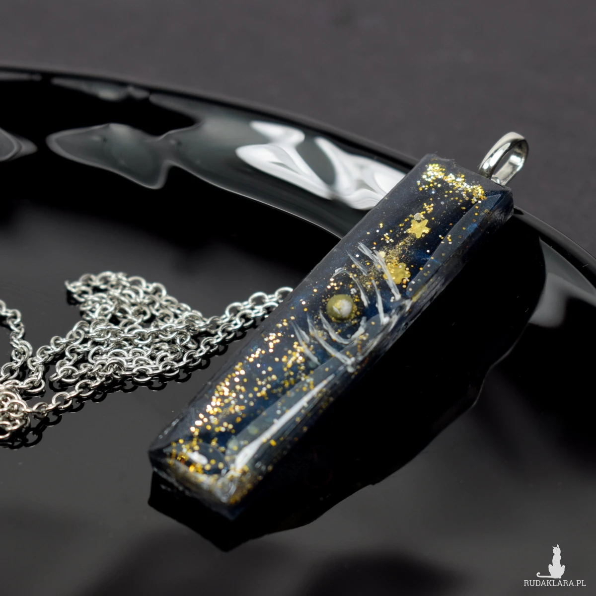 Wisiorek tworzony jest warstwowo z żywicy epoksydowej, co daje efekt