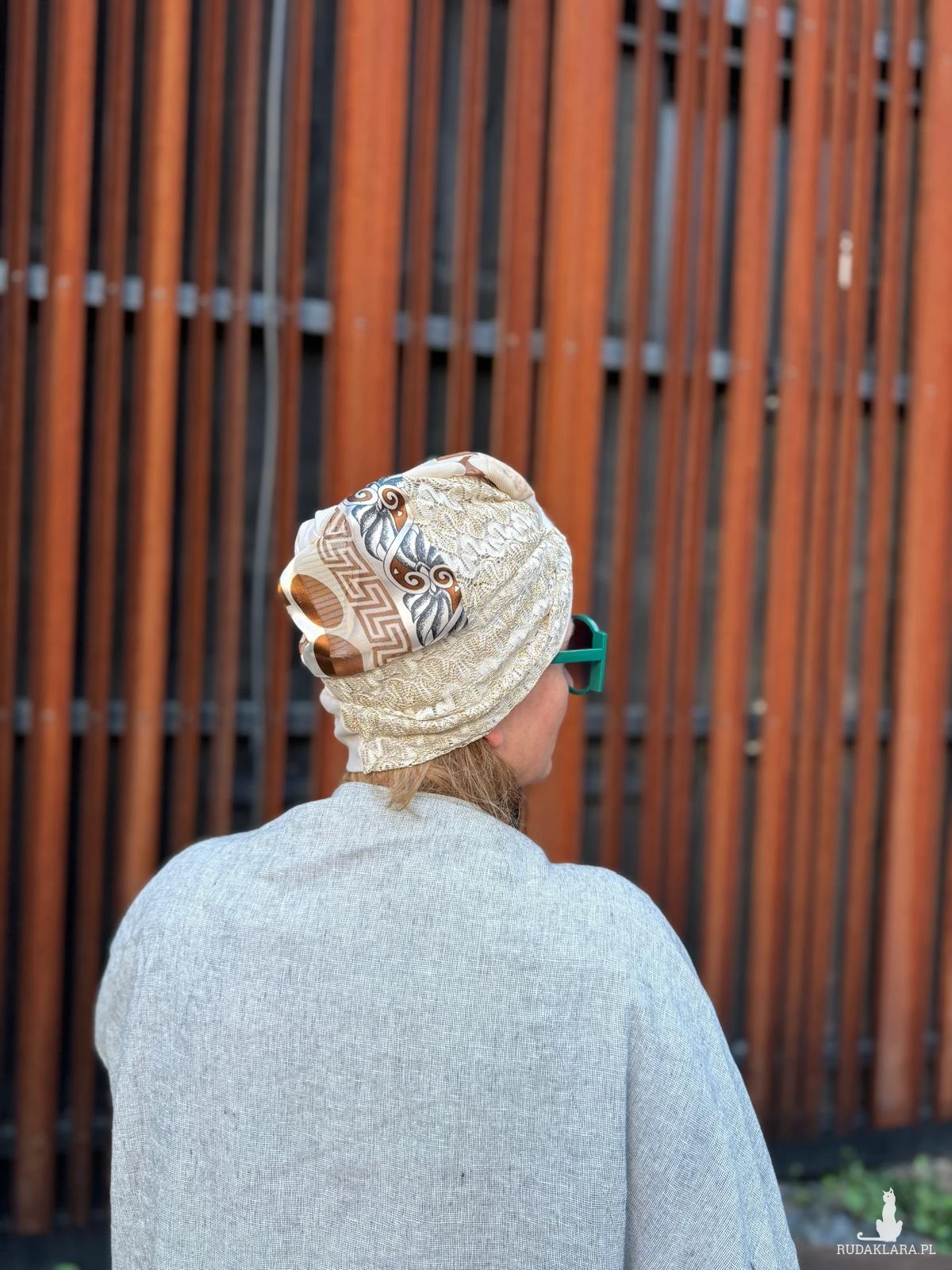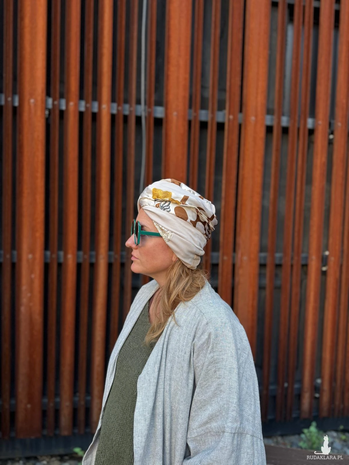 Turban kolorowy etno orient milutki uniwersalny, zalecany dla artystek, wizjonerek, prowokatorek i matek które już widzą światełko w tunelu, dla wyzwolonych kotek z wyobraźnia, dla pań bez wyobraźni NIE , box w1