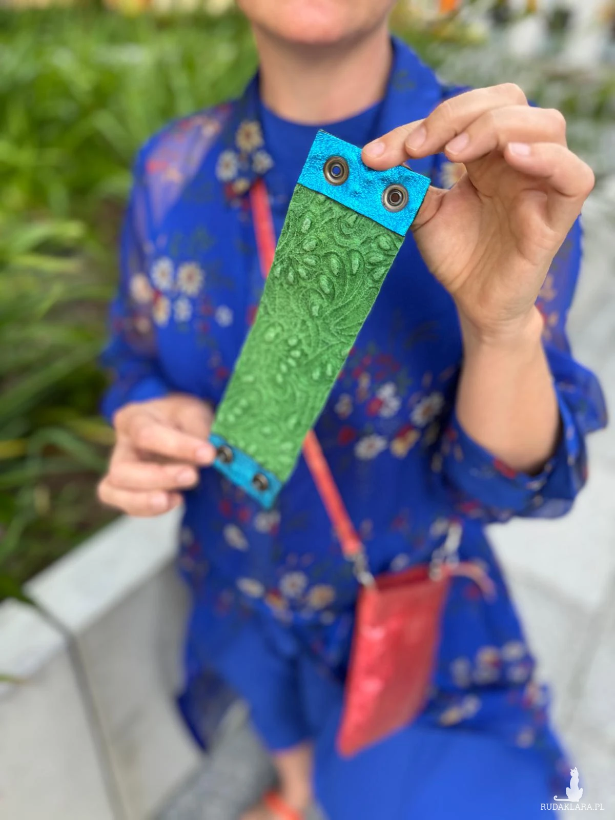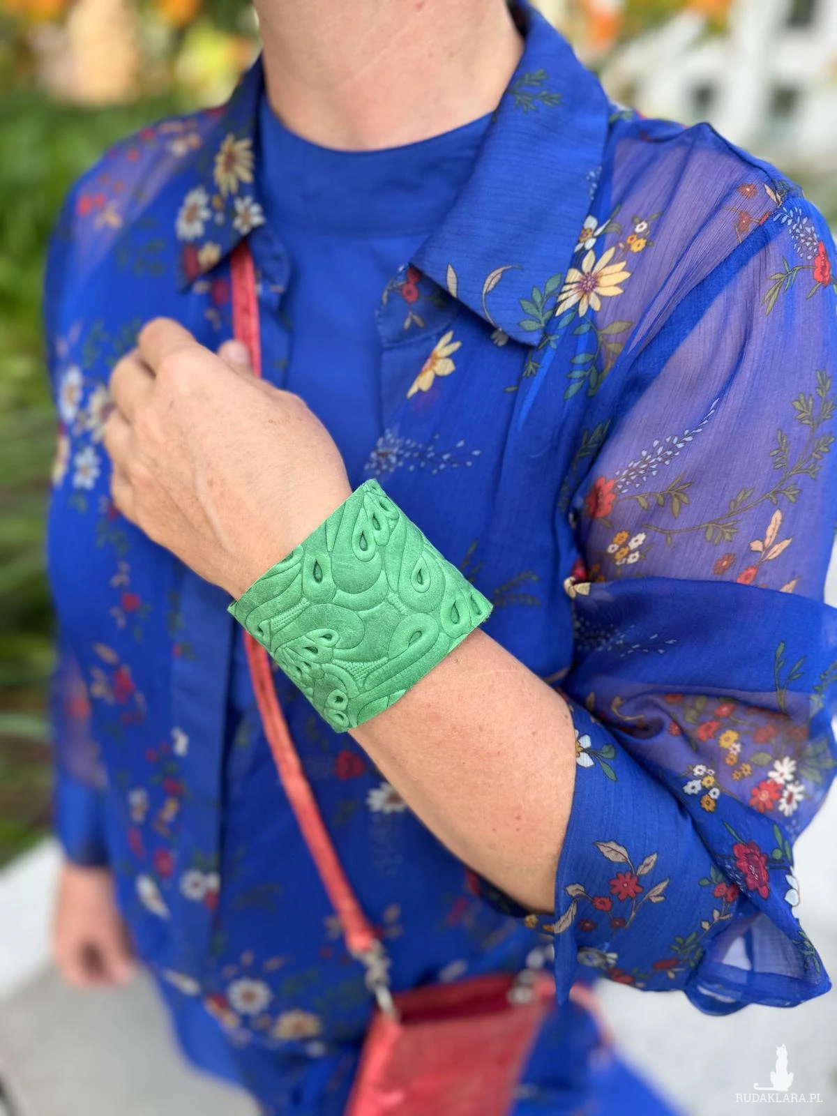 Bransoletka wykonana z przepięknej miękkiej skóry szerokość bransoletki 6,5 cm obwód nadgarstka 19 cm, polecam pojedynczy egzemplarz