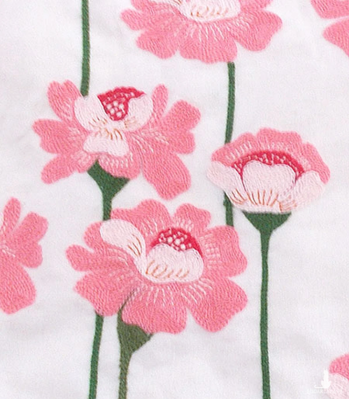 Nowa, ozdobna poszewka na poduszkę z haftem kwiatów z przodu, tył gładki, rozmiar 45 x 45 cm, zapinana na błyskawiczny zamek, certyfikat "OEKO-TEX Standard 100", Marka "Smukee". Poszewka sprawdzi się zwłaszcza we wnętrzach urządzonych stylu boho, rustykalnym, hygge, tradycyjnym i mieszanym.