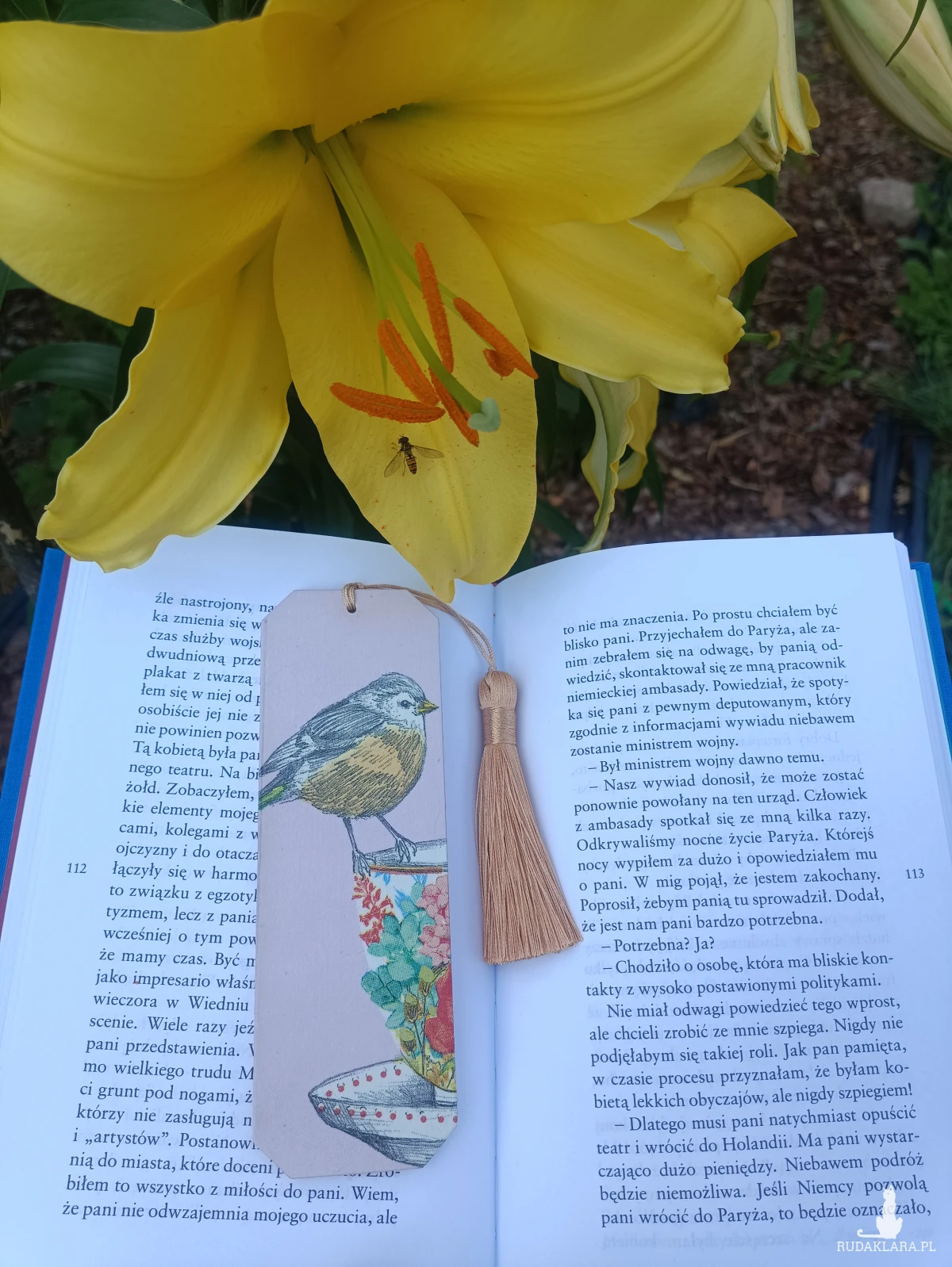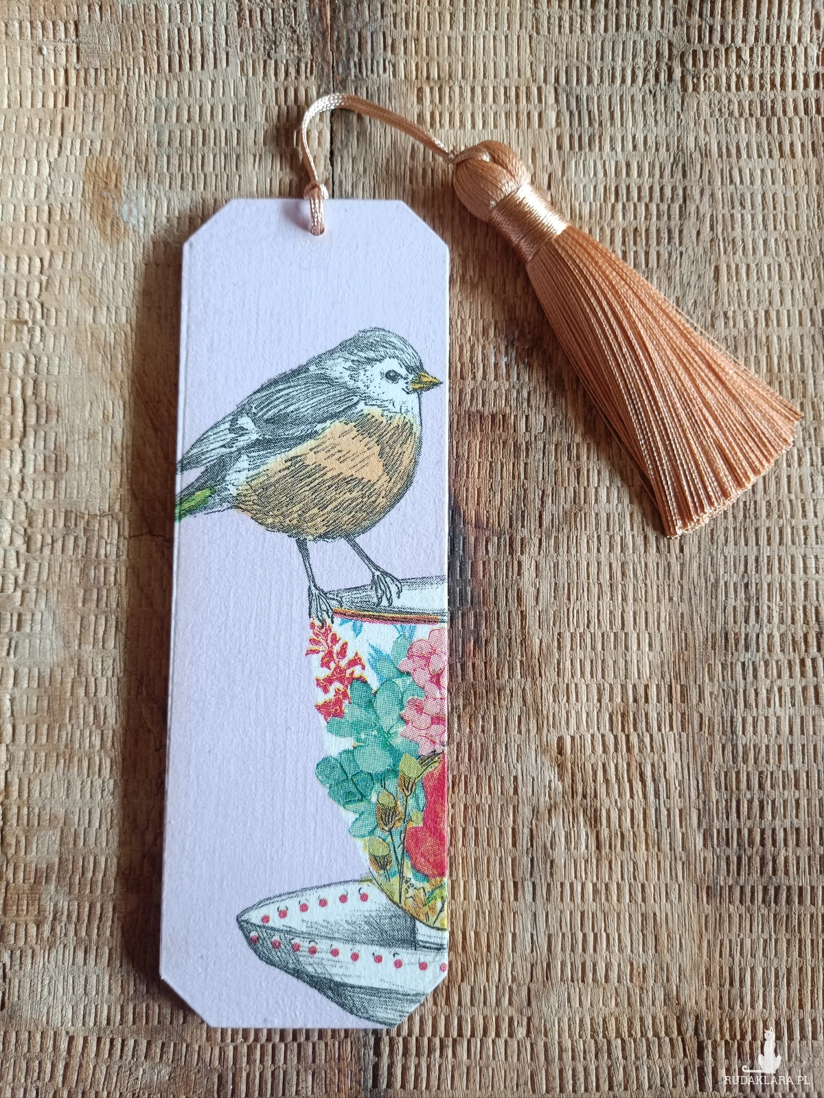 Zakładka do książki, drewniana, wykonana metodą decoupage. Idealnie sprawdzi się jako prezentowy dodatek do książki. Oryginalny wzór.
