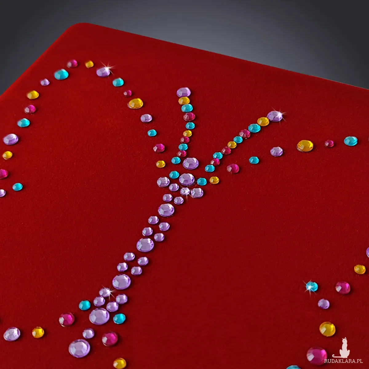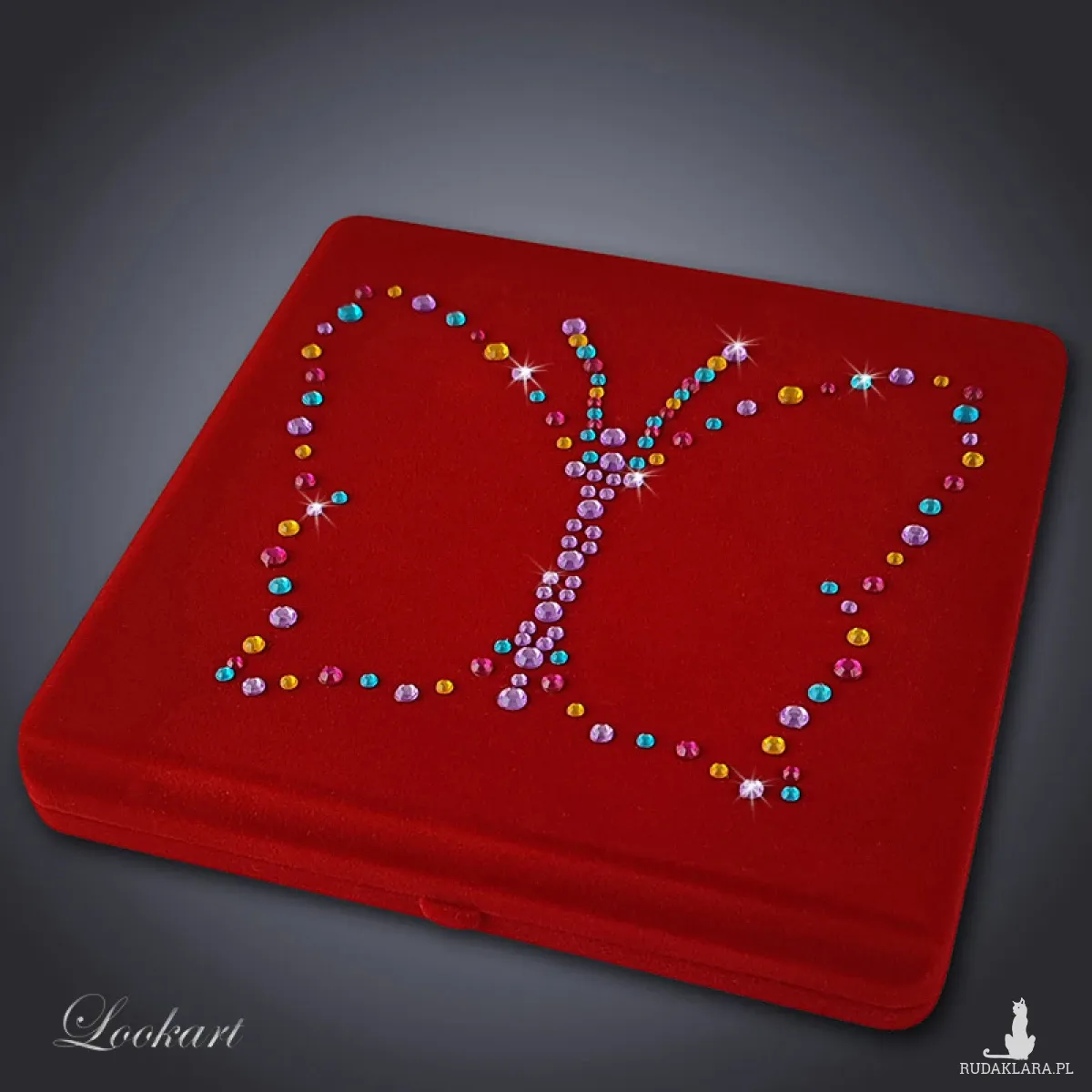 Wieczko pudełka jest zdobione kolorowymi kryształkami.