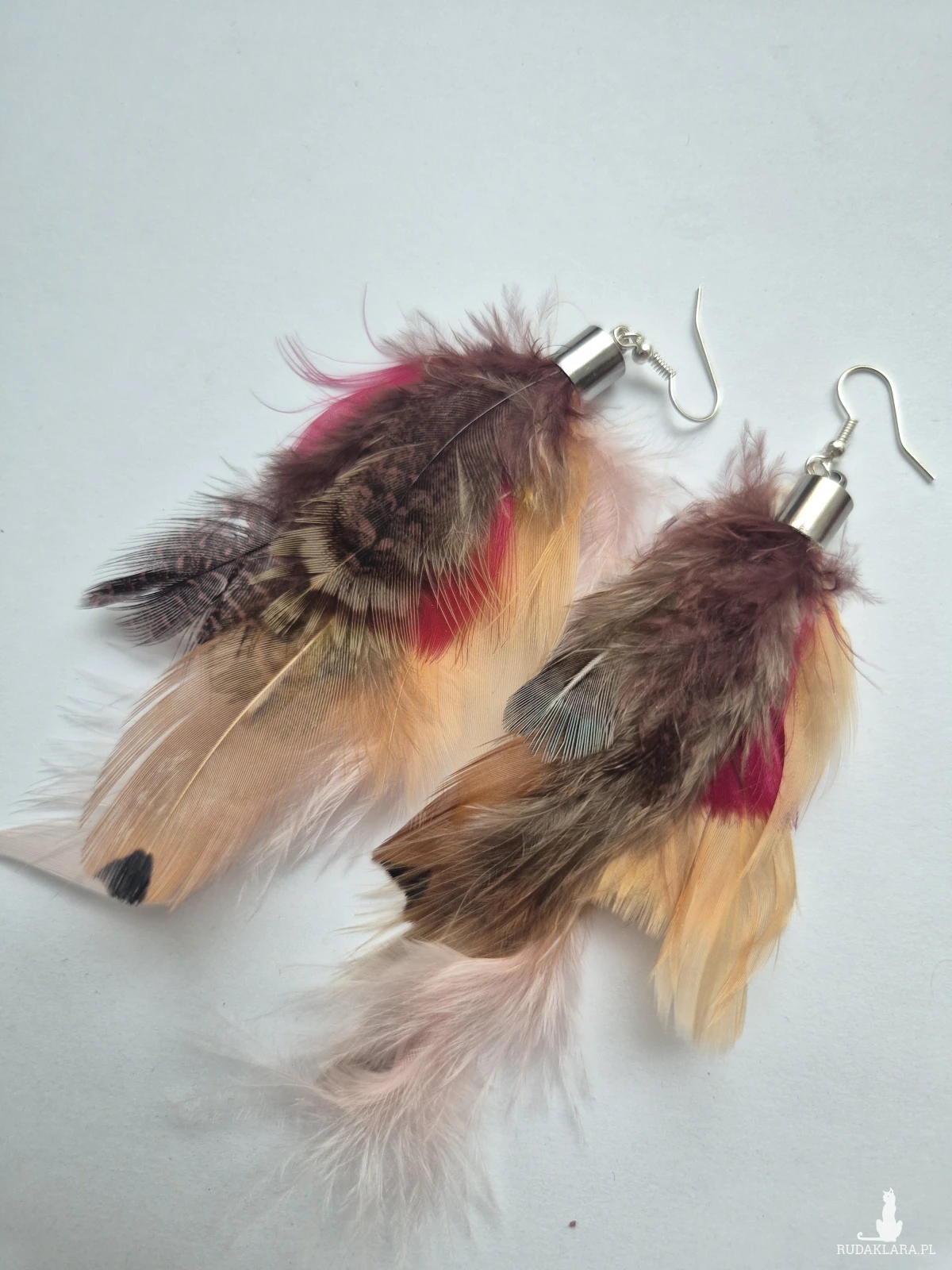 Kolczyki bordowe pióra eleganckie delikatne zwracające uwagę polecam Box X1