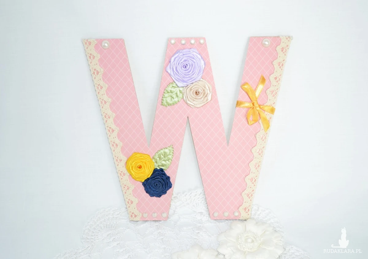Litera ze sklejki ozdobiona z użyciem różnych technik. Piękna ozdoba dziecięcego pokoju lub ciekawy pomysł na prezent