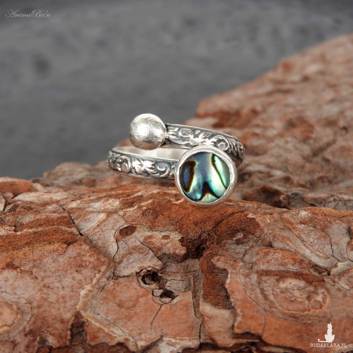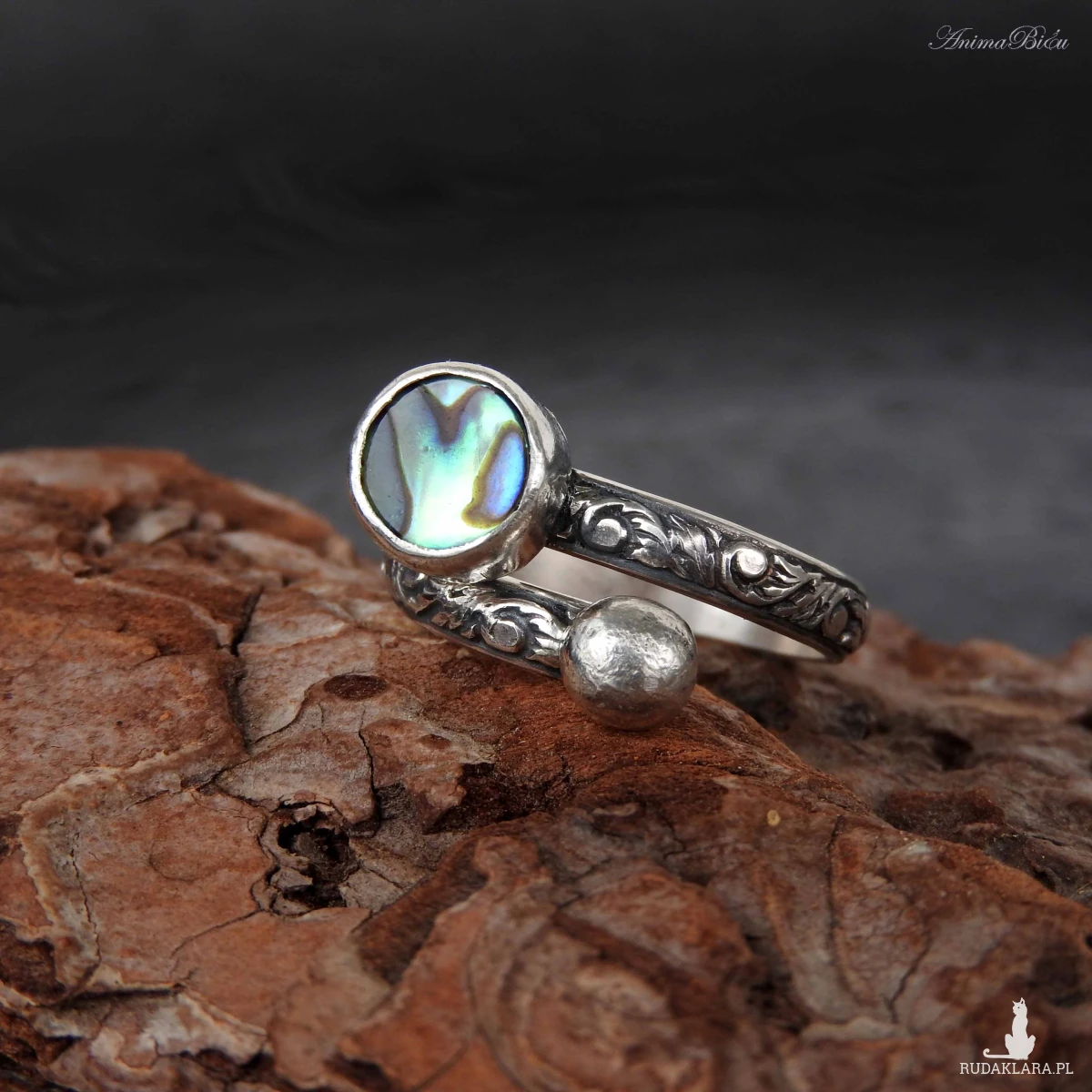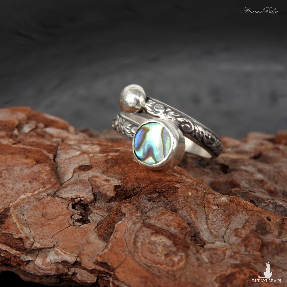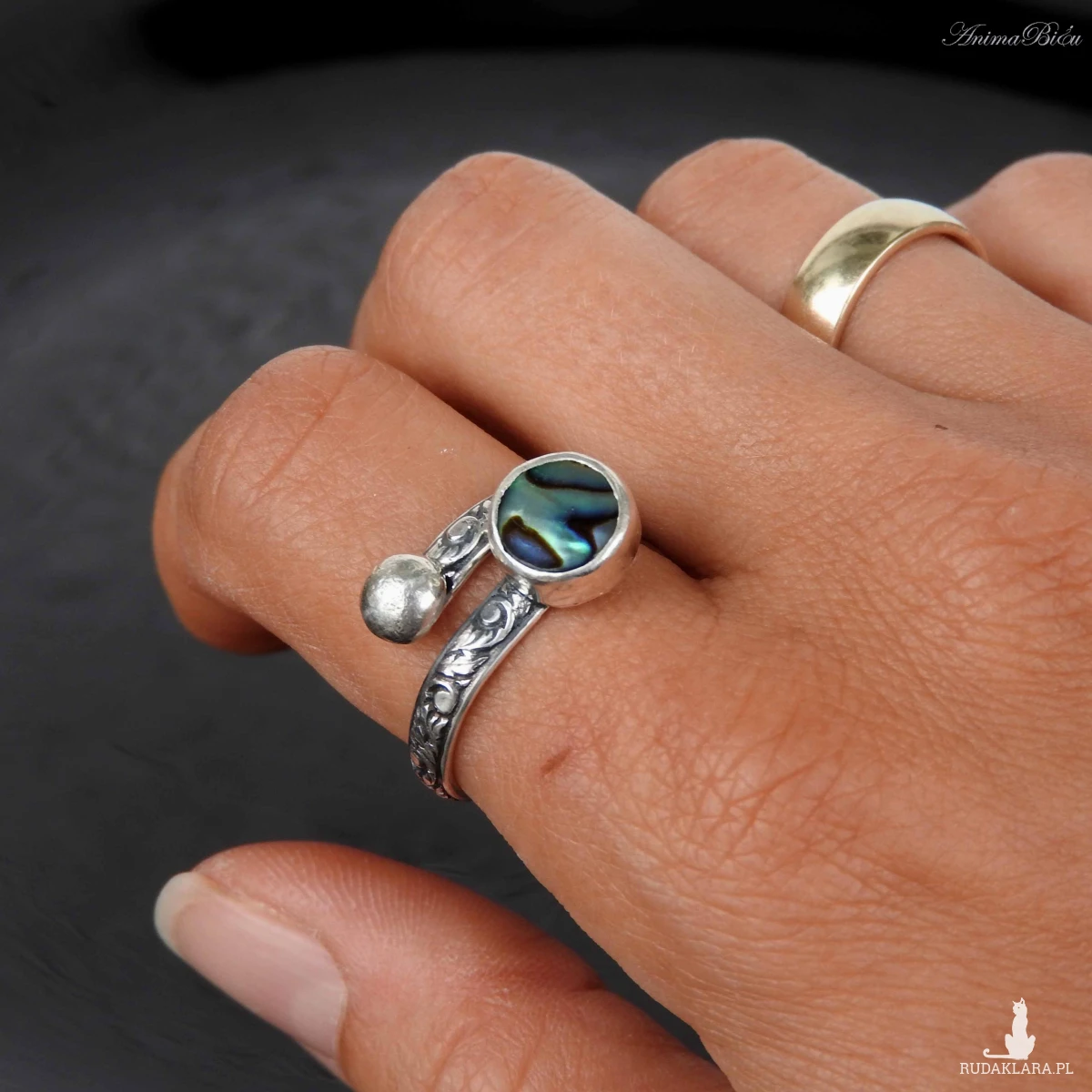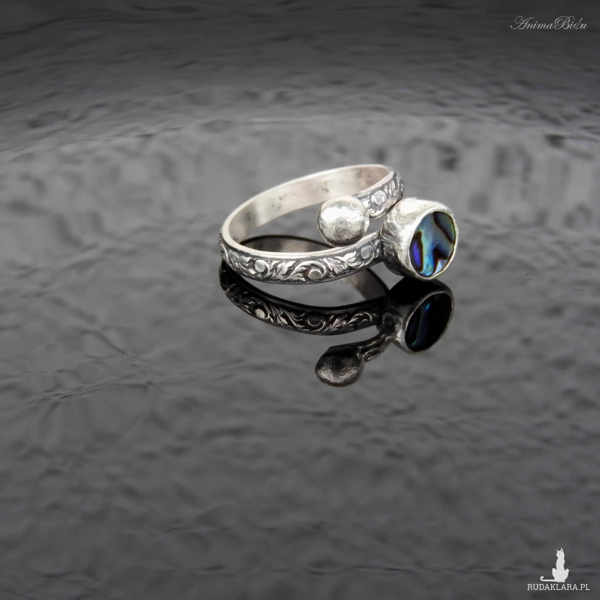Pierścionek srebrny z muszlą Paua. Piękna, pochodząca z