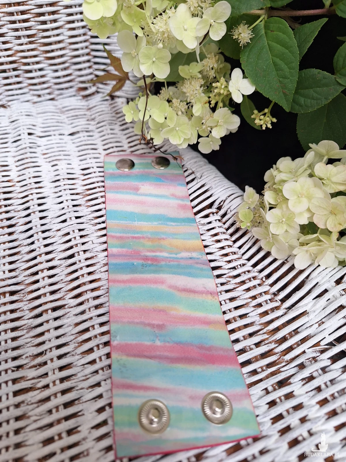 Bransoletka wykonana z lakierowanej, naturalnej skóry, maksymalna szerokość bransoletki 6 cm, obwód nadgarstka 15,5-17 cm, polecam pojedynczy egzemplarz, w chłodne dni ociepla nadgarstek