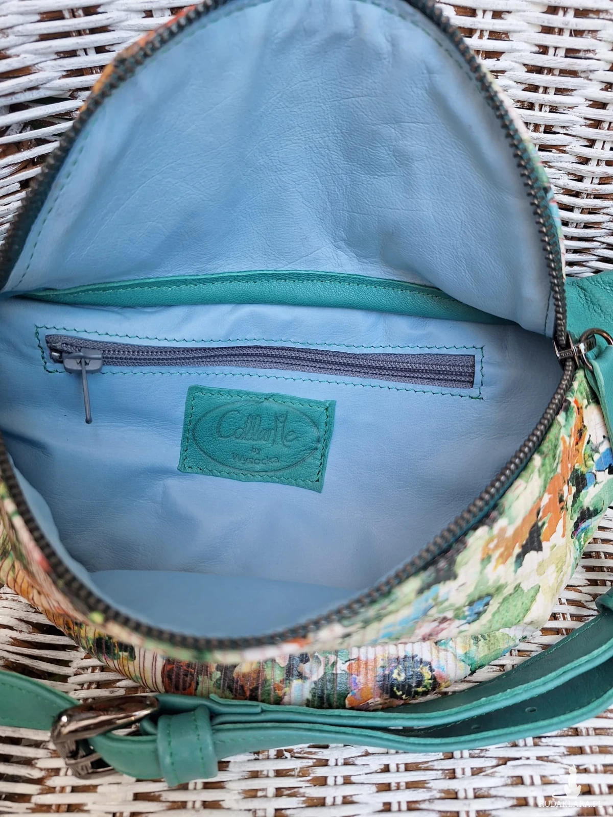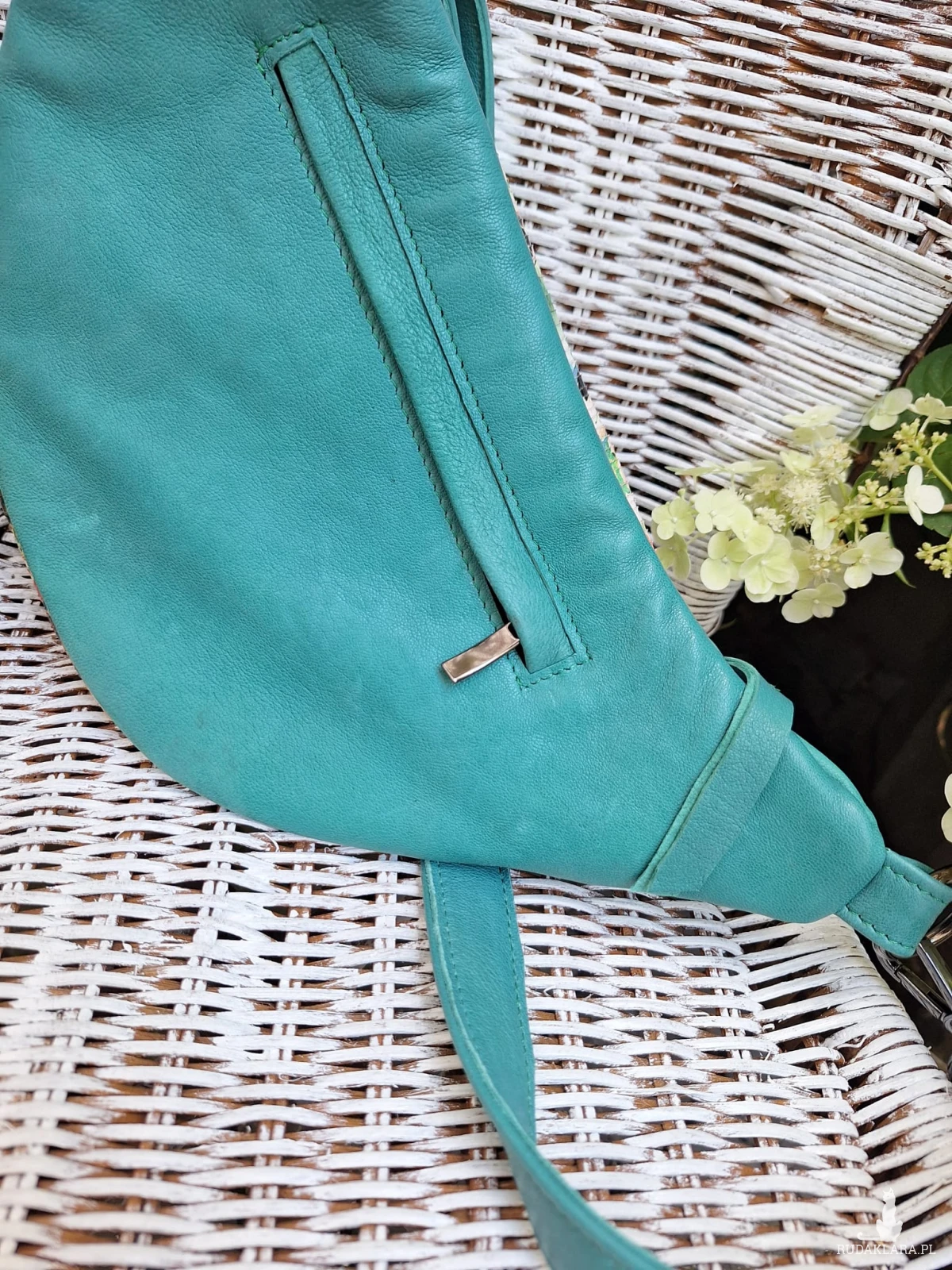 Nerka uszyta z cudownej skóry. Piękna plisowana skórka bydlęca. Wewnątrz podszewka skórzana. Długość 30cm.wys 14cm. W środku kieszeń wewnętrzna zamykana na zamek, pasek regulowany - piękna sprawa wspaniały prezent na lata polecam. PROMOCJA