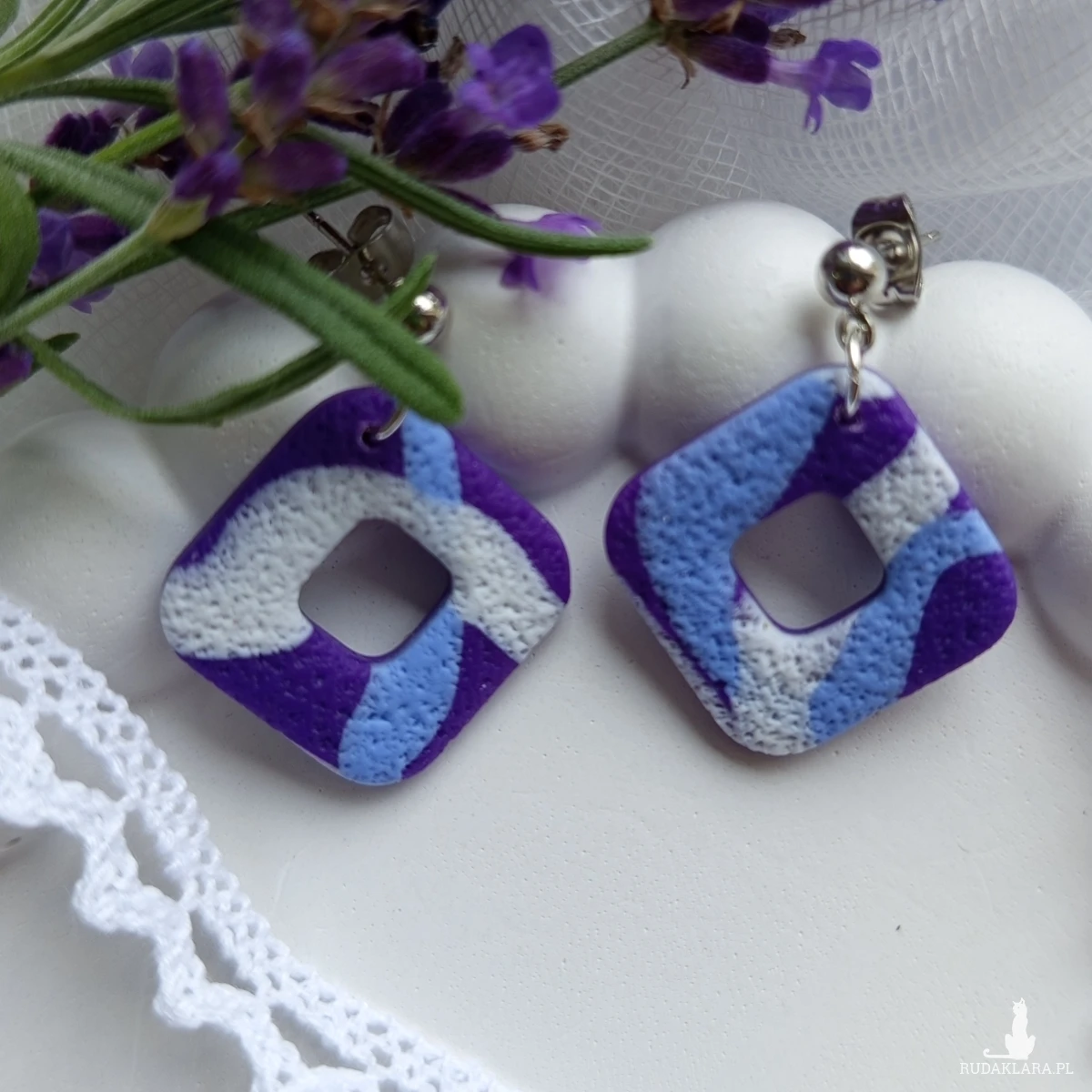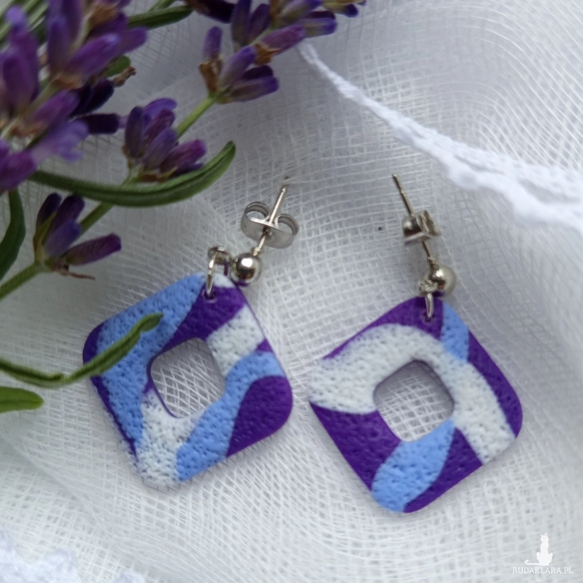 "Lotis II" - ręcznie robione kolczyki z gliny polimerowej w odcieniach fioletu.
