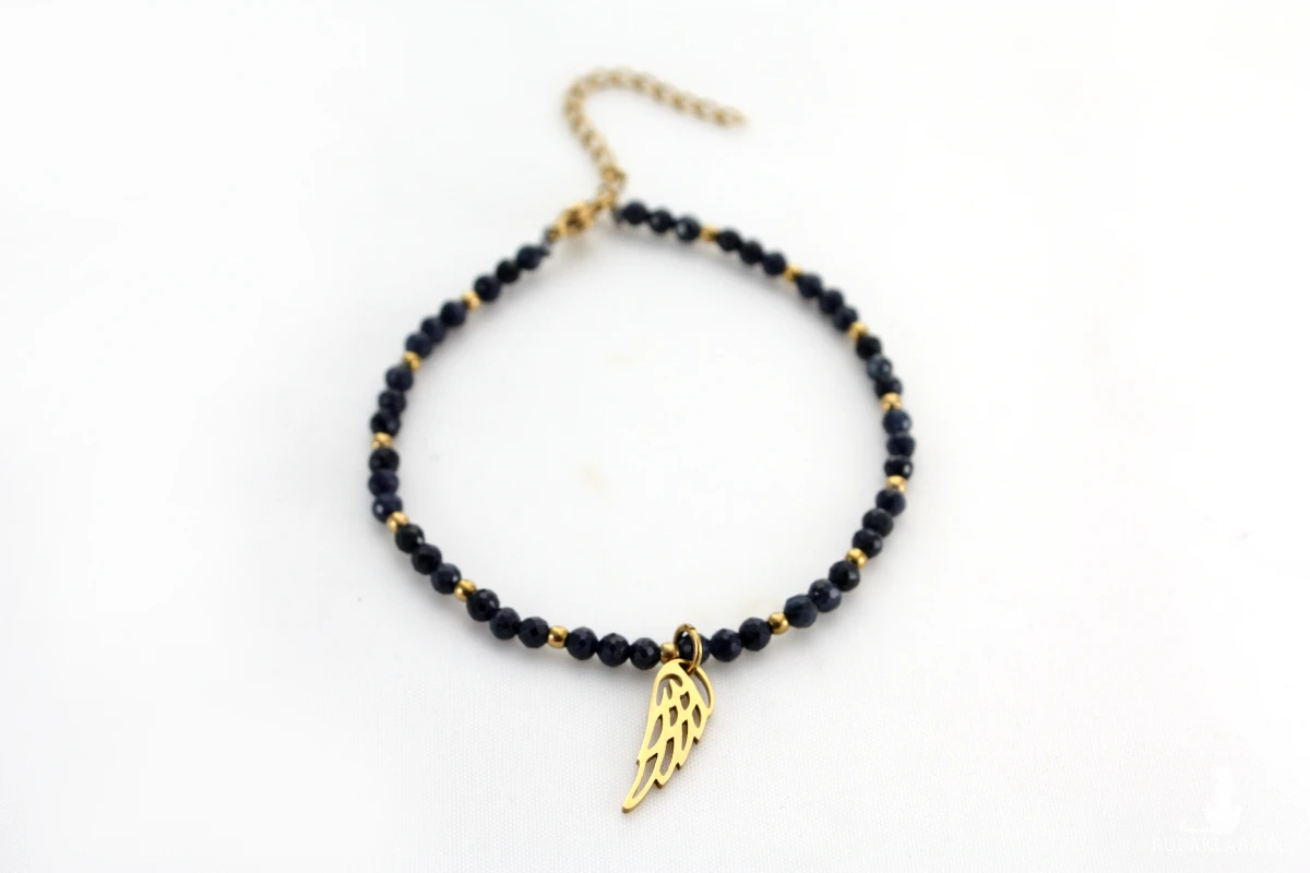 Kamienie: szafir fasetowany 0,3 cm, hematyt,