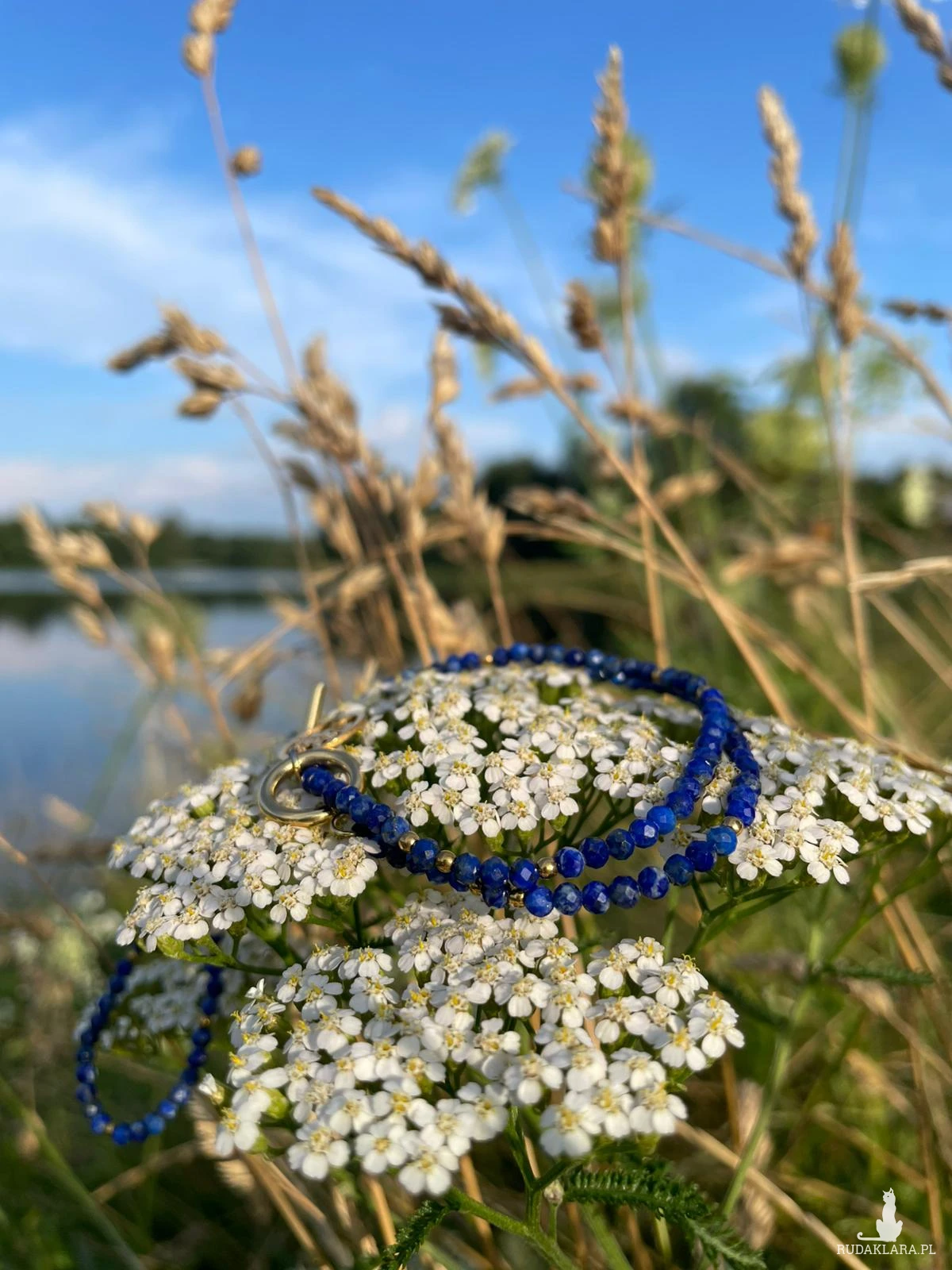 Naszyjnik z wygodnym zapięciem Toggle wykonany z fasetowanego kamienia lapis-lazuri w kolorze głęboko niebieskim z charakterystycznymi dla tego kamienia wtrąceniami z pirytu. Lapis jest symbolem: prawdy, mądrości, spokoju i odwagi. Jest doskonałym dodatkiem do letniej stylizacji.