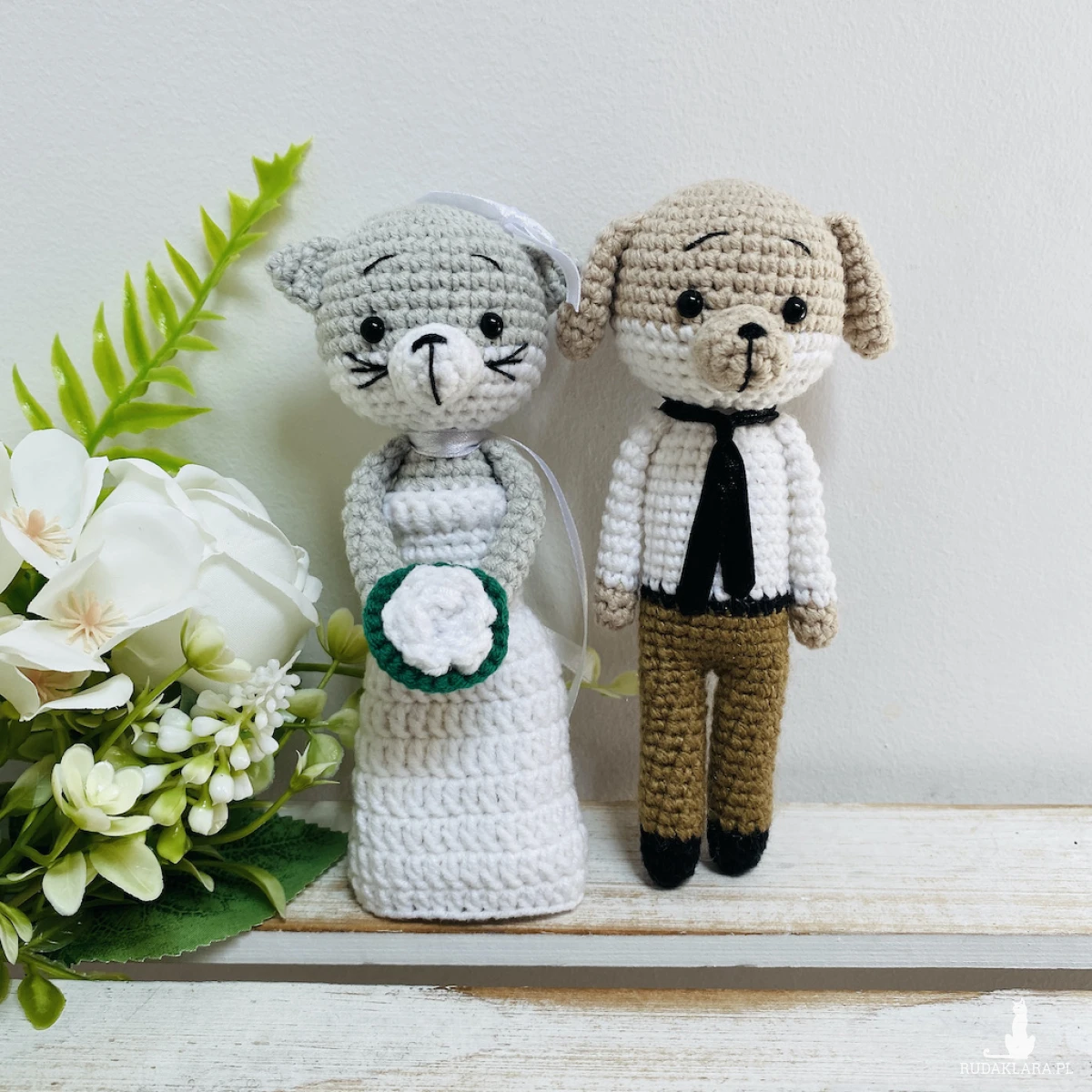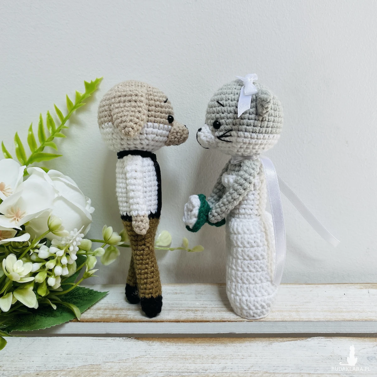 Młoda Para – pies i kot, maskotki ręcznie robione na szydełku – idealny prezent ślubny