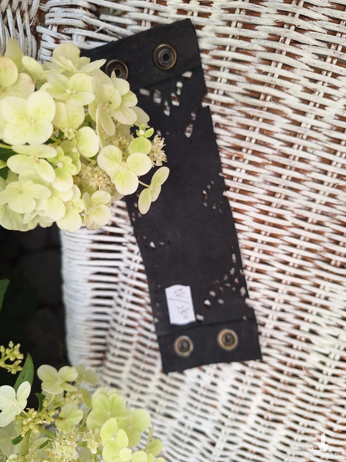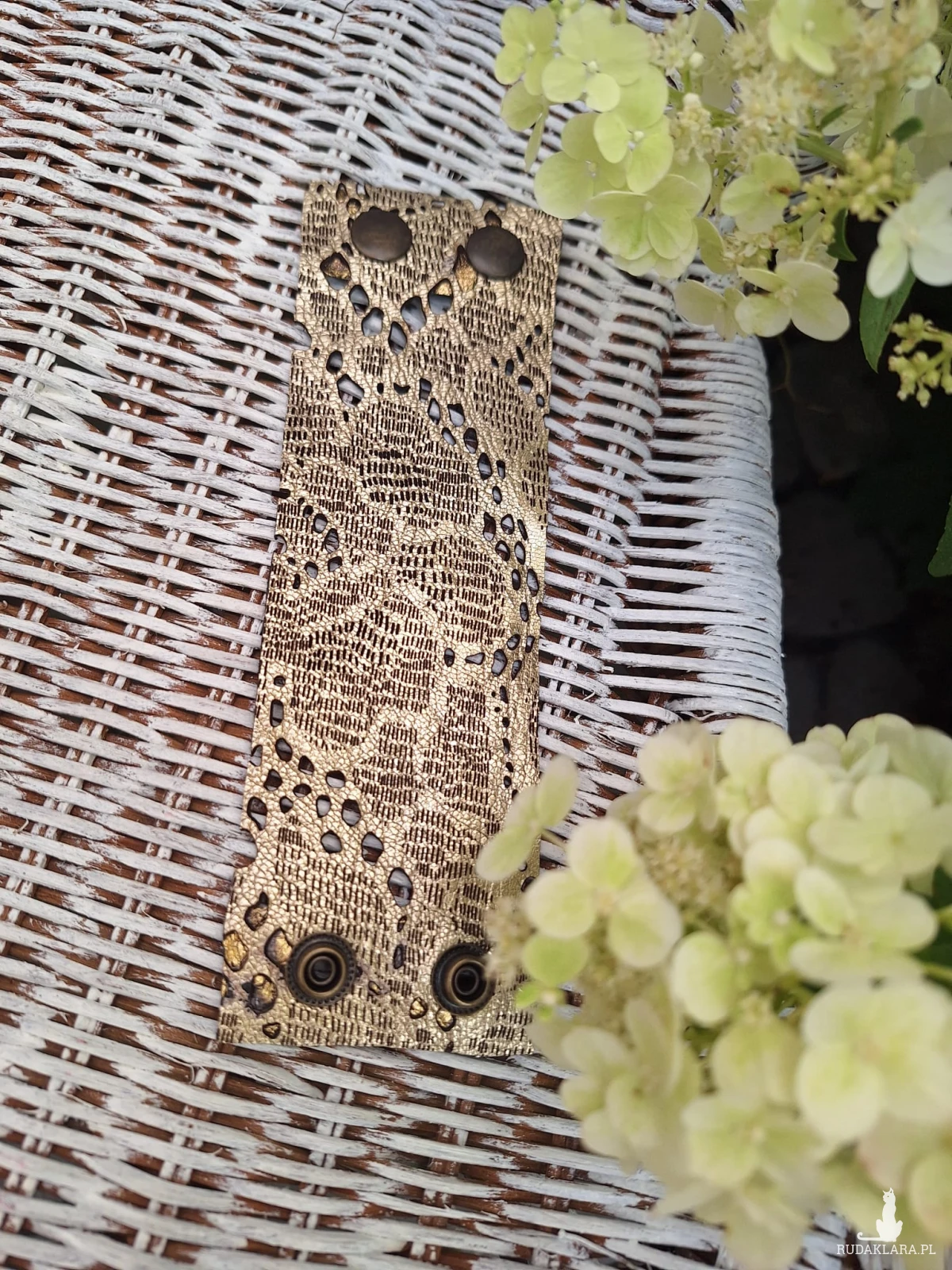 Bransoletka wykonana z lakierowanej, naturalnej ażurowej skóry, szerokość bransoletki 6,5 cm, obwód nadgarstka 15,5-17 cm, polecam pojedynczy egzemplarz, w chłodne dni ociepla nadgarstek
