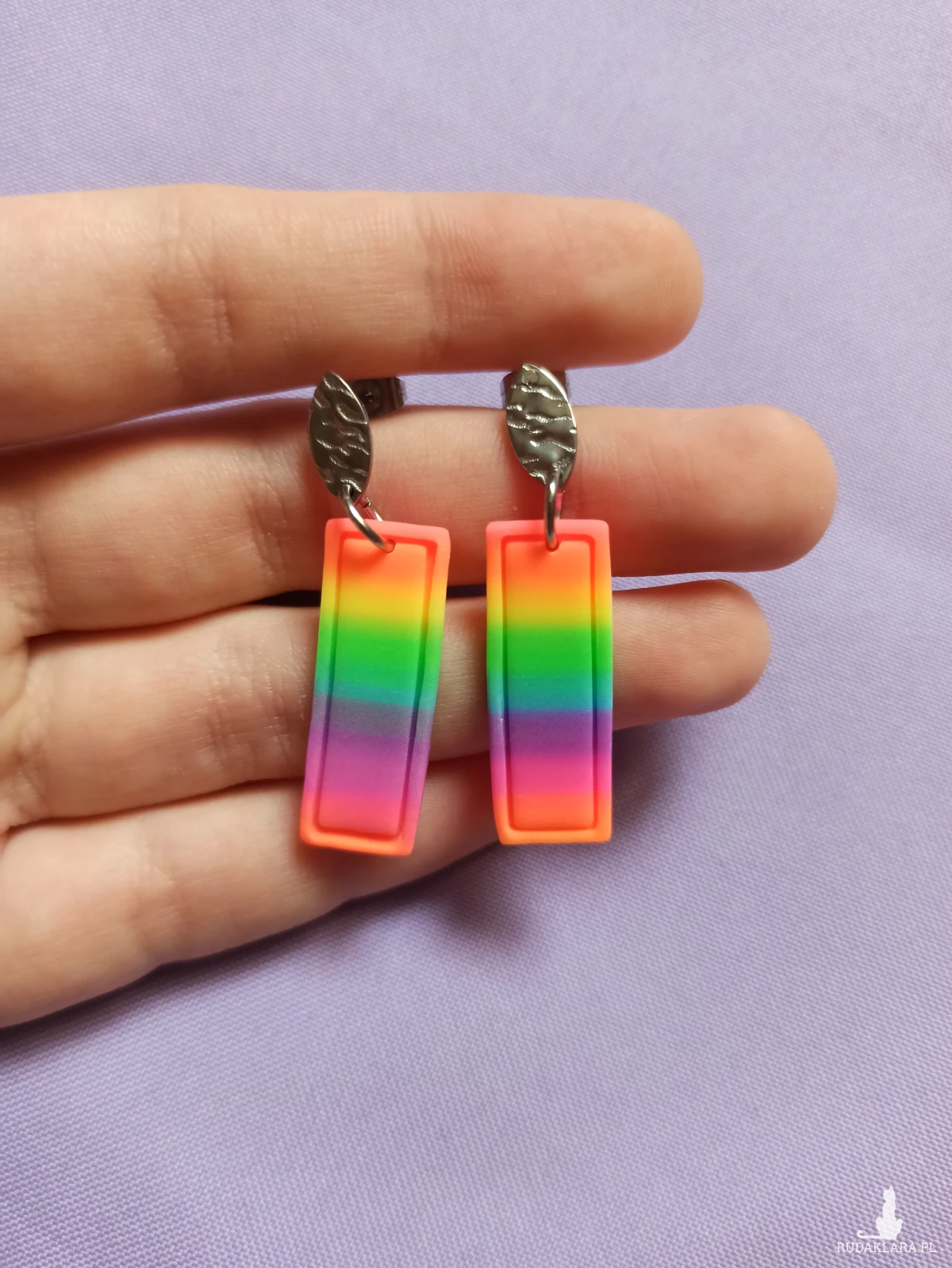 Kolczyki sztyfty w kształcie prostokątów w neonowe pasy ombre