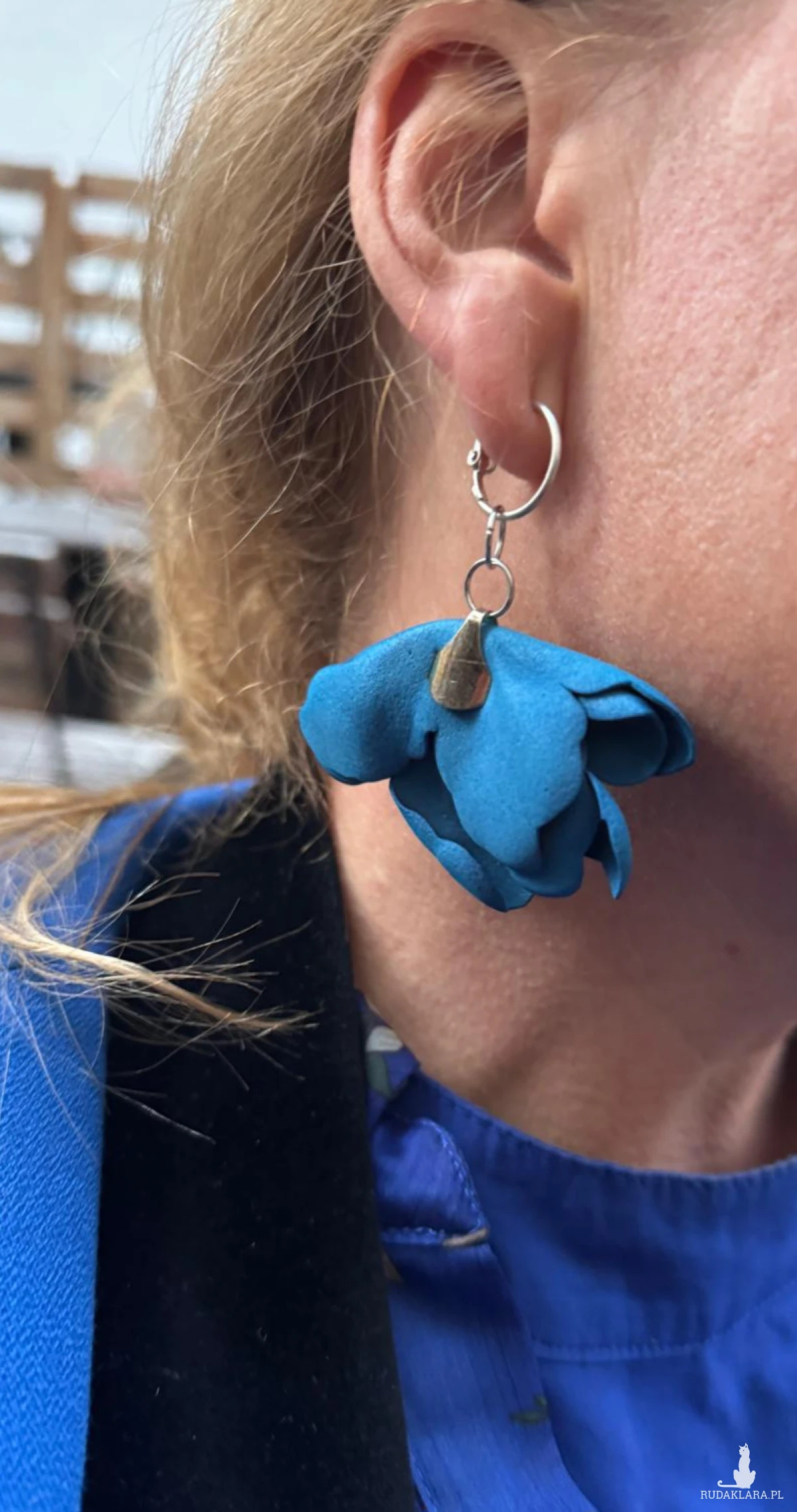 Kolczyki kwiaty niebieskie,leciutkie ,obłędne zwracają uwagę, kolczyki które wyglądają tak,że możesz założyć je do zwykłego stroju i od razu wyglądasz inaczej i jesteś widoczna w tłumie  polecam