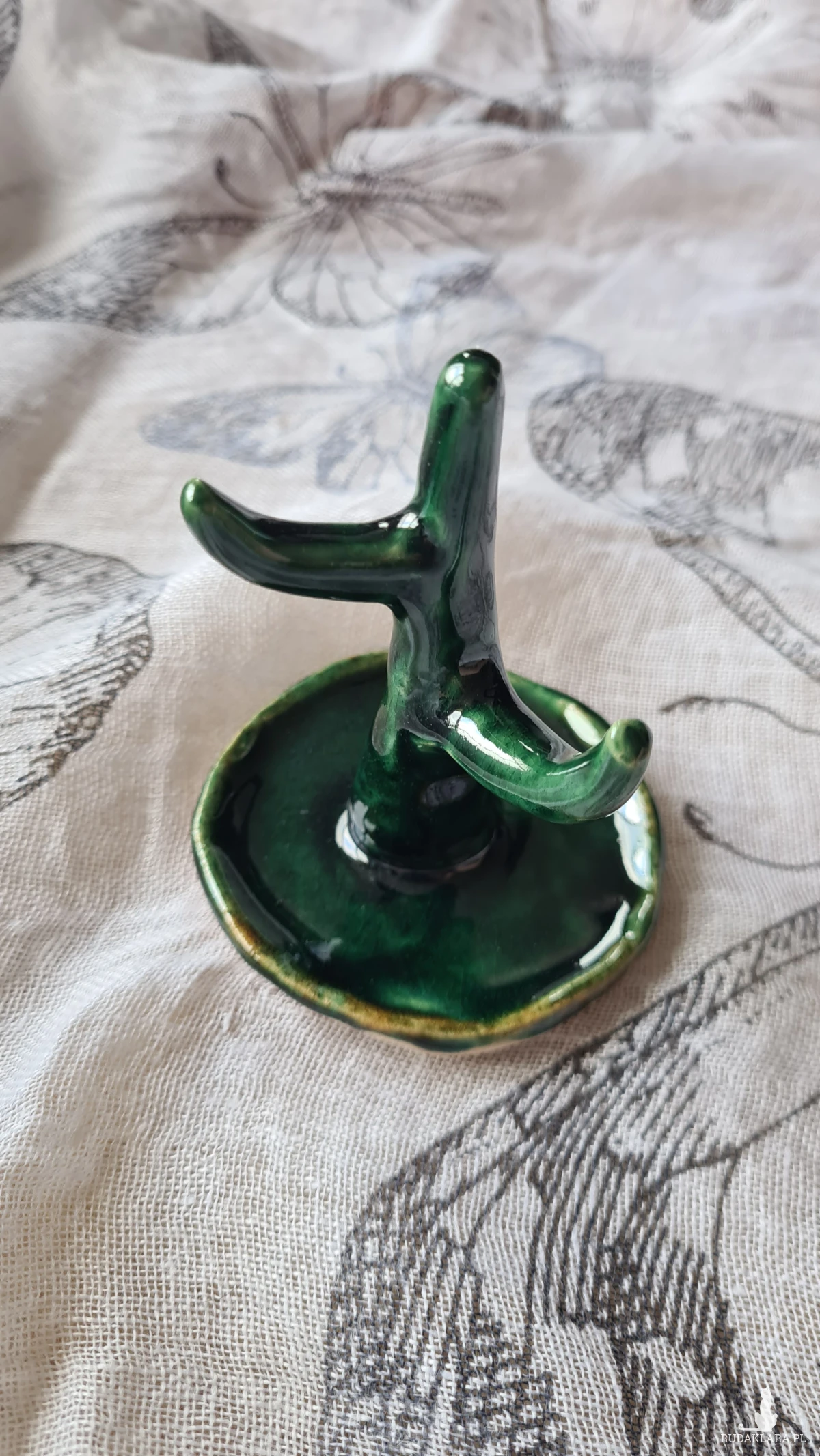 Ceramiczny kaktus na biżuterię w kolorze turkusowym. Wykonany z gliny szamotowej, szkliwiony i wypalany 2-krotnie w piecu ceramicznym. Wysokość 7 cm. Piękny prezent okazjonalny.
