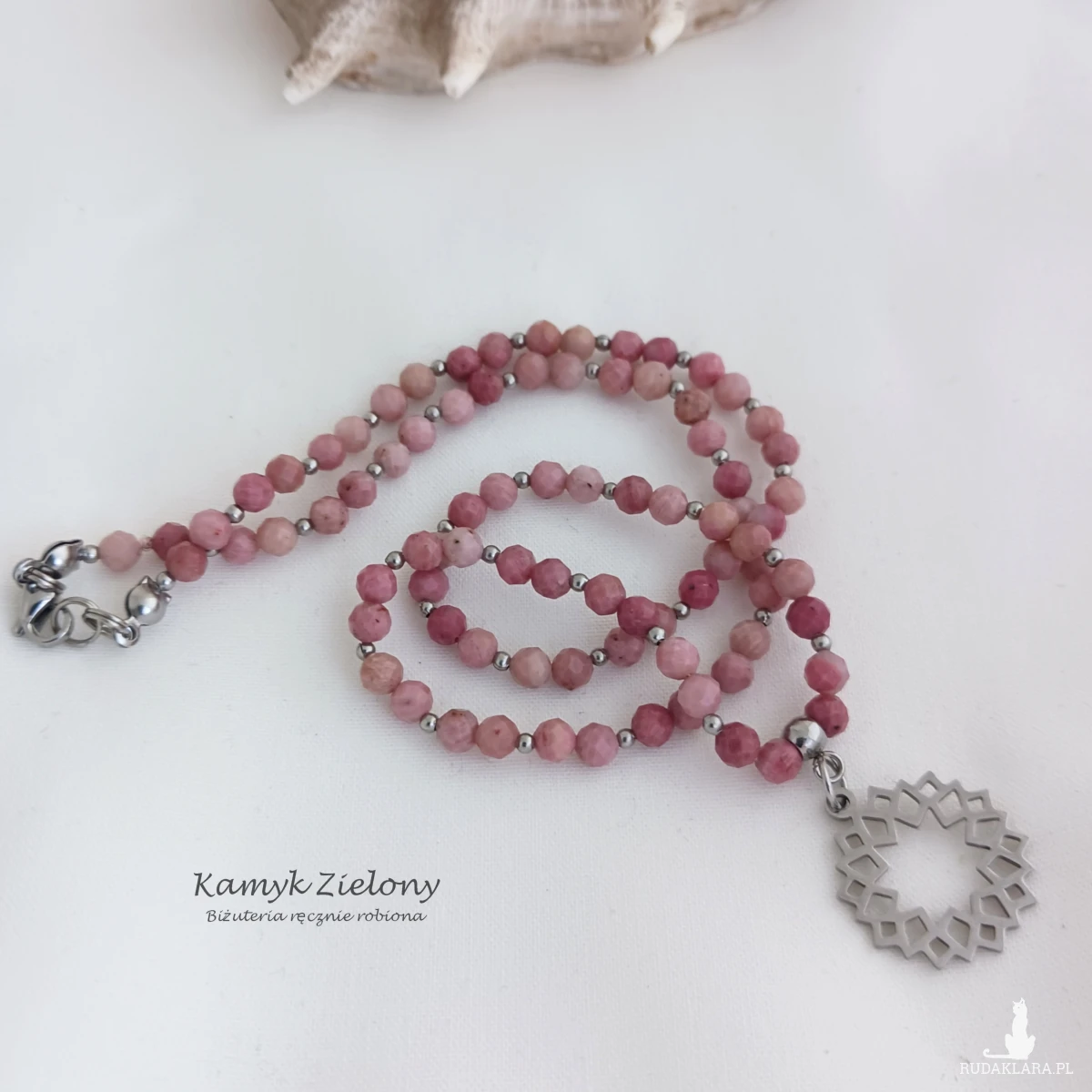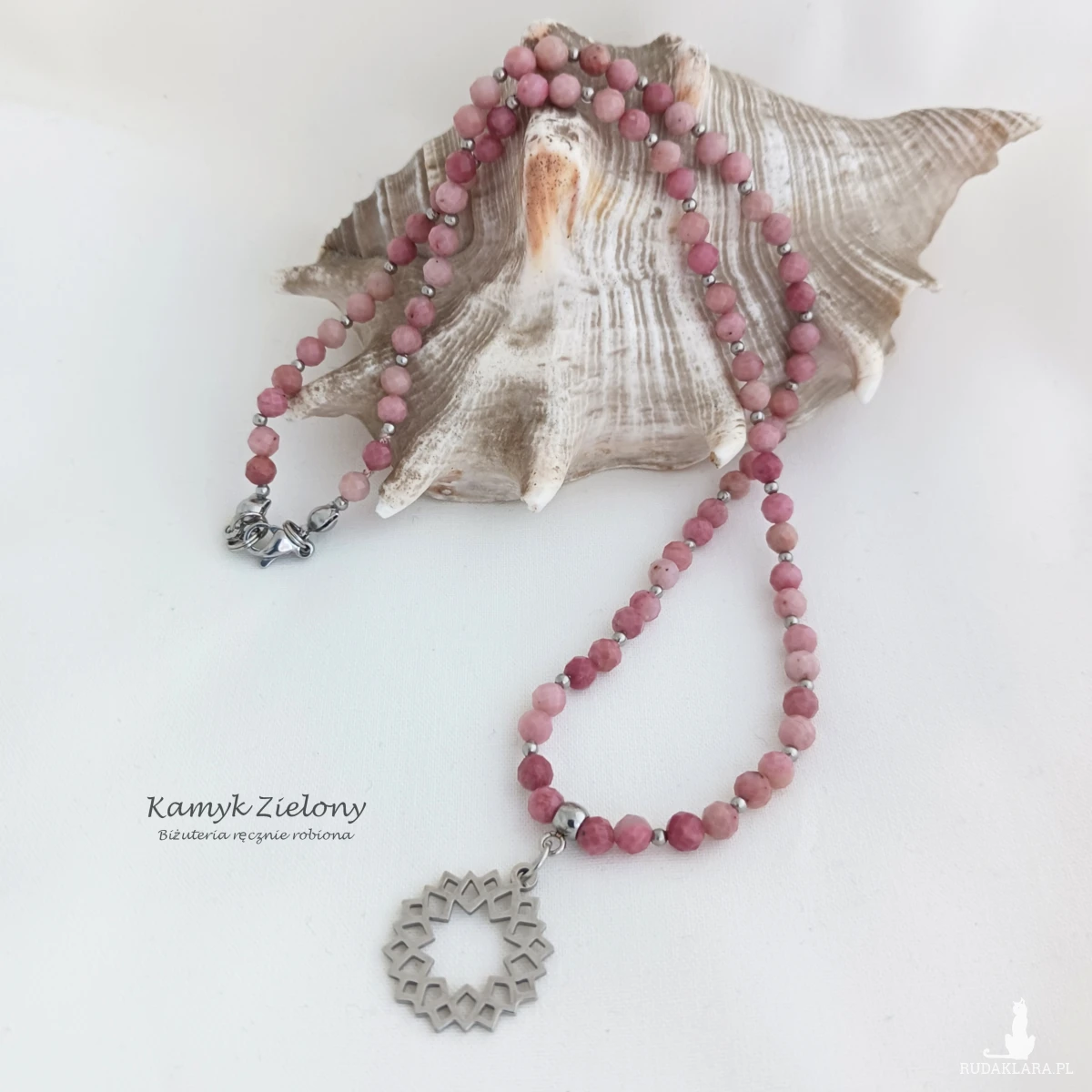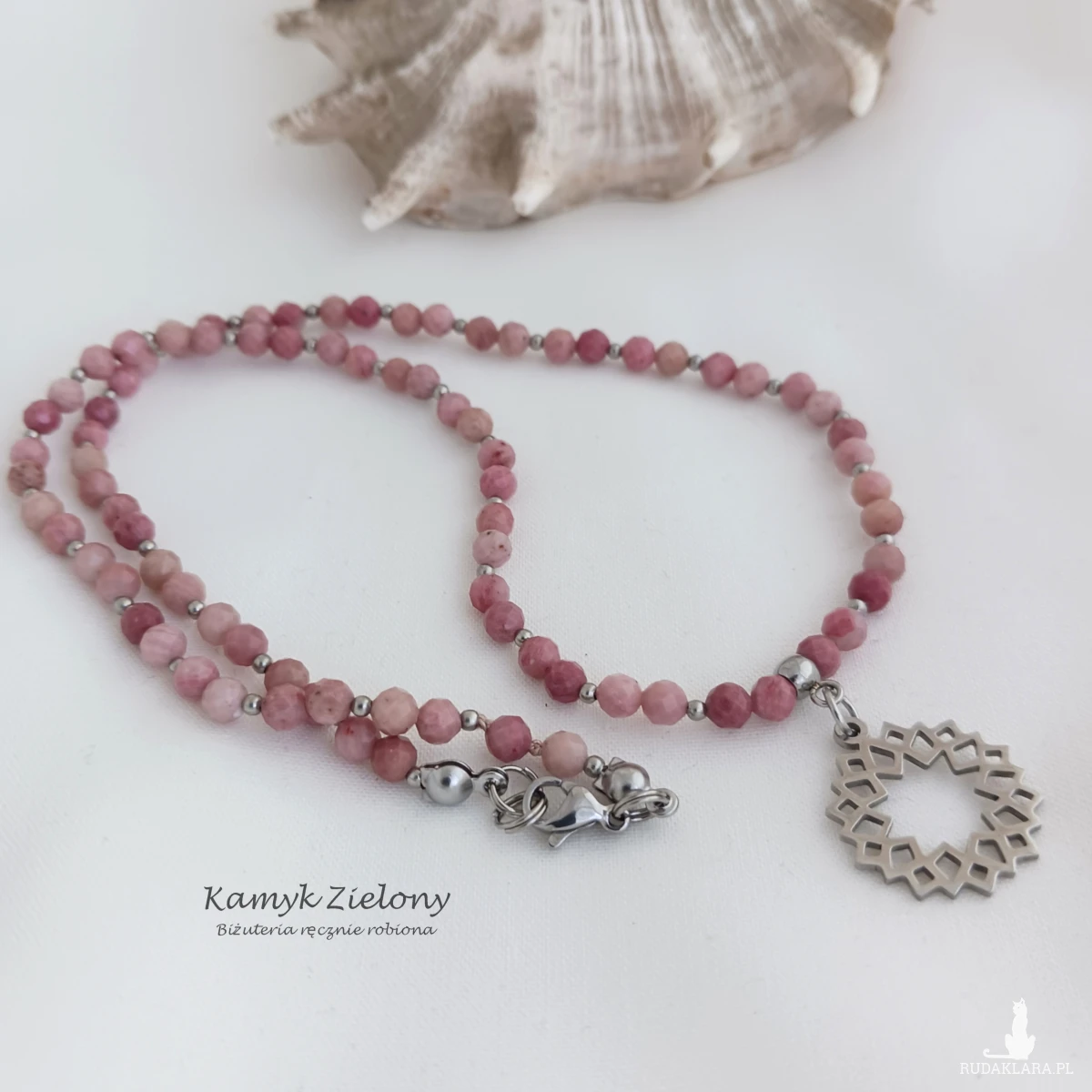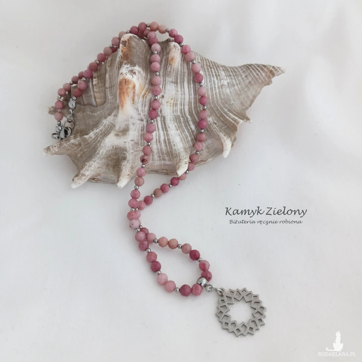 Naszyjnik z kuleczek naturalnego rodonitu o pięknych odcieniach pudrowego różu.