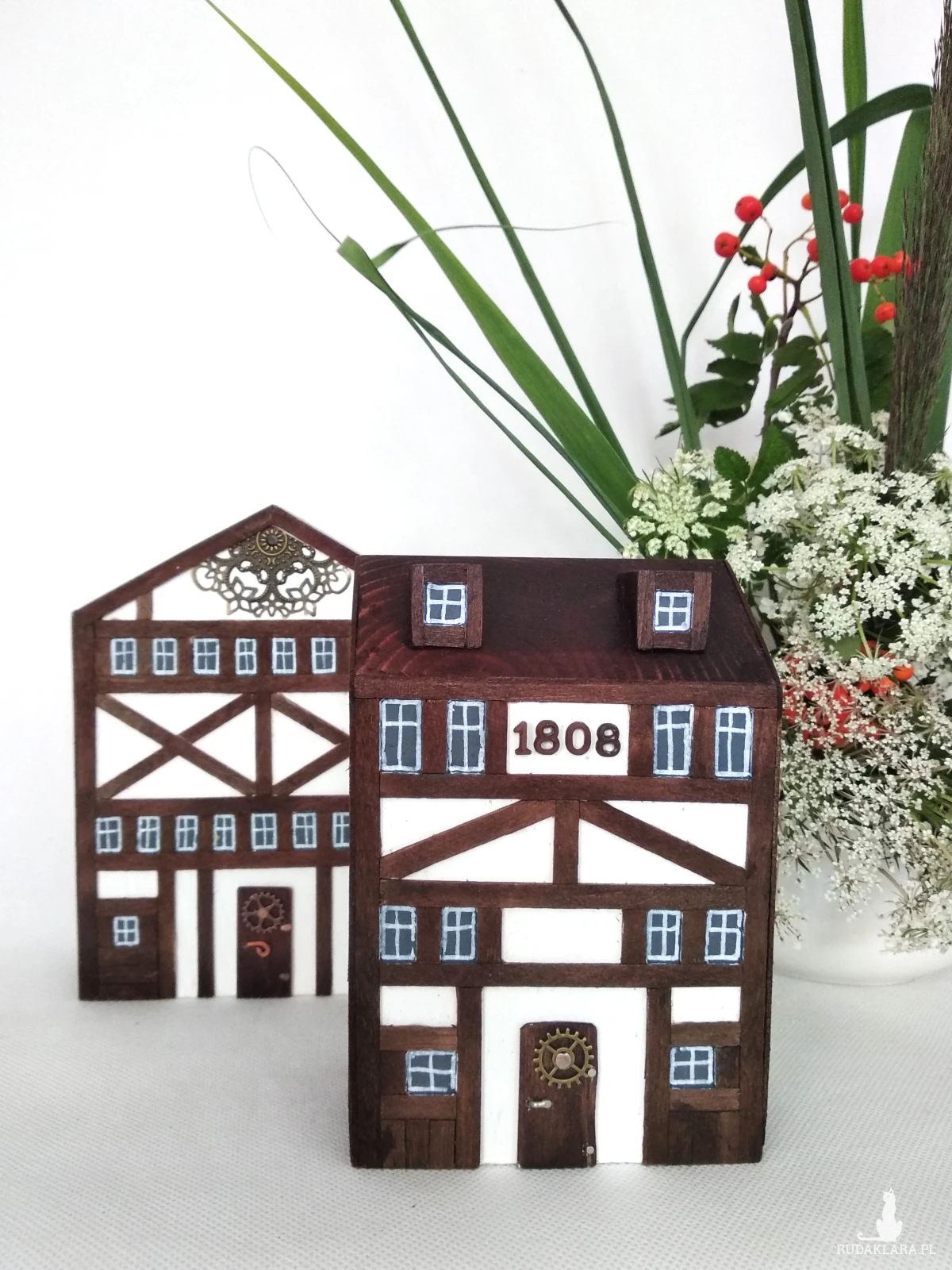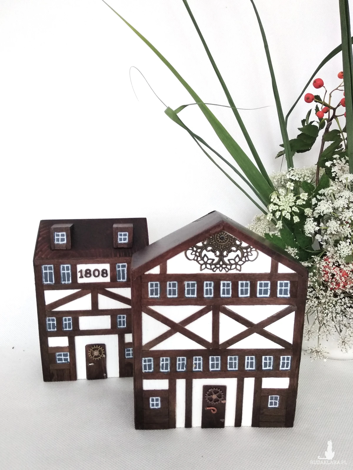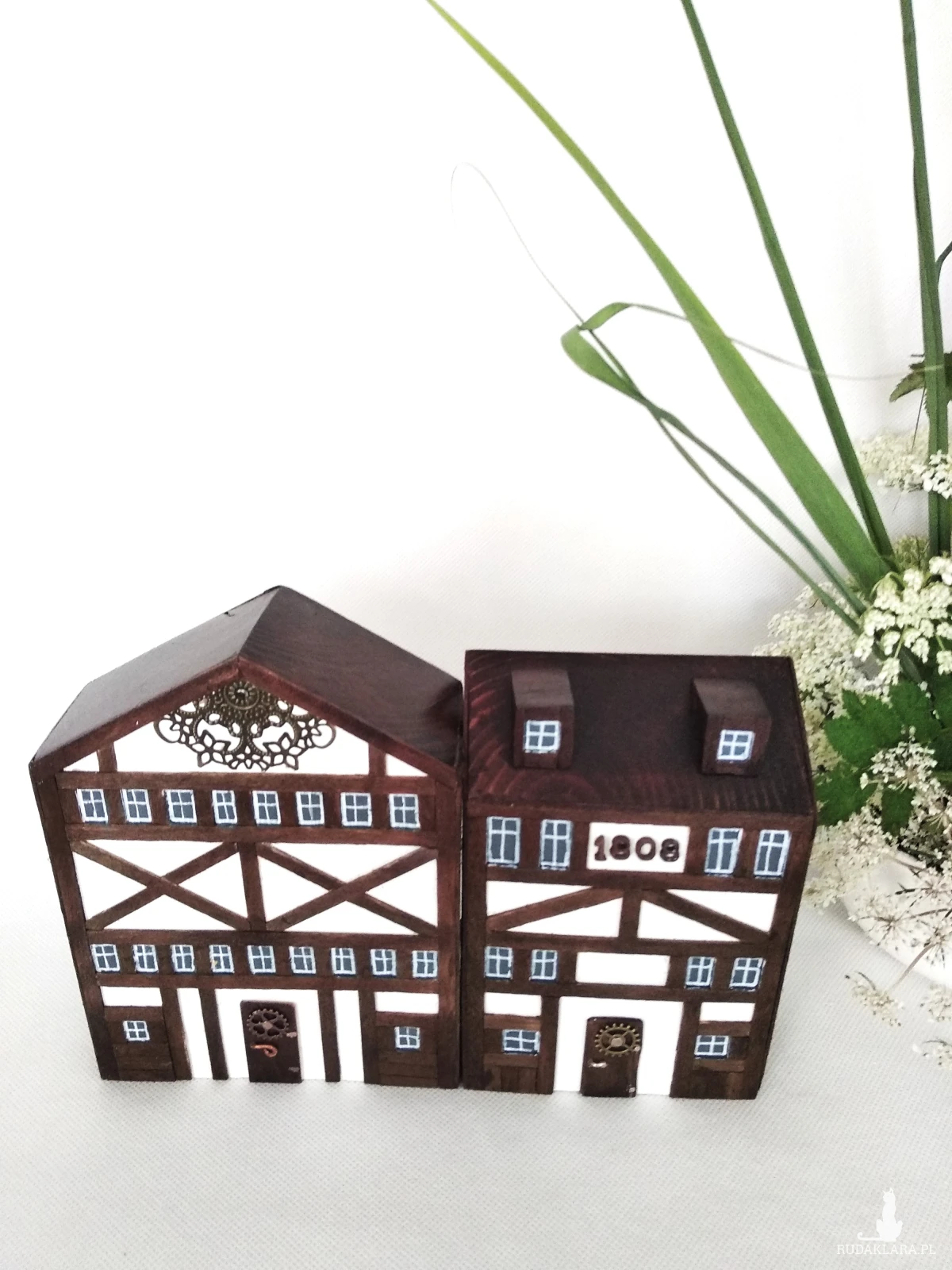 Ręcznie wykonane domki szachulcowe to wyjątkowa dekoracja inspirowana architekturą dawnych miasteczek. Ich charakterystyczna konstrukcja ryglowa, ozdobne drzwi i precyzyjnie malowane okienka przywołują klimat spokojnych uliczek sprzed wieków.