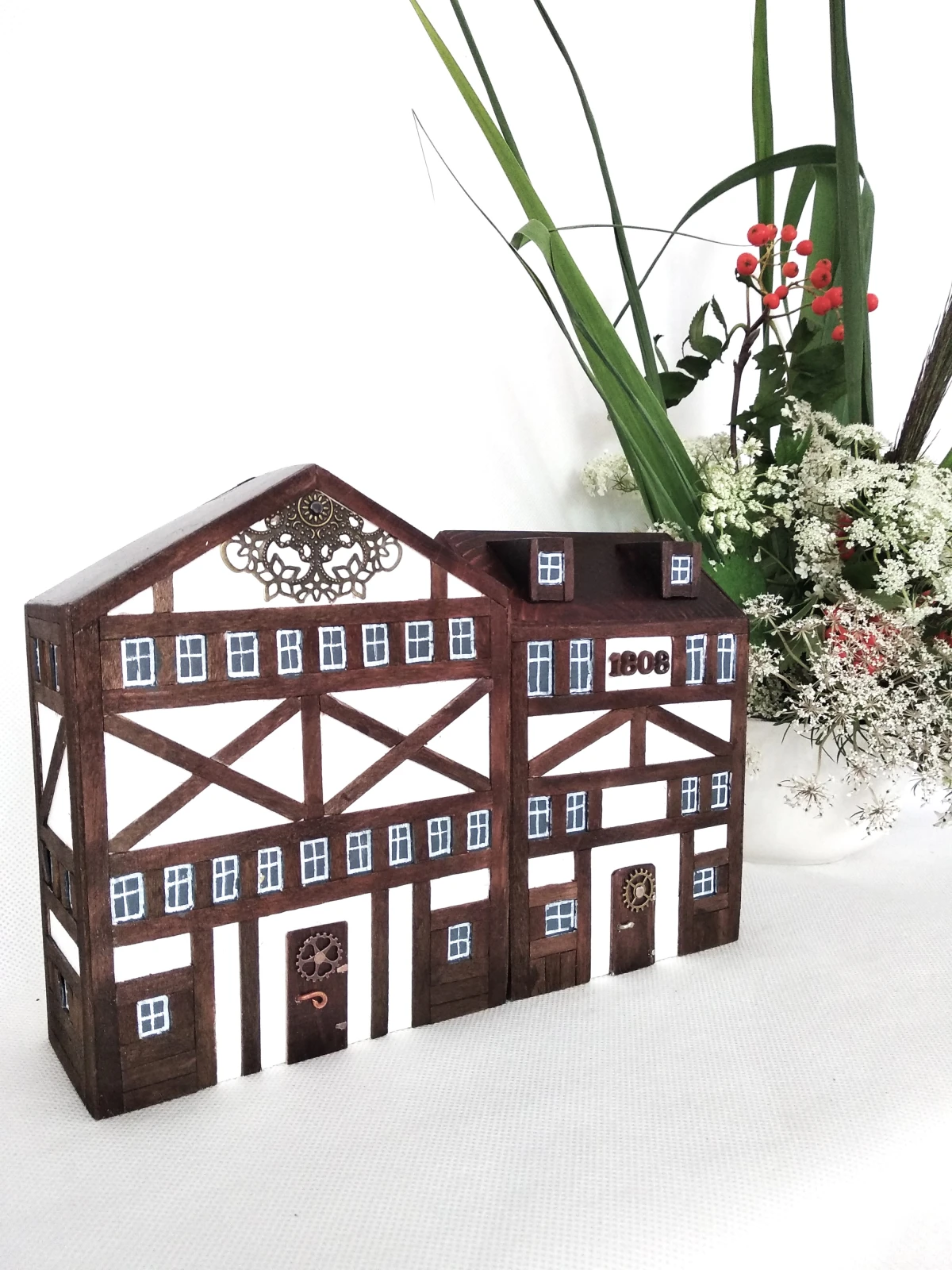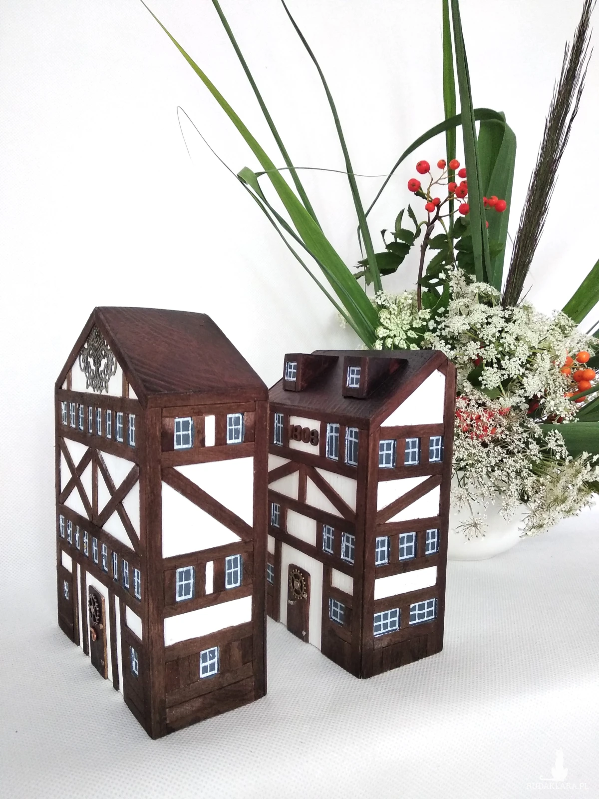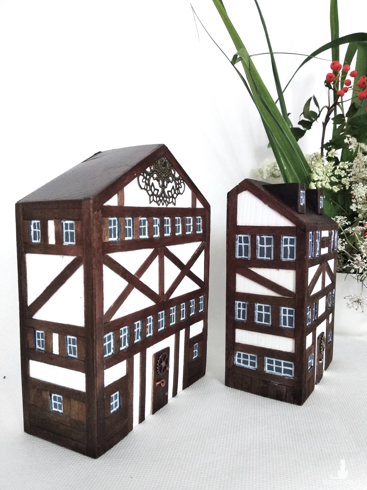 Ręcznie wykonane domki szachulcowe to wyjątkowa dekoracja inspirowana architekturą dawnych miasteczek. Ich charakterystyczna konstrukcja ryglowa, ozdobne drzwi i precyzyjnie malowane okienka przywołują klimat spokojnych uliczek sprzed wieków.