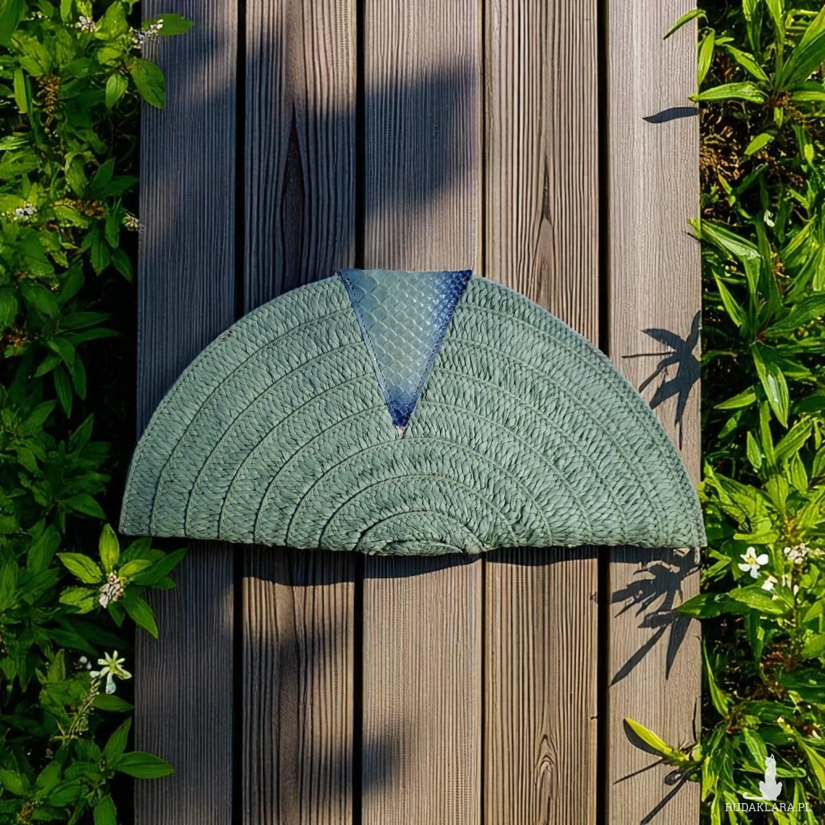 Torebka damska KOPERTÓWKA - WACHLARZ, płaska - zapinana na magnes, wykonana z plecionki wykończona skórą, wymiary 39 x 20 cm - wykonana w jednym egzemplarzu