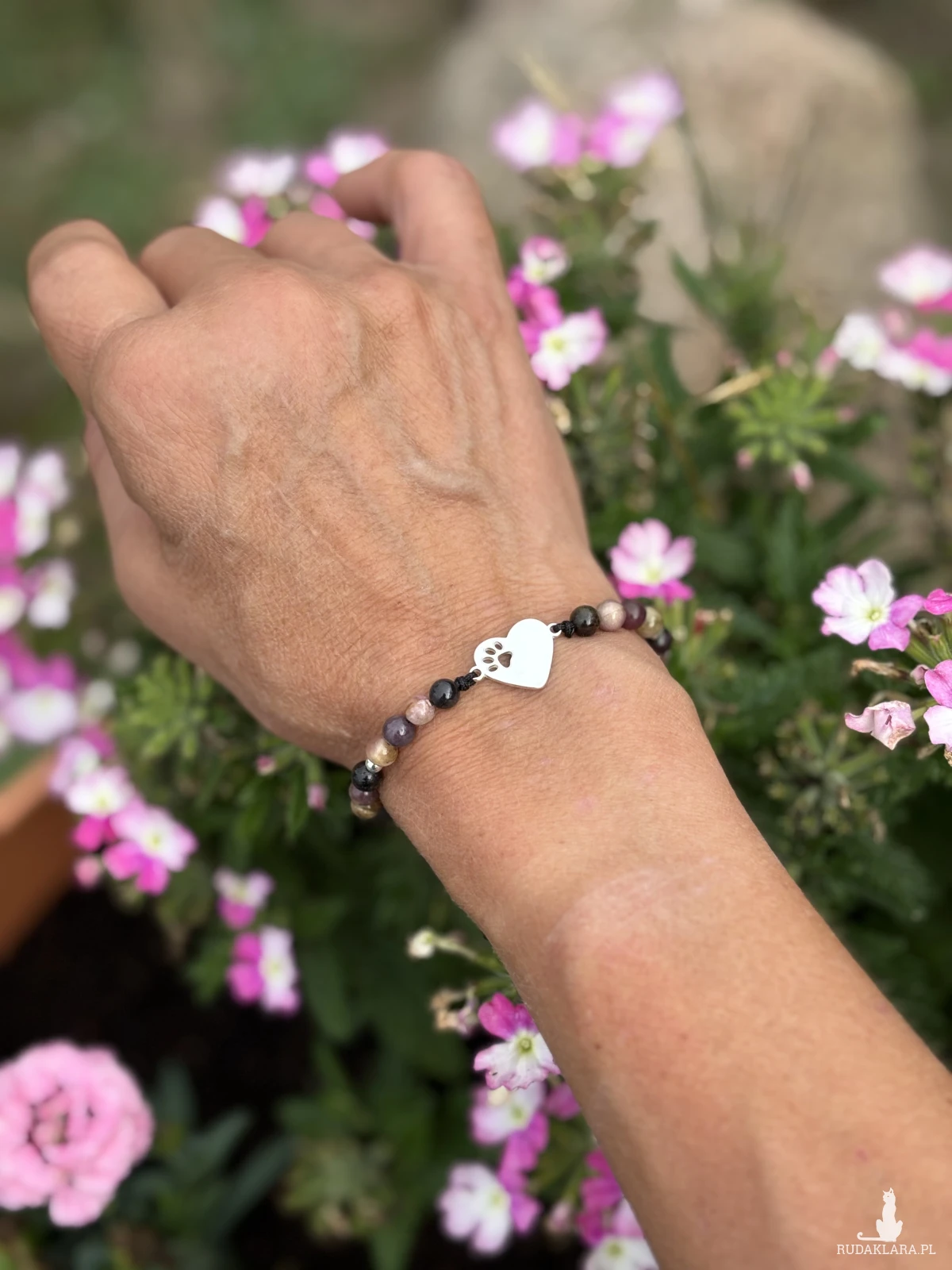 Bransoletka została dodatkowo wzbogacona naturalnym turmalinem, kamieniem znanym ze swoich właściwości ochronnych i harmonizujących. Każdy kamień jest unikatowy – może różnić się delikatnie odcieniem, co czyni każdą bransoletkę wyjątkową.