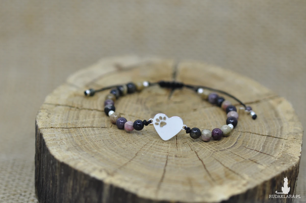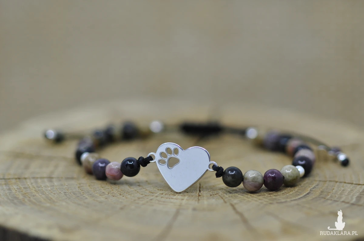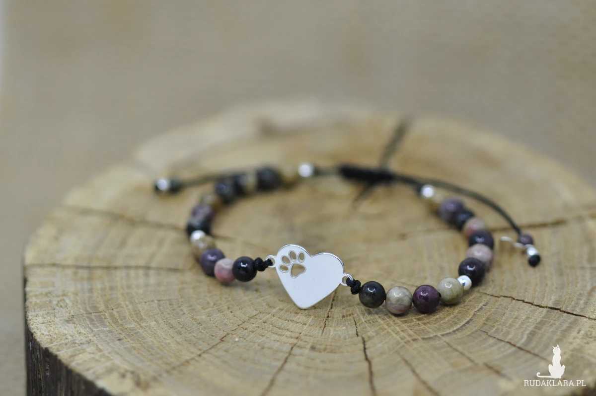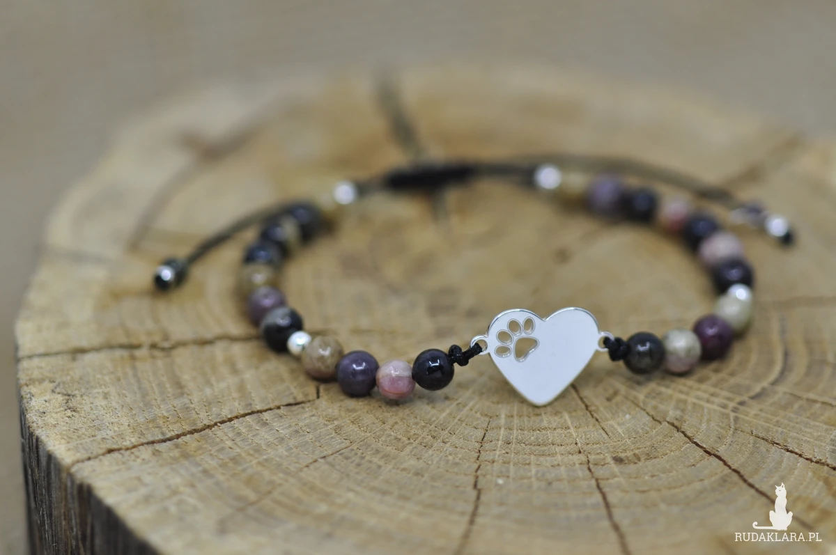 Delikatna i pełna znaczenia bransoletka wykonana z wysokiej jakości sznurka nylonowego, ozdobiona zawieszką w kształcie srebrnego serca z odciskiem łapki – symbolem miłości do zwierząt. Idealna dla miłośników czworonogów!