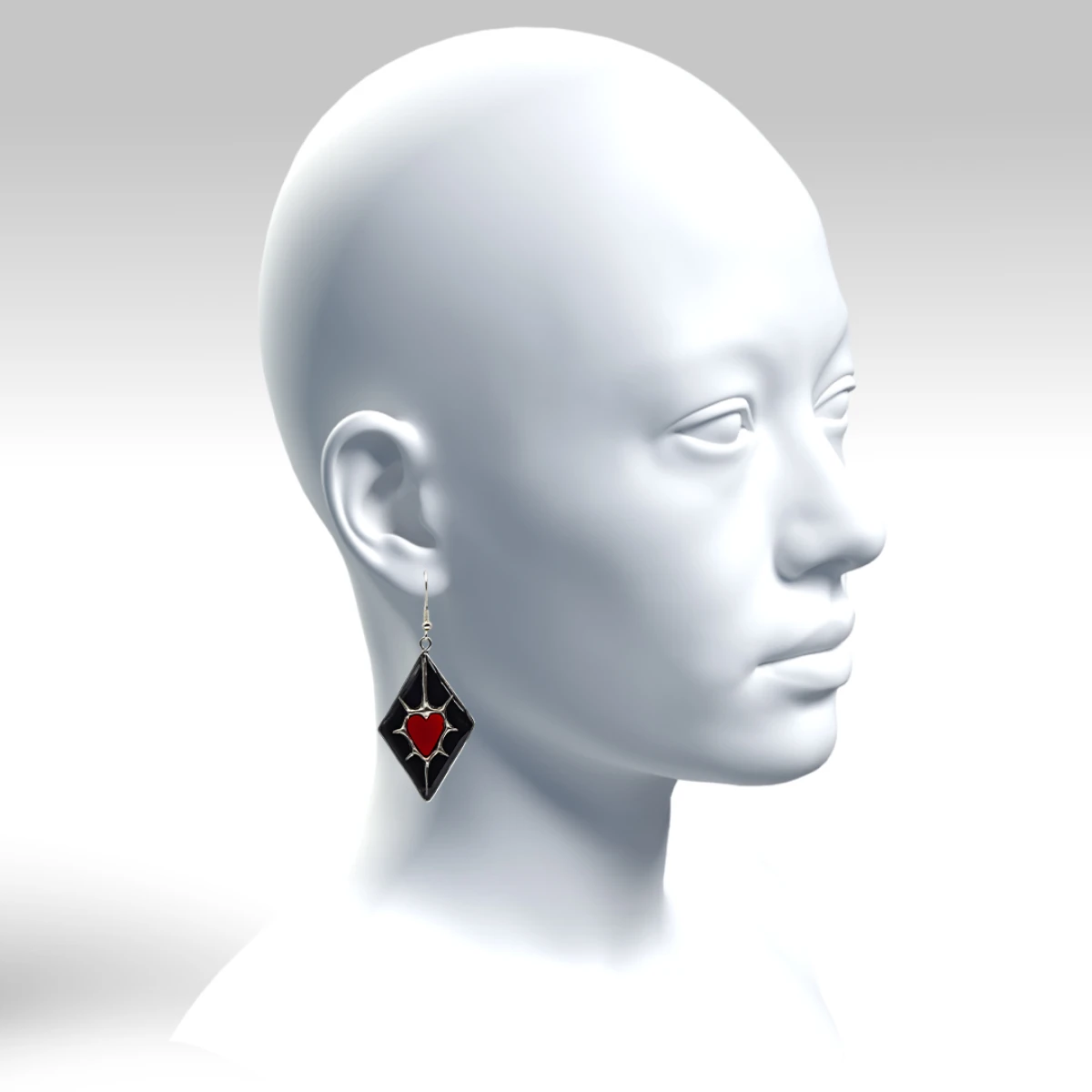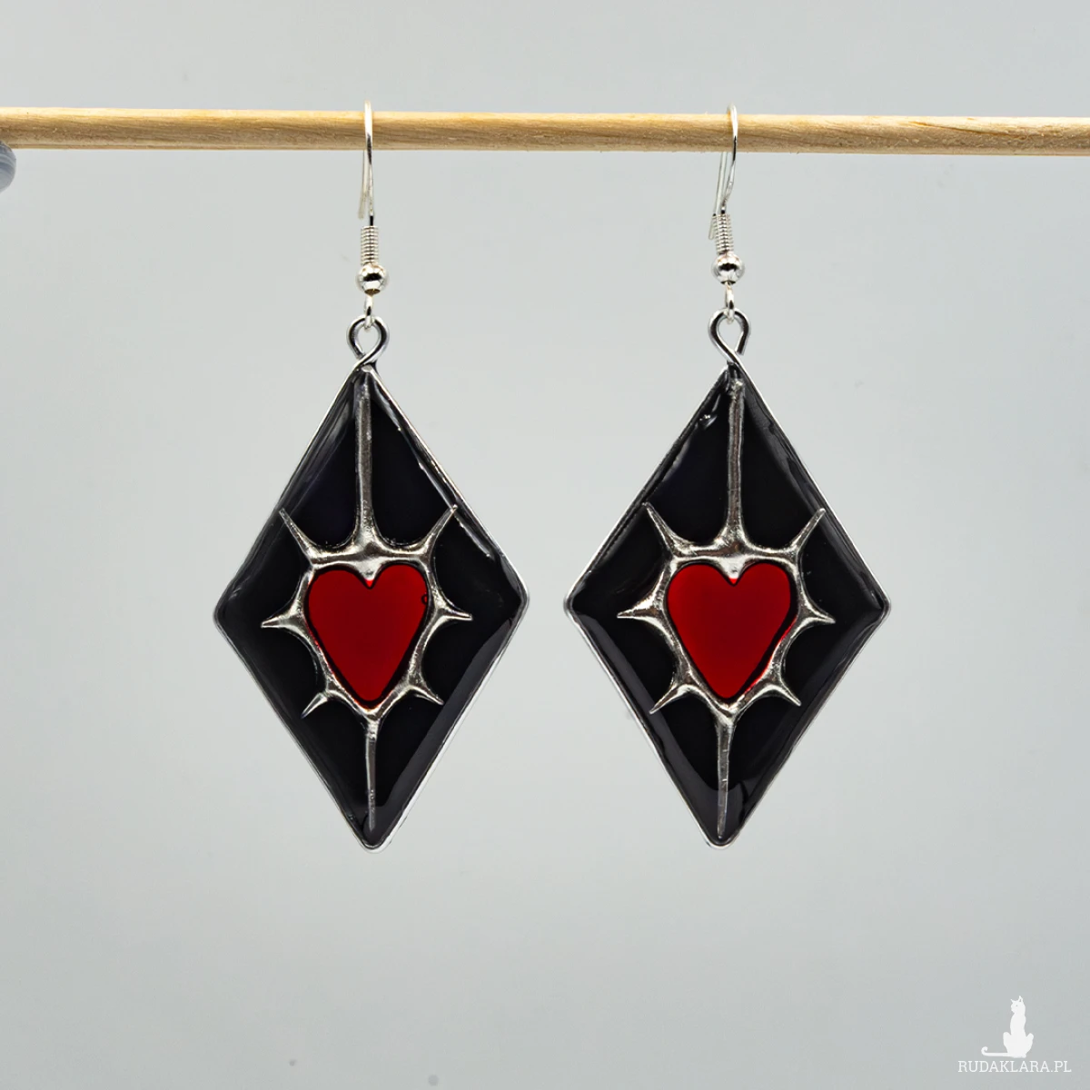wykonane przeze mnie unikalne kolczyki w klasycznym gotyckim stylu z sercem dla wszystkich fanów "czarnej sceny". Należę do niej od blisko 30 lat i dlatego tworzę biżuterię, która może wydawać się mniej "gotycka" niż inne wzory, tzn. mniej wizualnie wybujała, ale skierowana jest przede wszystkim do tych, którzy cenią sobie subtelność bez utraty podstawowych gotyckich cech.