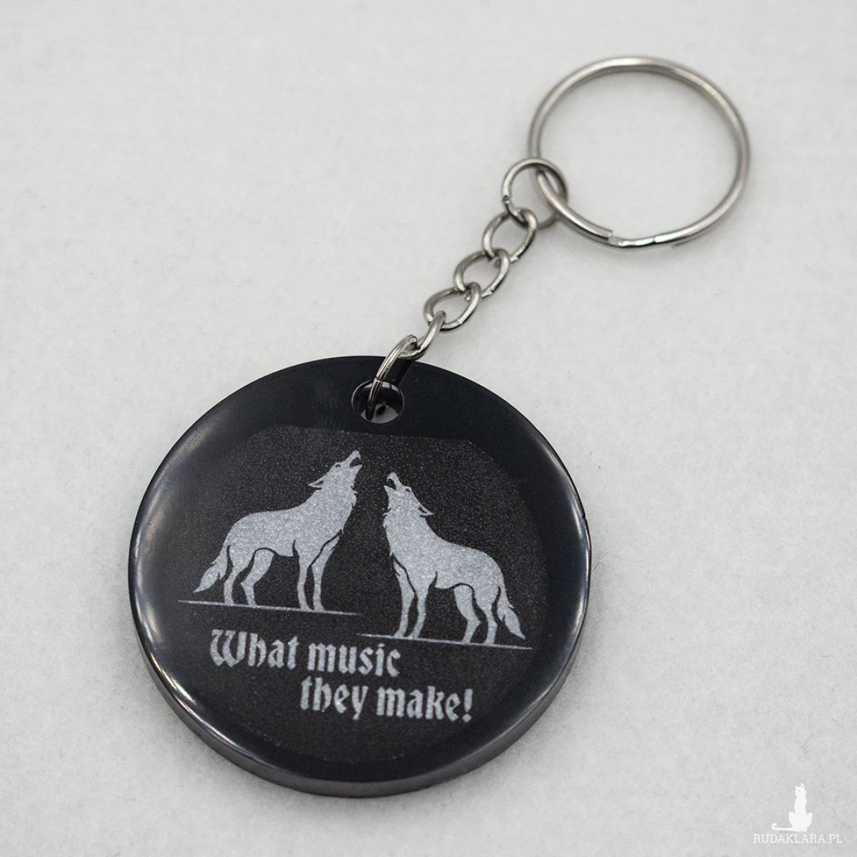 Oryginalny, ręcznie wykonany brelok z wilkami z serii "Literatura gotycka - wstęp", w której znajdziecie cytaty z książek takich pisarzy jak Stoker, Shelly, Poe, Lovecraft. Zrobiony jest z żywicy epoksydowej i stali chirurgicznej. Doskonały jako prezent dla miłośników mroczno-romantycznych, gotyckich klimatów.
