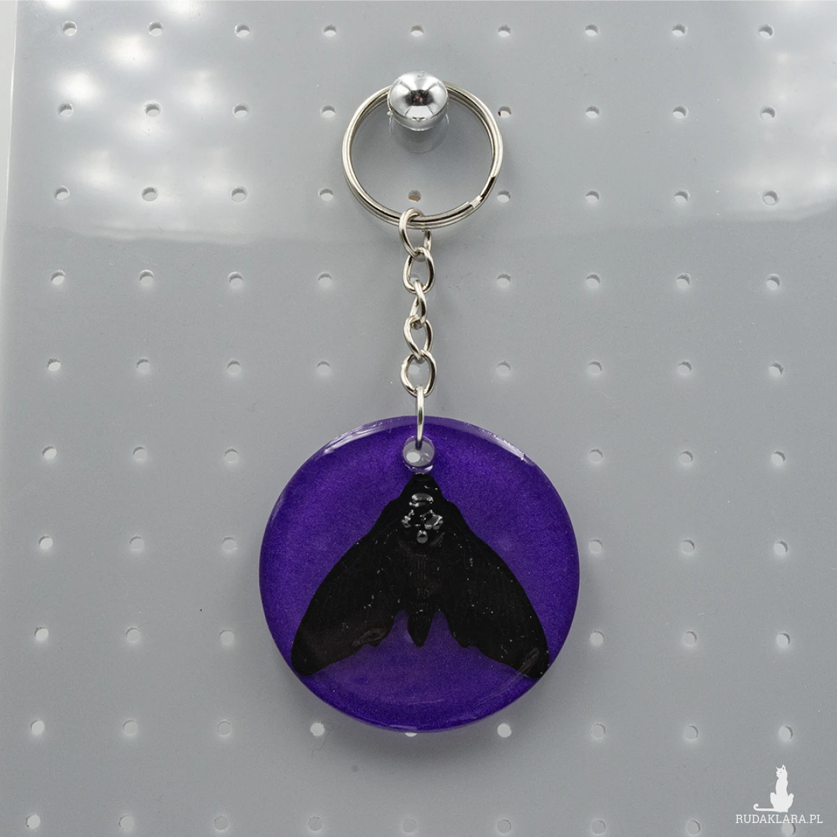 Oryginalny, ręcznie wykonany brelok z ćmą. Zrobiony jest z żywicy epoksydowej i stali chirurgicznej. Doskonały jako prezent dla miłośników mroczno-romantycznych, gotyckich klimatów.