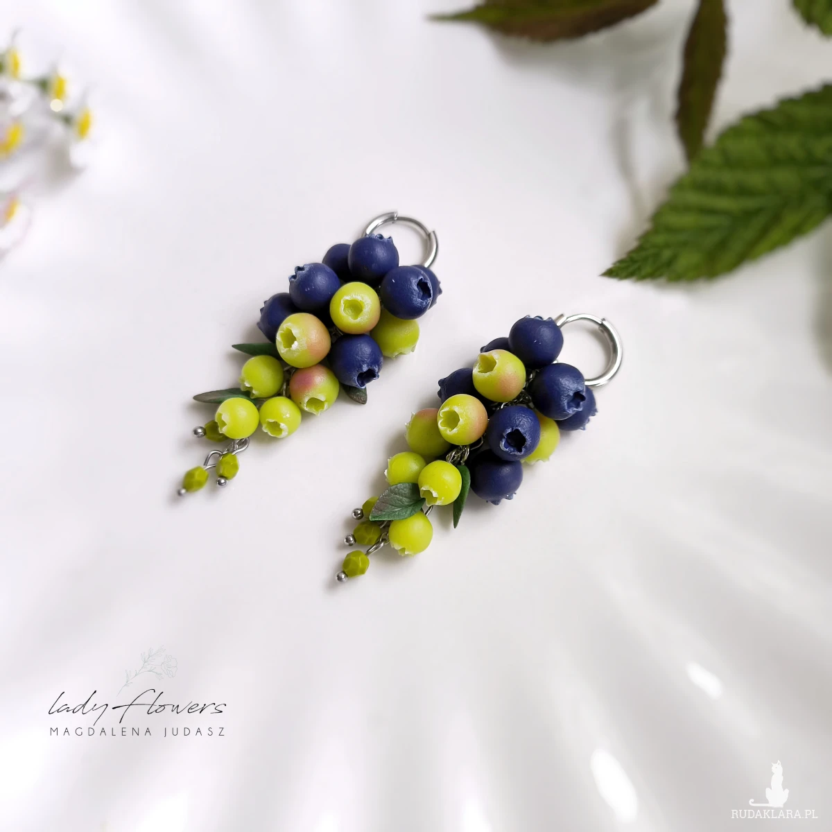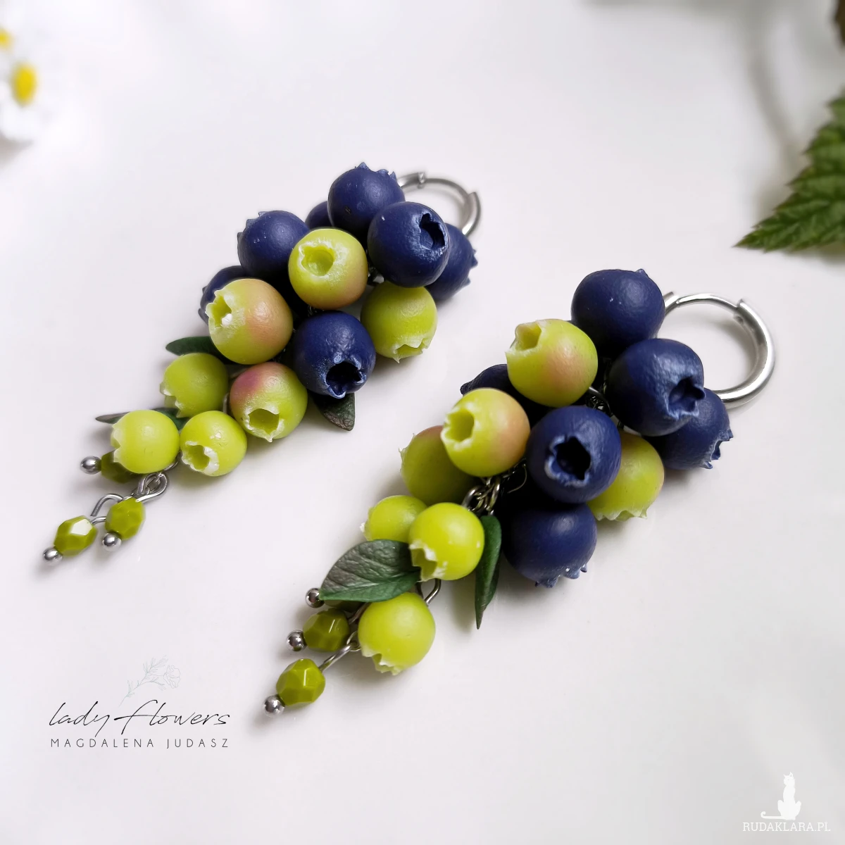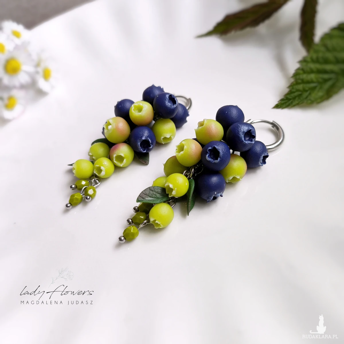 Śliczne kolczyki z ręcznie wykonanymi jagodami