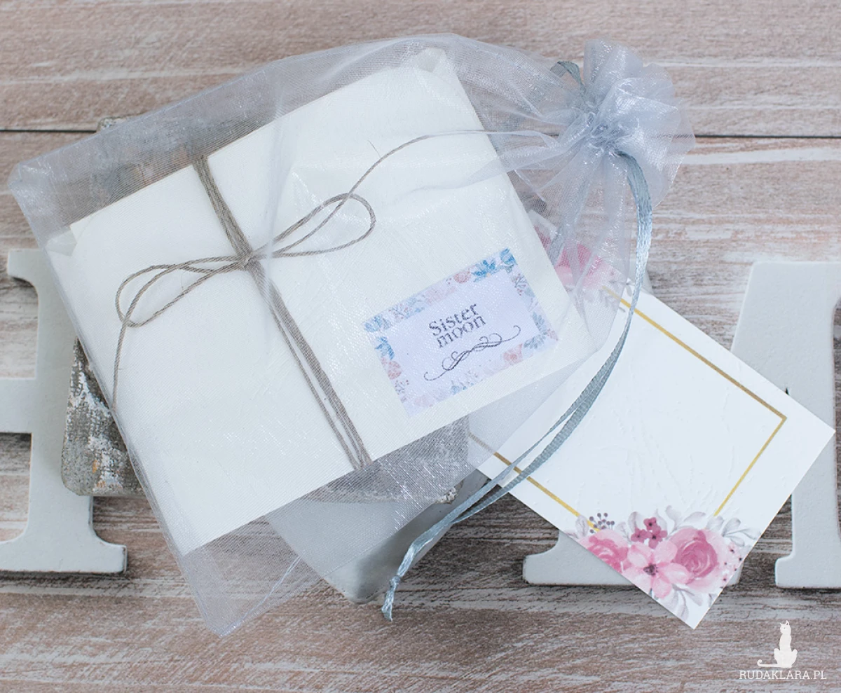 Bransoletkę wysyłam zapakowaną w kartonową kopertkę przewiązaną lnianą nicią i woreczek z organzy, z dołączoną etykietą opisową.