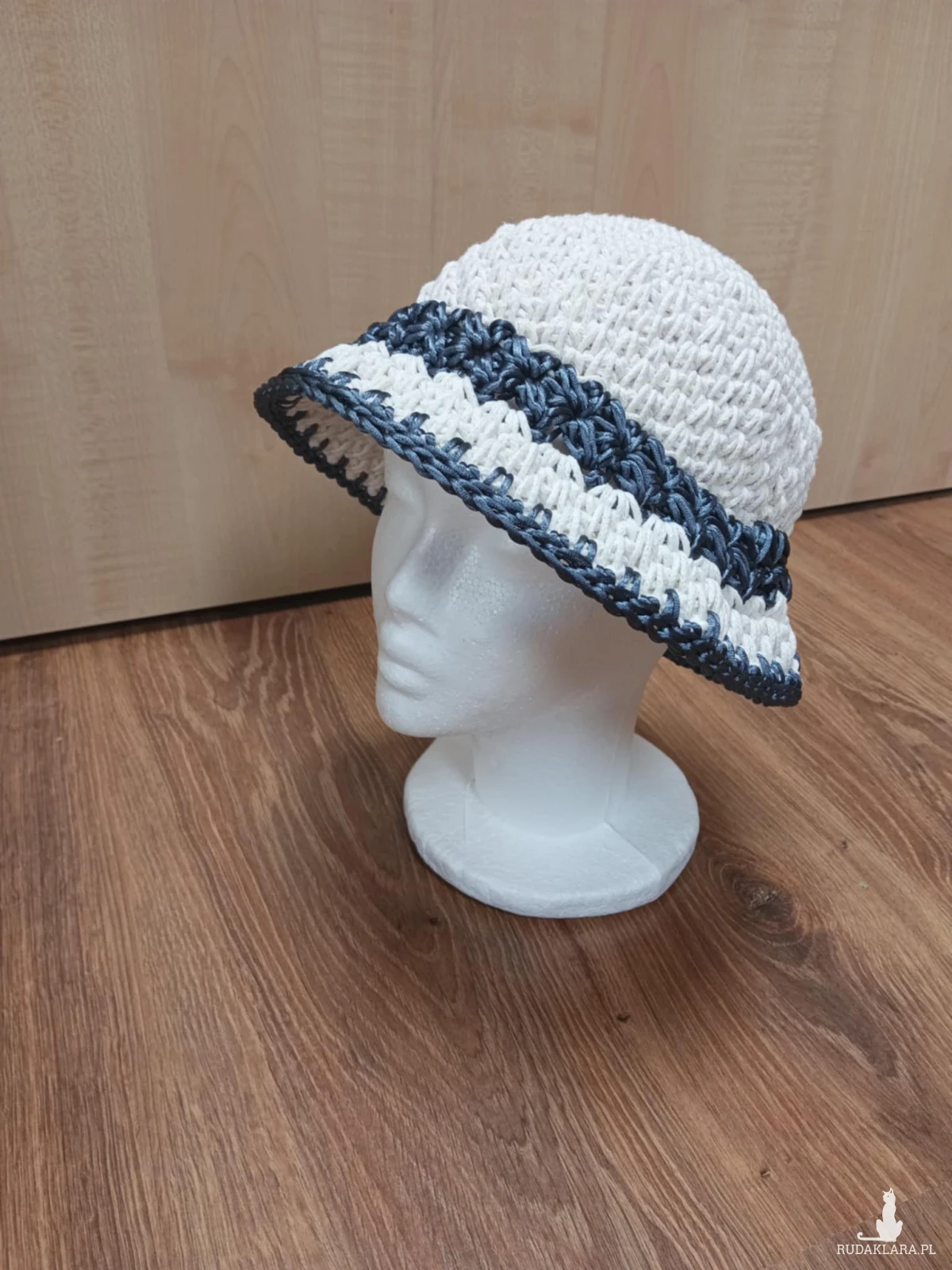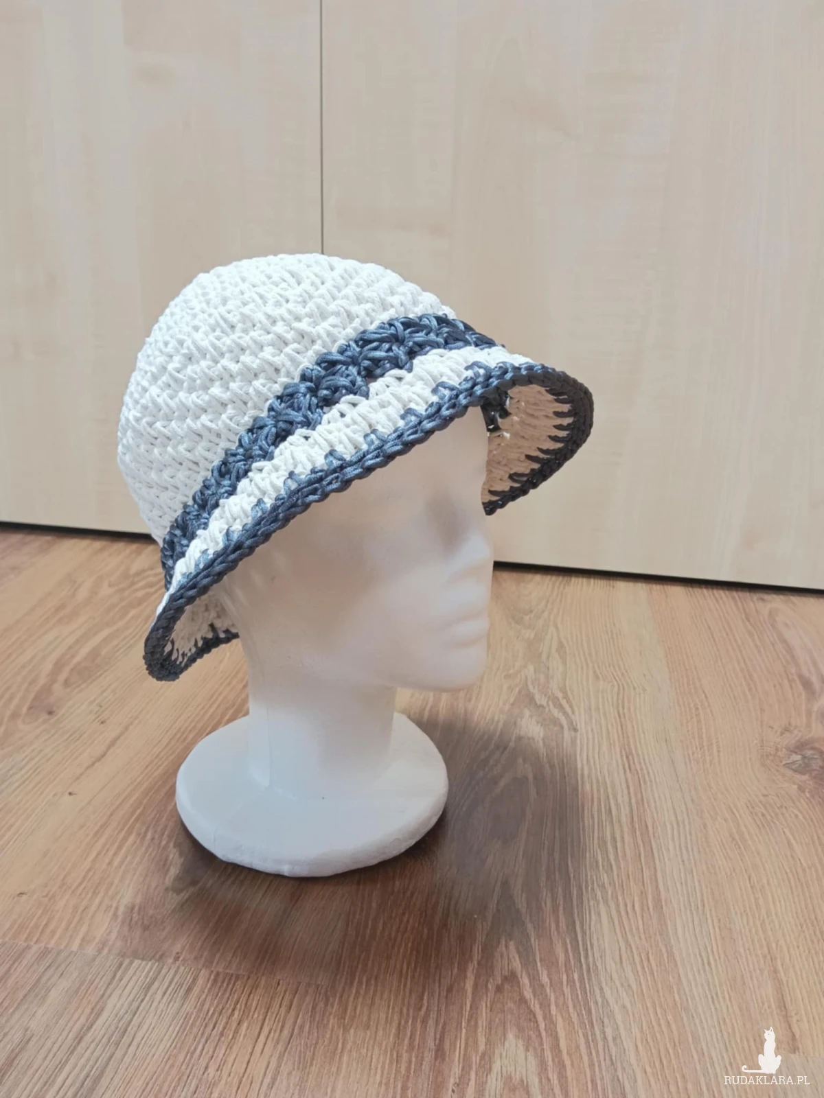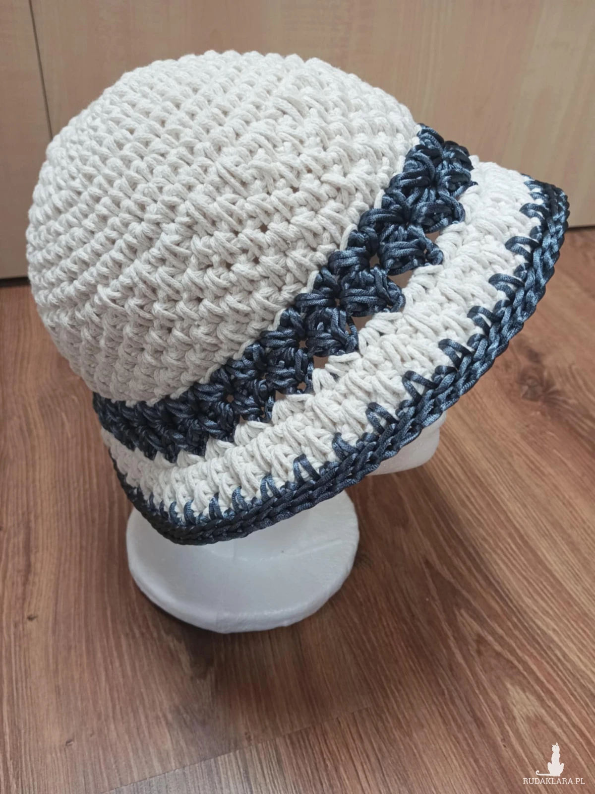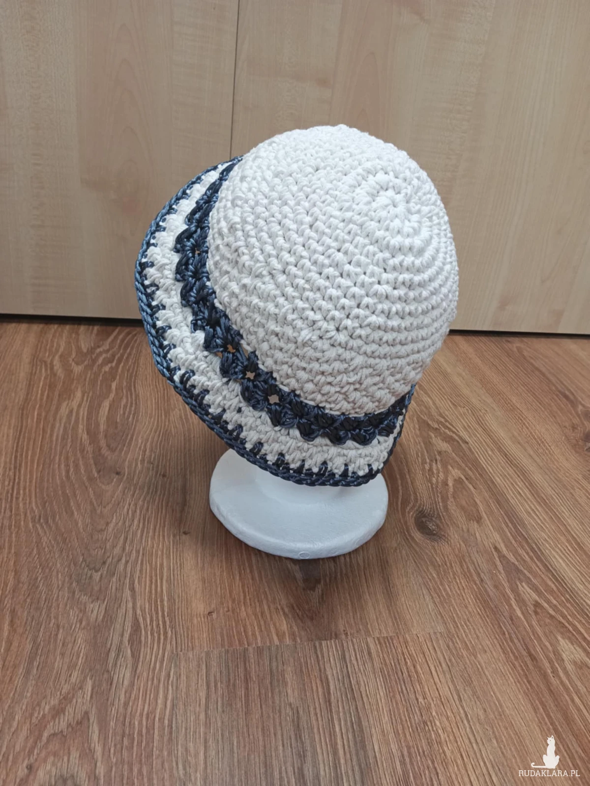 Kapelusz zrobiony na szydełku ze sznurka bawełnianego w kolorze ecru. Pasuje na obwód głowy ok 53-55cm