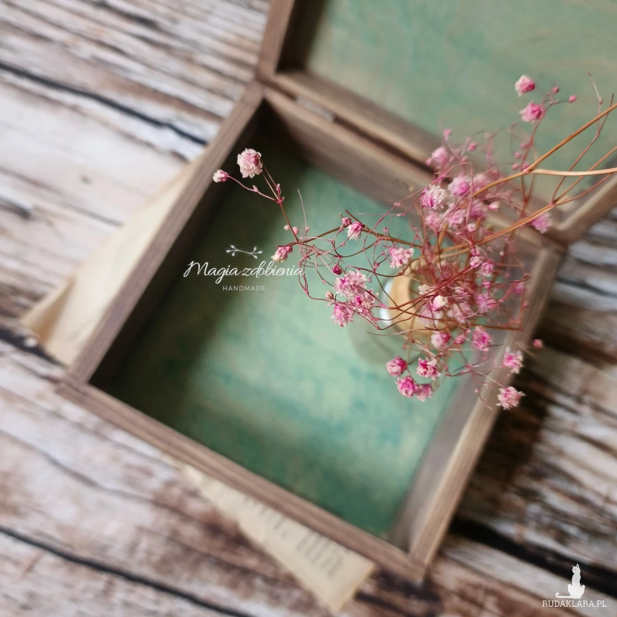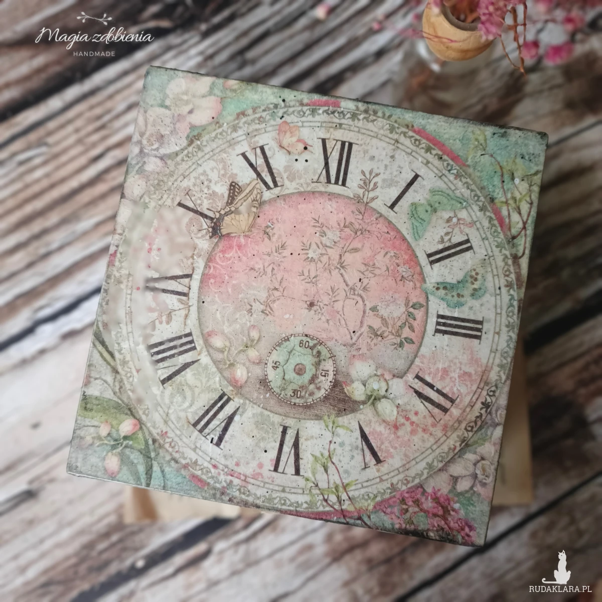 Drewniane pudełko zdobione ręcznie techniką decoupage.