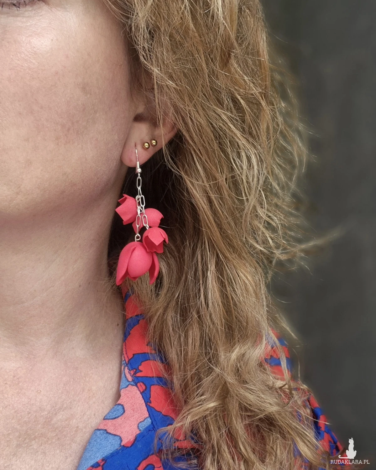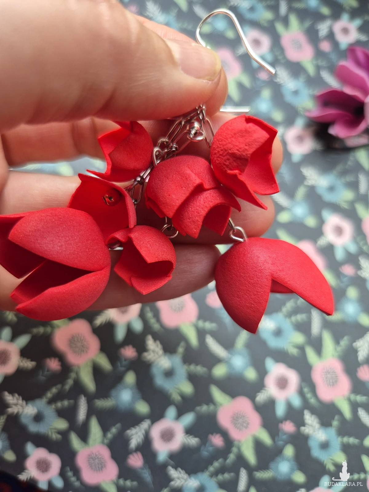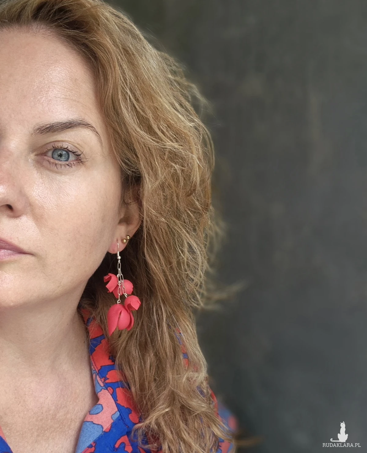 Kolczyki czerwone kwiaty lekkie energetyczne duze polecam