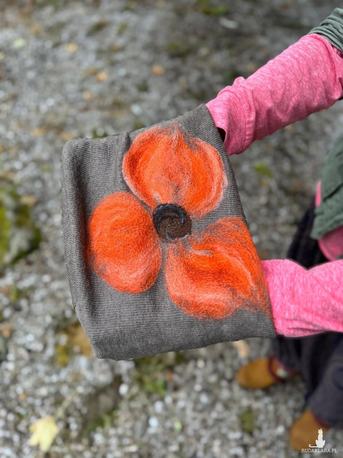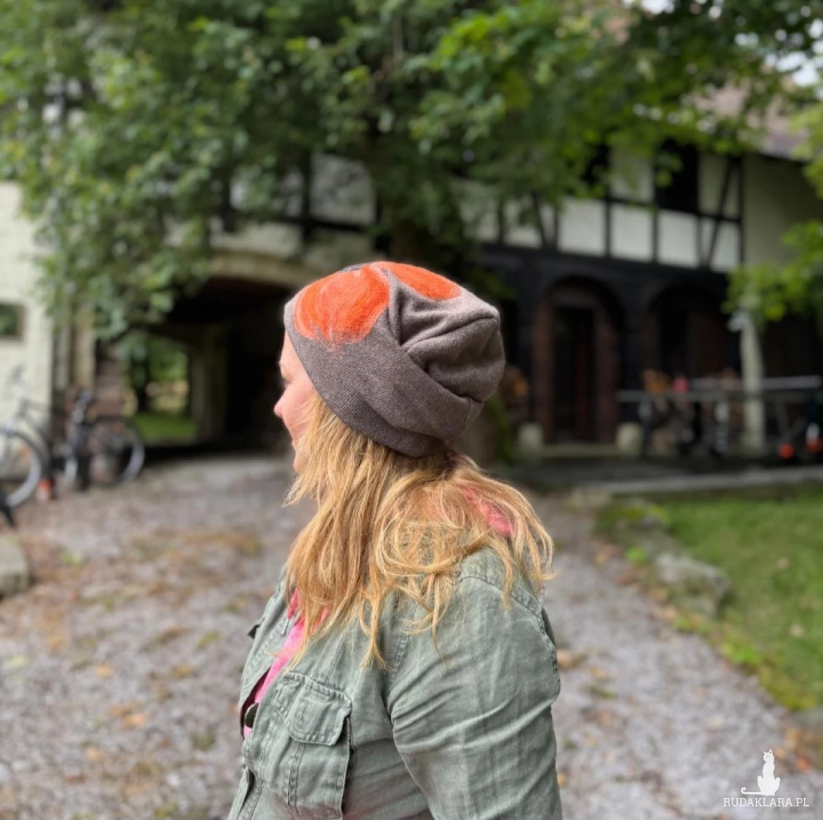 czapka wełniana filcowana zimowa brązowa ostatnia, handmade w kwiaty na podszewce-- rozmiar uniwersalny, wełniana, filcowana wełną merynosów, bardzo ciepła, fantastyczna, miła, miękko układa się na głowie, niesamowicie zwraca uwagę, doskonałą na codzienne noszenie jak i na prezent, zawsze możesz ją założyć po basenie i przeżyjesz,box a1