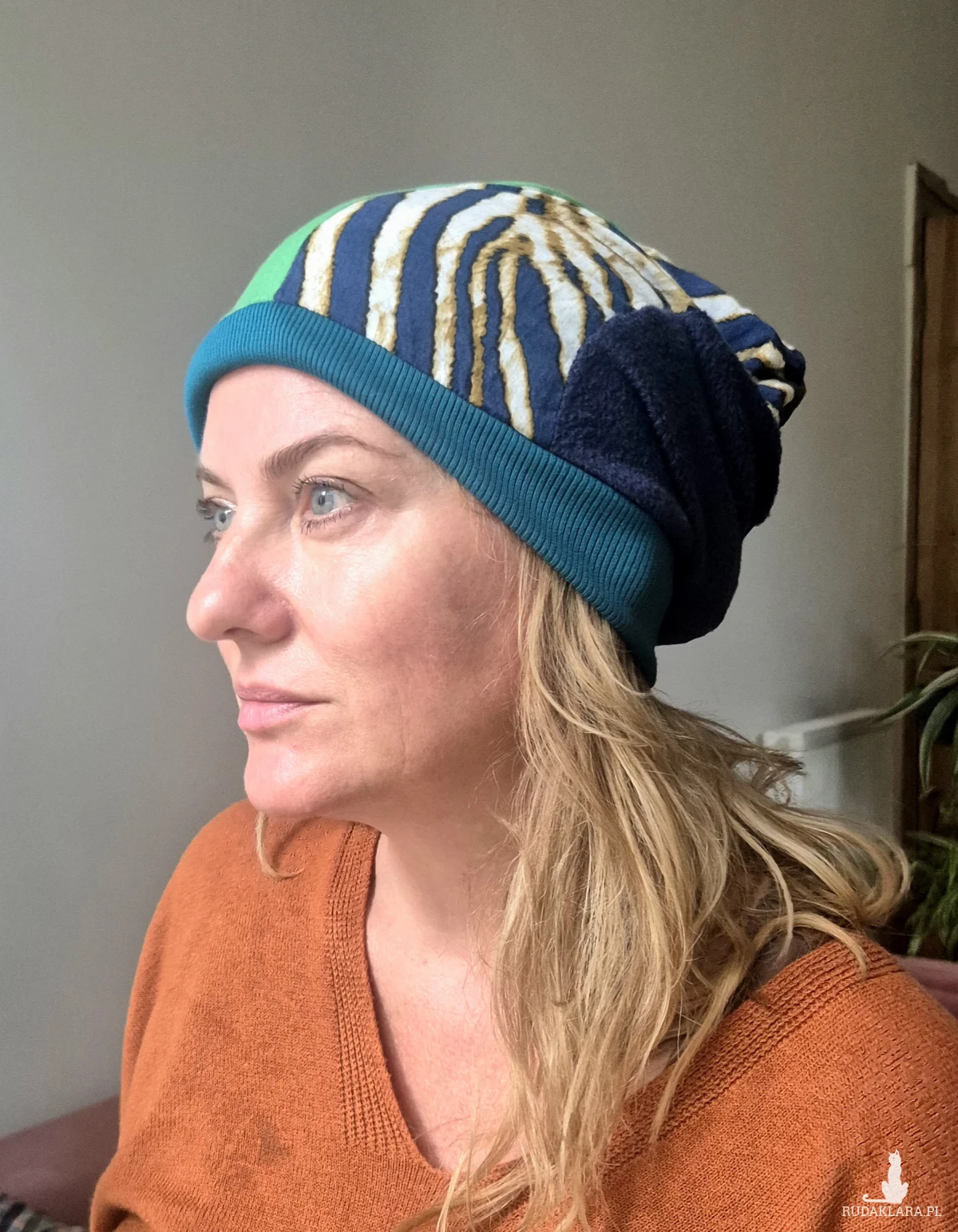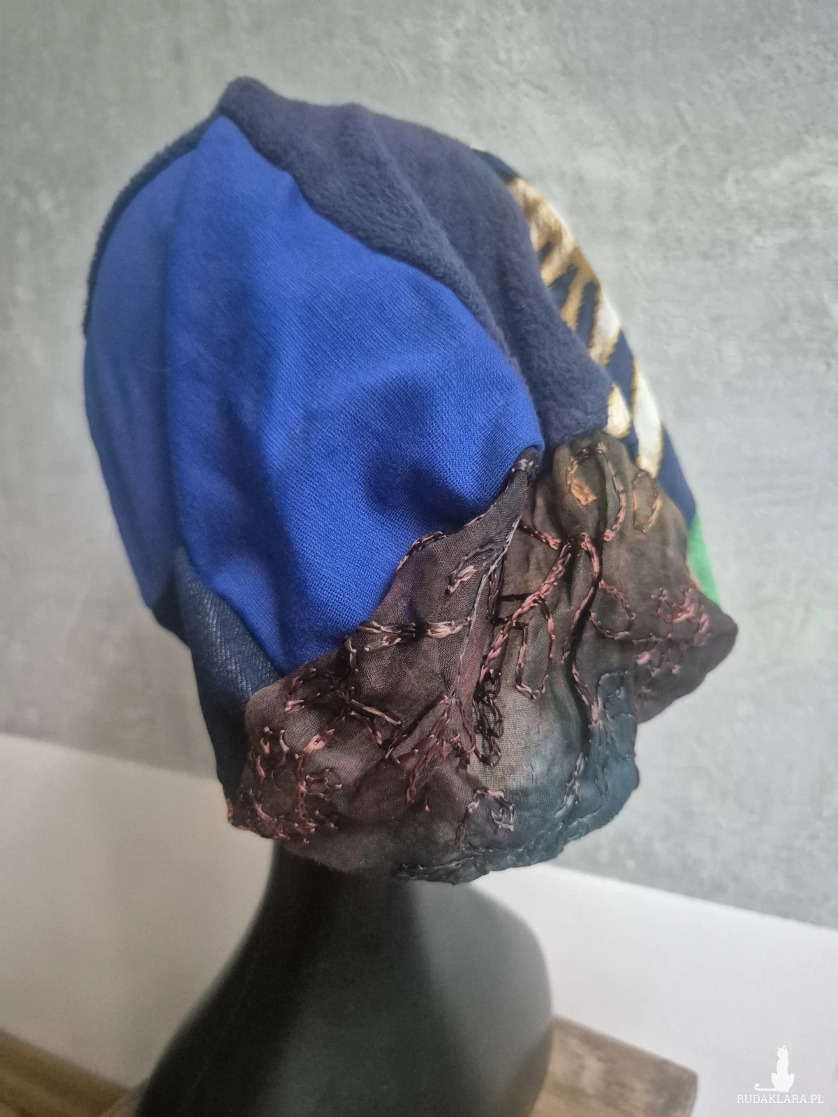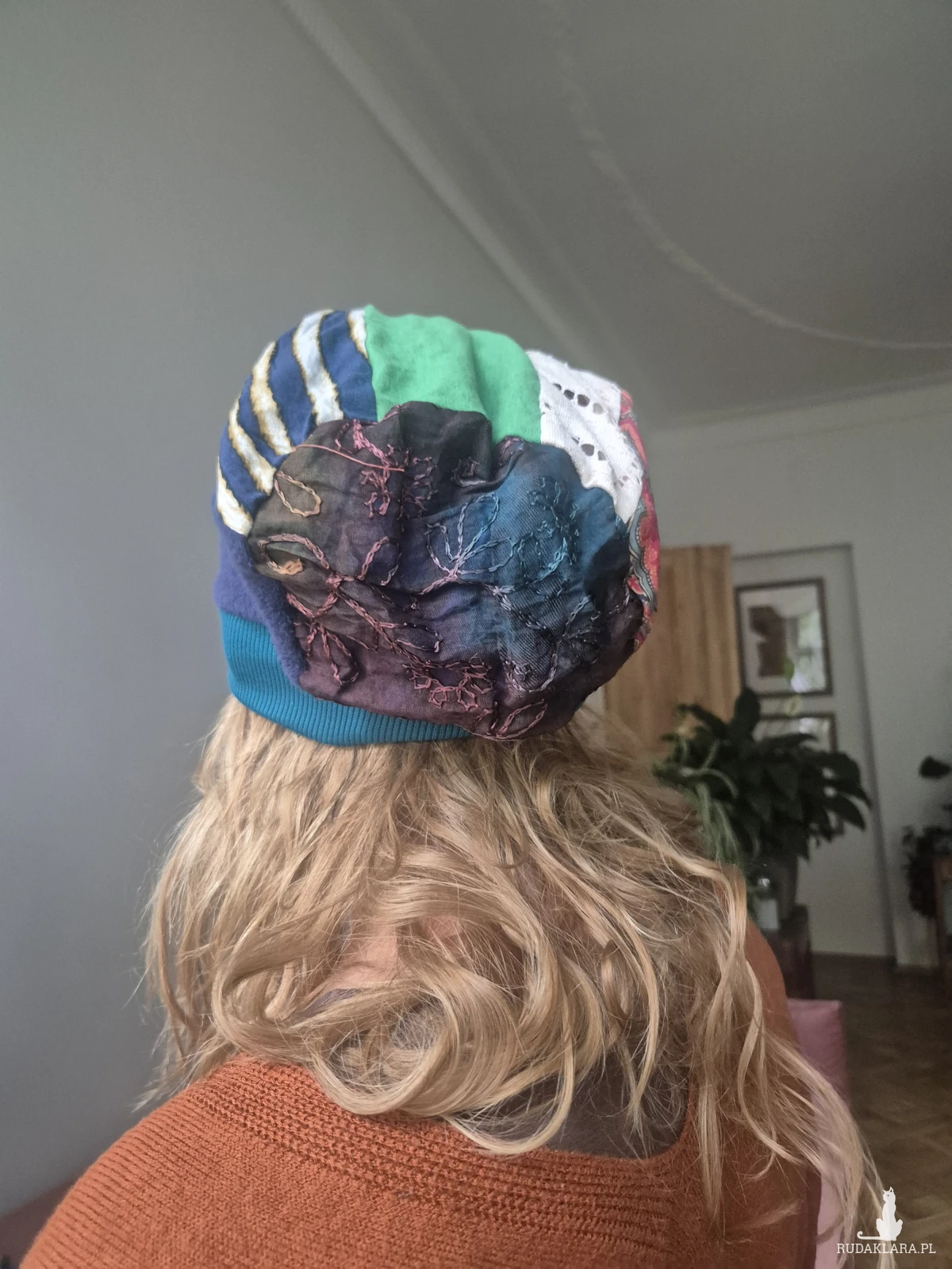 Czapka kolorowa codzienna Smerfetka szyta patchworkowa rozmiar uniwersalny na podszewce box a1