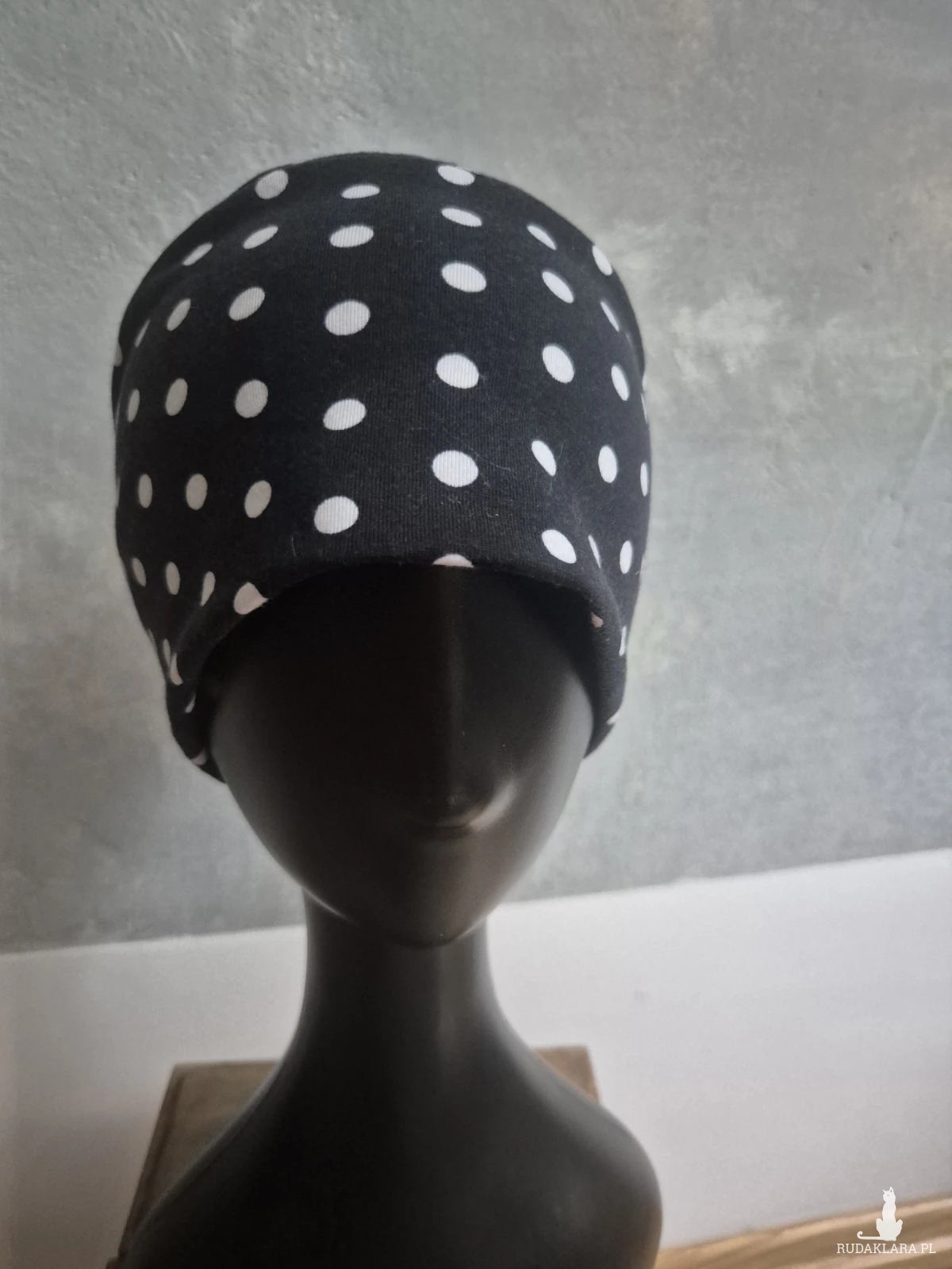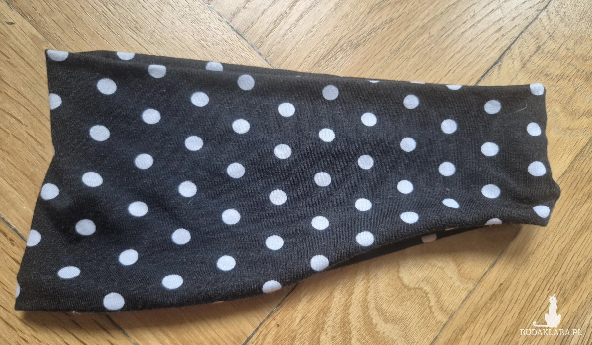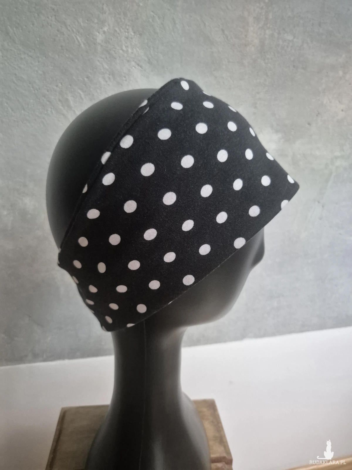 opaska czarna w białe grochy na podszewce, uniwersalna podwójna świetna na codzienne noszenie lekko rozciągliwa, miękka, polecam, box a1