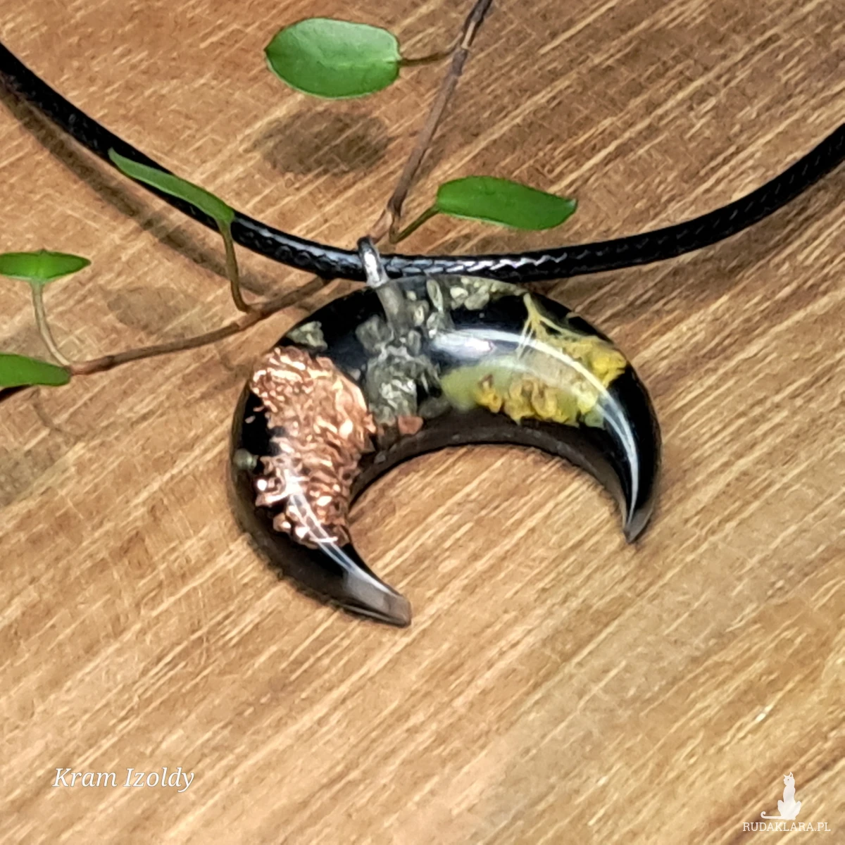 Unikatowa lunula inspirowana dawną symboliką słowiańską – talizmanem kobiecości, ochrony i siły cykli natury. Ta współczesna interpretacja została zamknięta w formie orgonitu, łącząc w sobie tradycję z nowoczesną energią.