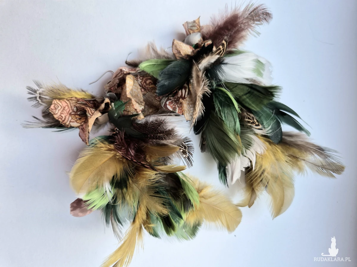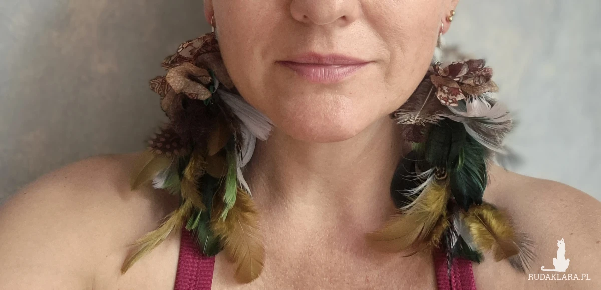 Kolczyki pióra w kolorach ziemi bardzo leciutkie bujne zaskakujące robią wrażenie polecam