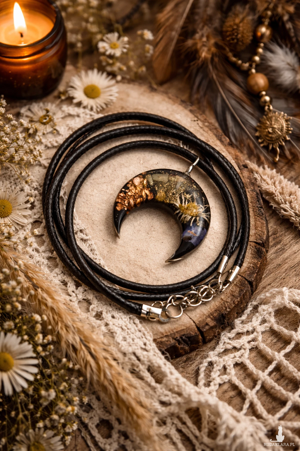 Każda lunula powstaje ręcznie, dlatego może delikatnie różnić się detalami. Dzięki temu otrzymujesz unikatowy egzemplarz biżuterii, który podkreśla indywidualny styl i zamiłowanie do natury oraz symboliki słowiańskiej.