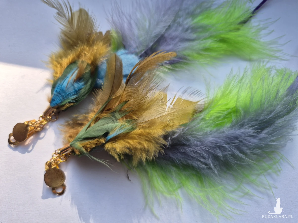 Klipsy pióra dlugie  stylowe leciutkie cudne Box X1
