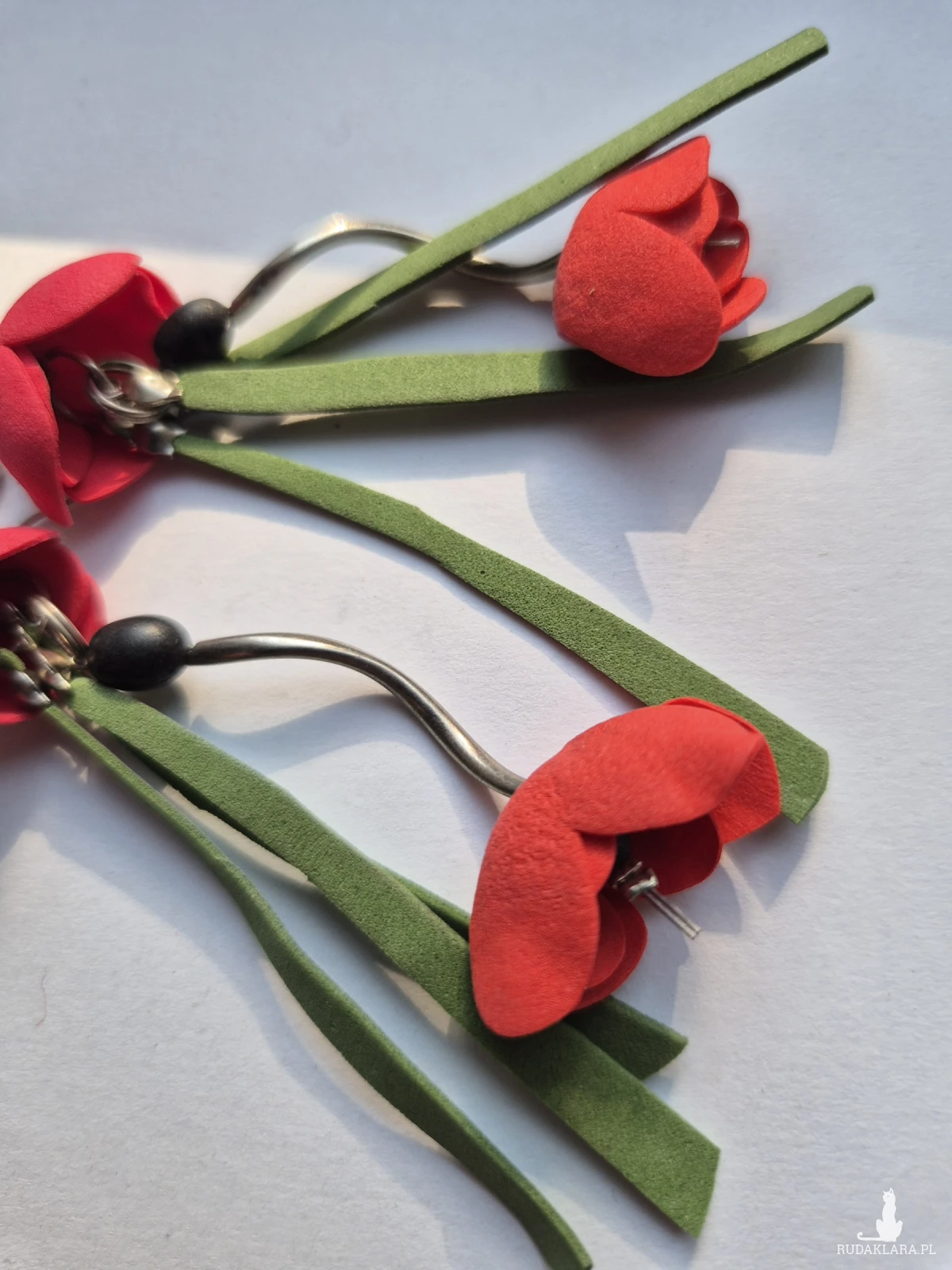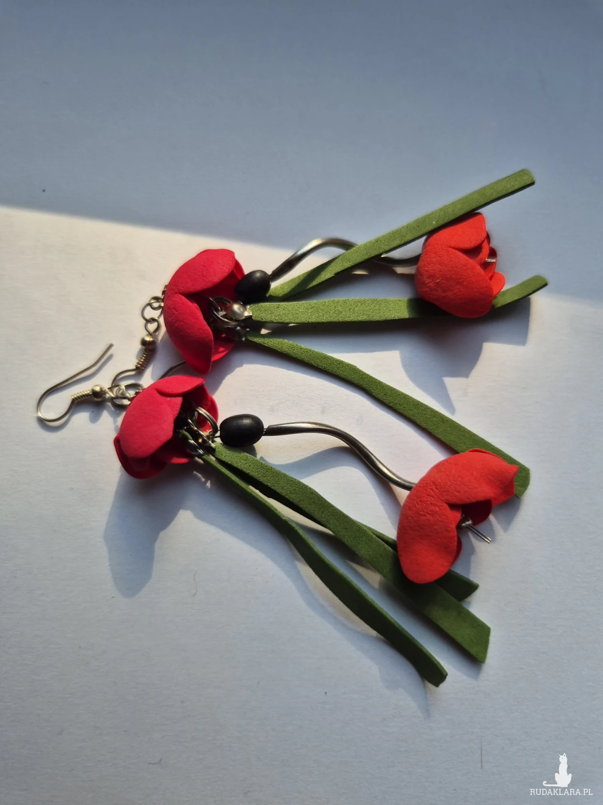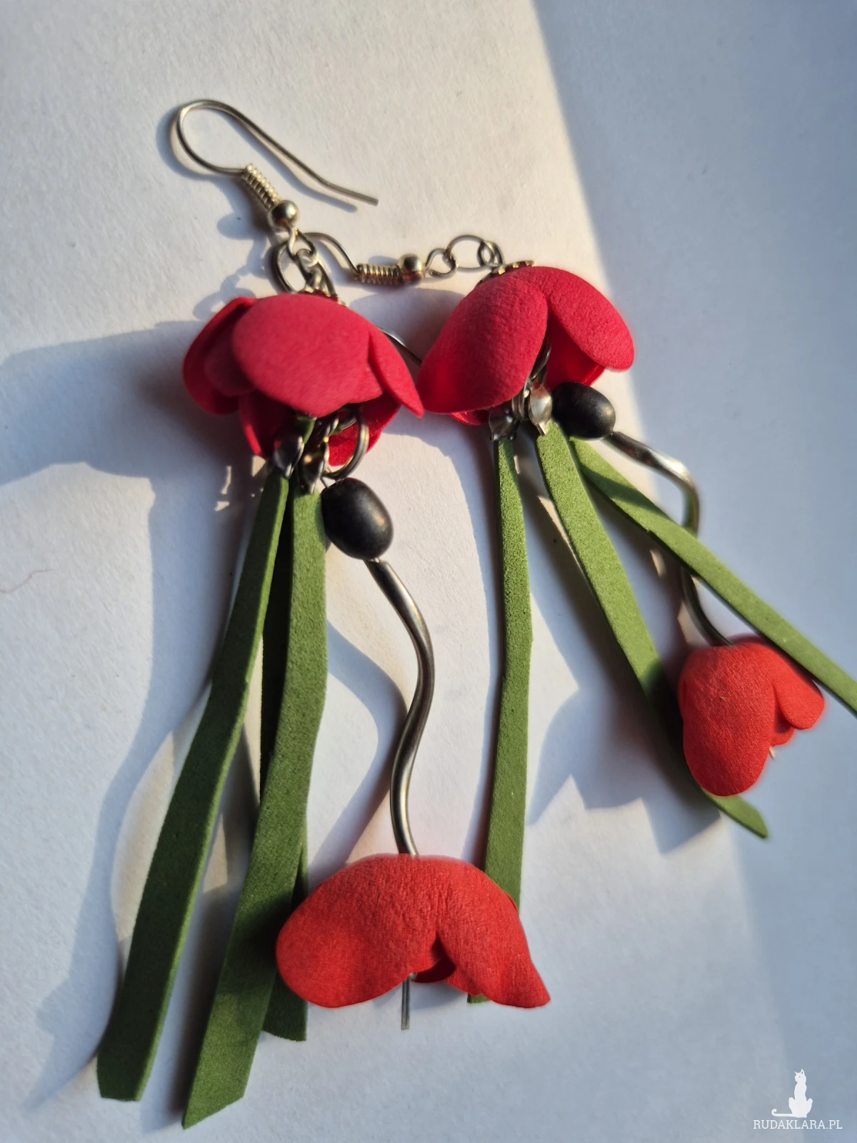 Kolczyki kwiaty czerwone leciutkie naprawdę robią wrażenie cudne polecam