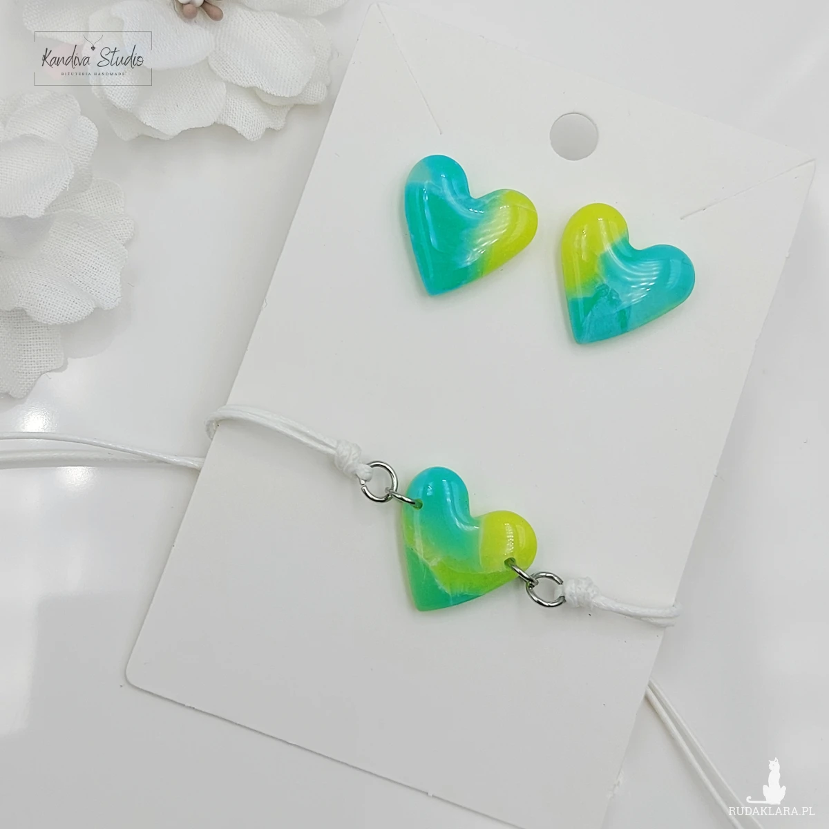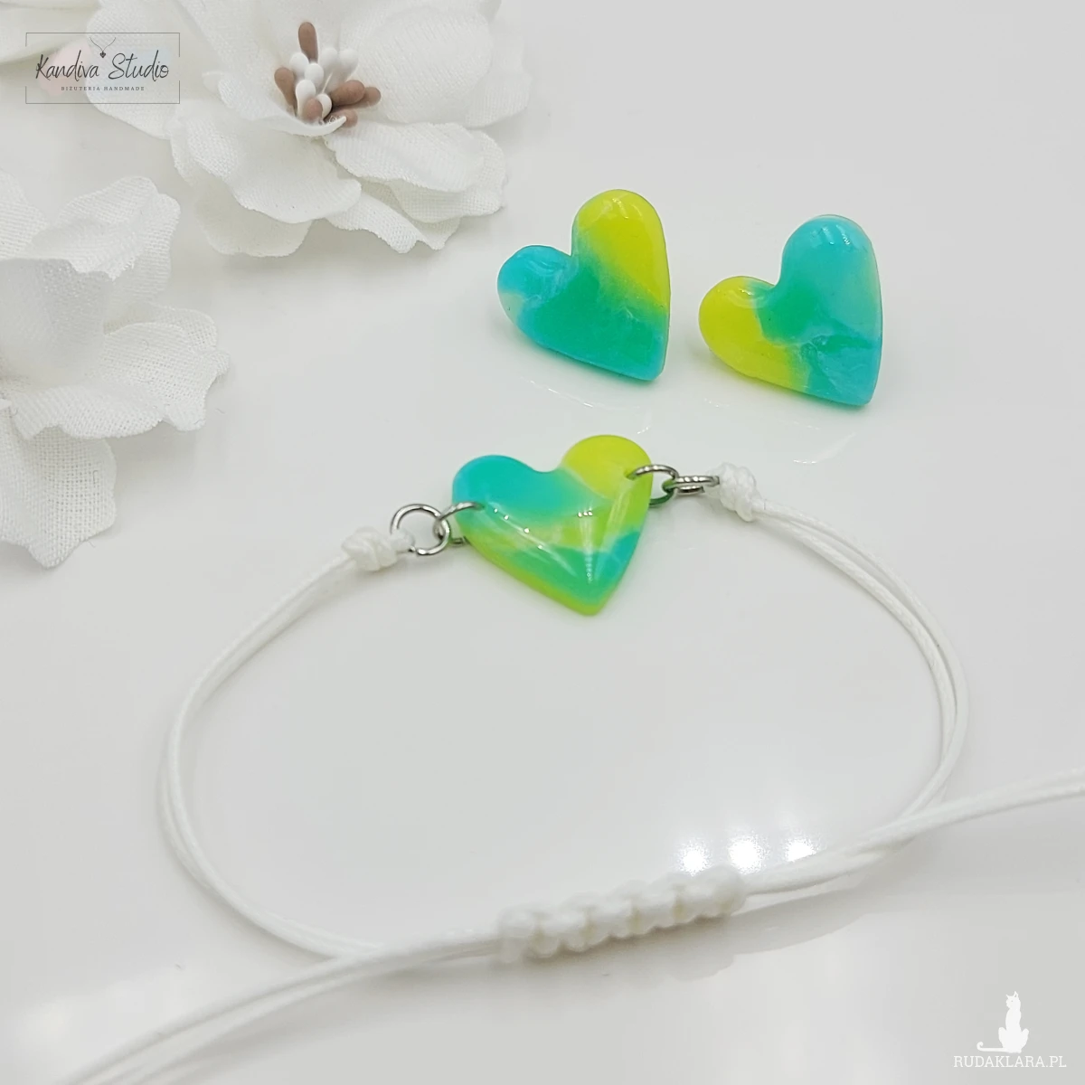 Zestaw biżuterii z glinki polimerowej w kolorach: żółty i morska zieleń.
