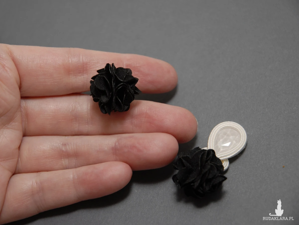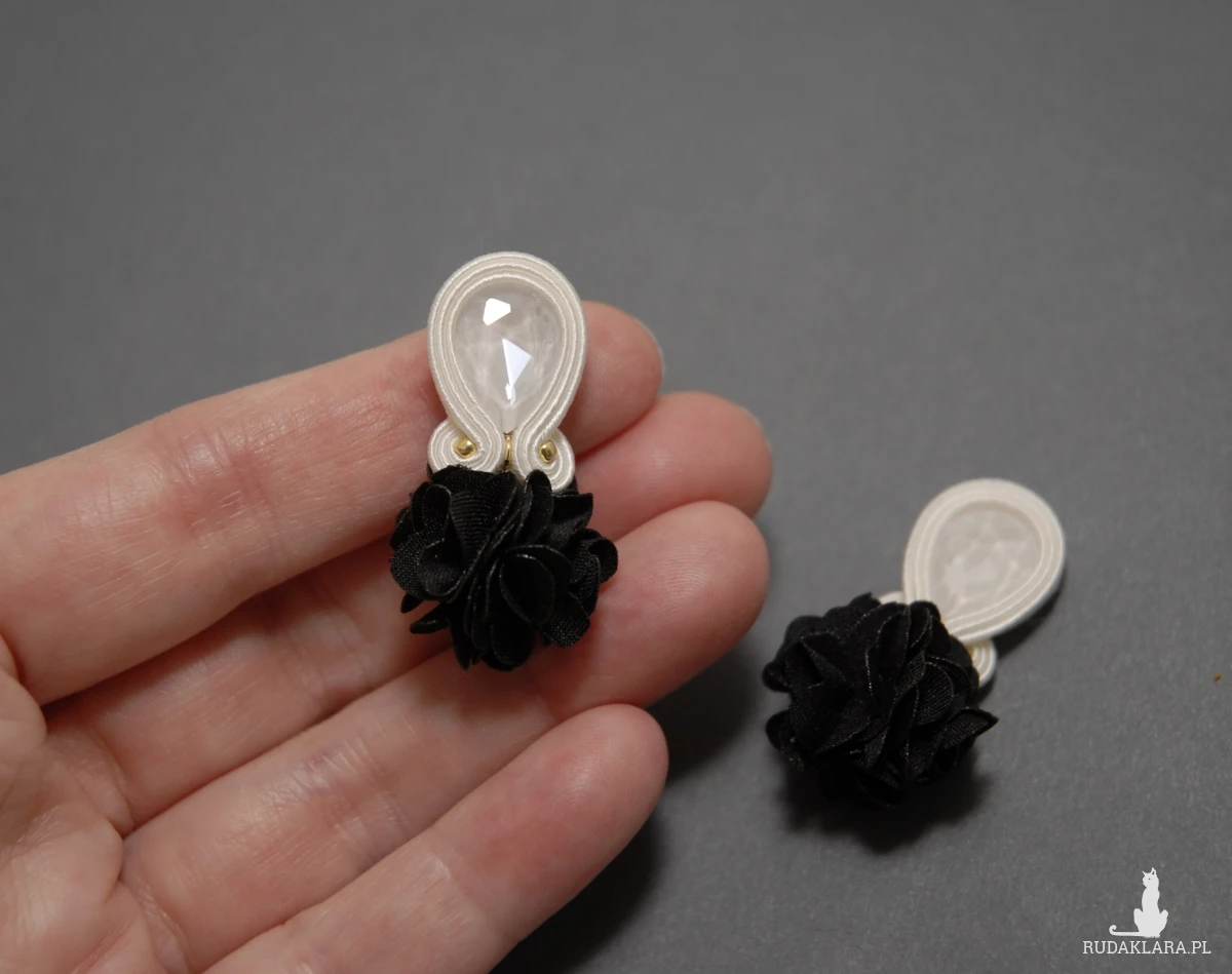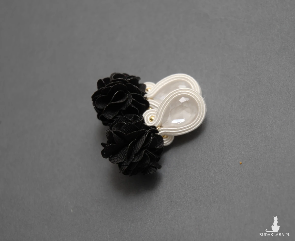 czarno-białe kolczyki lub klipsy sutasz z kwiatkami