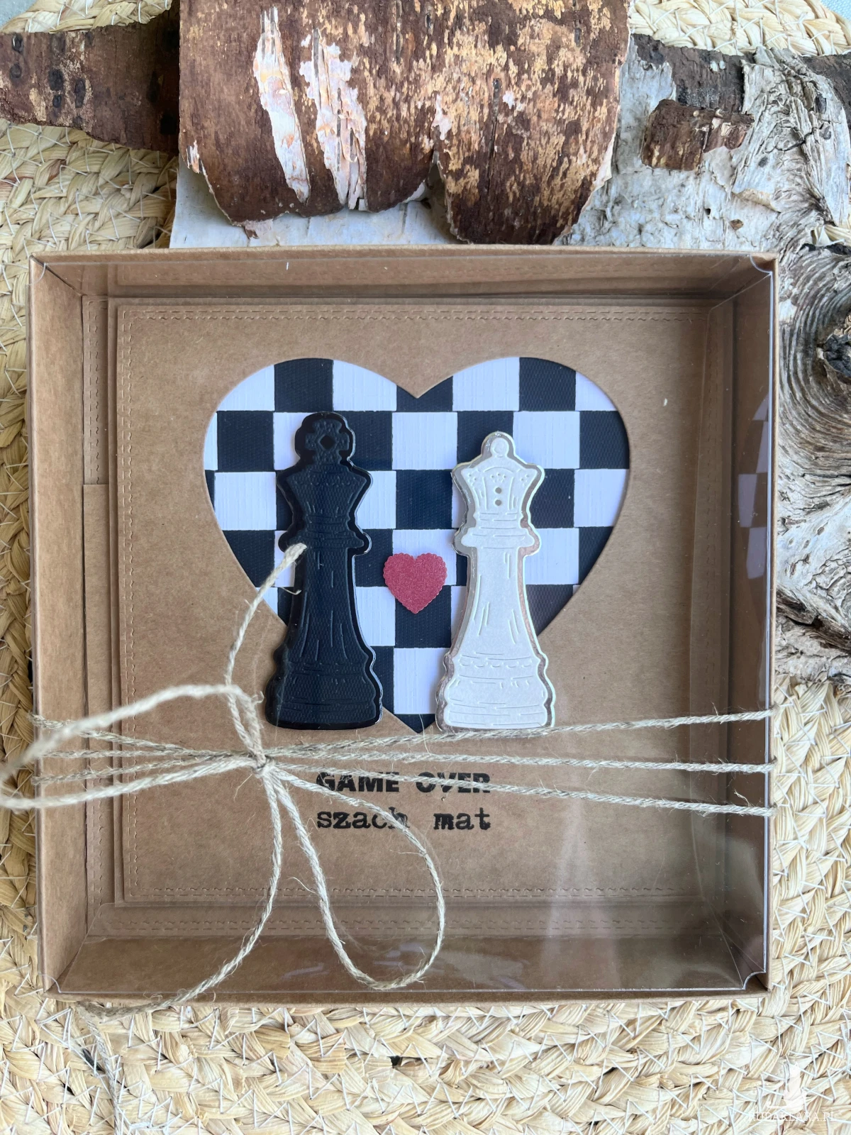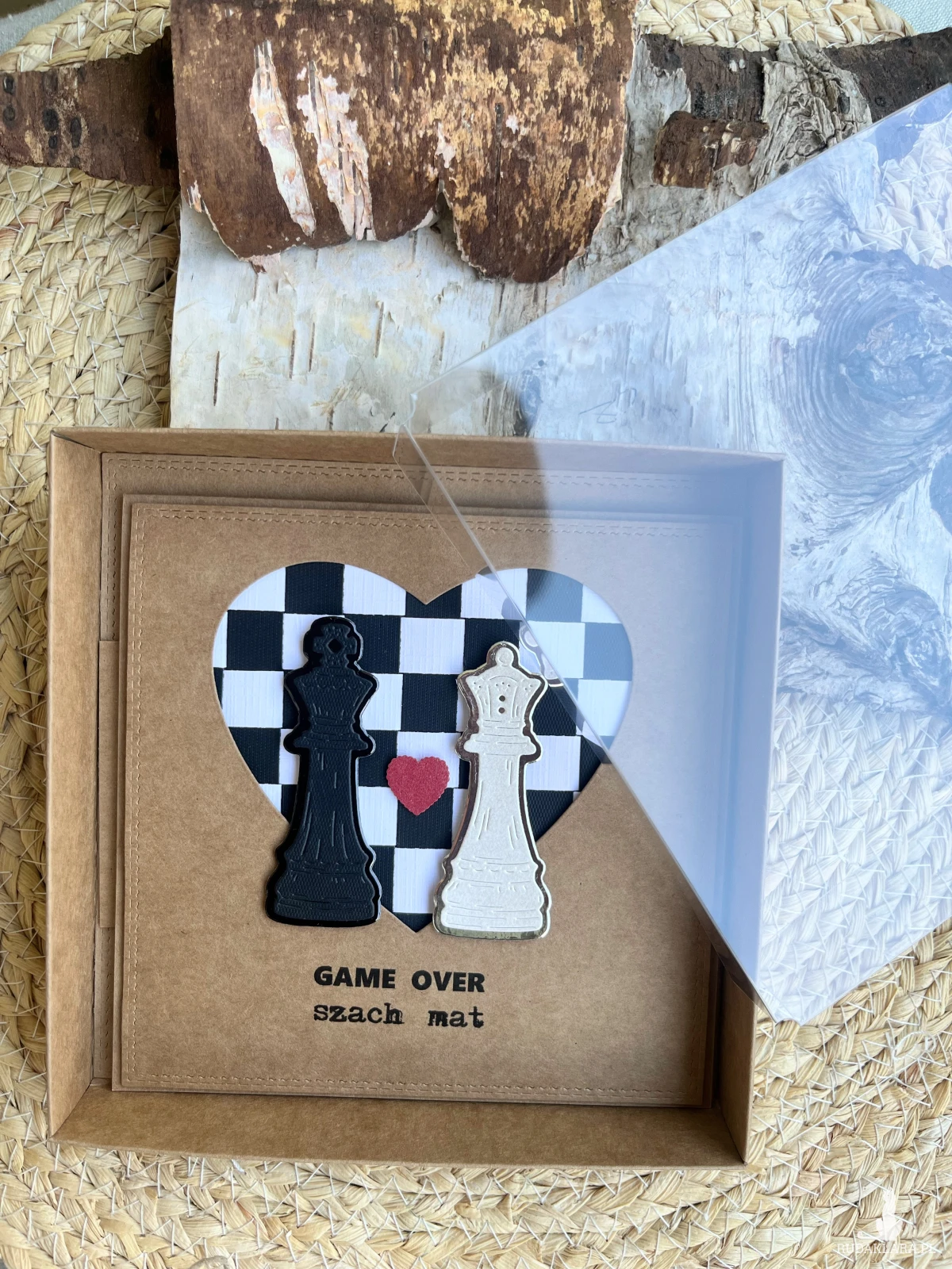 Wyjątkowa i elegancka kartka okolicznościowa wykonana z najwyższej jakości materiałów do scrapbookingu w stylu eco-minimalistycznym. Zdobiona elementami 3D. Wykonana z dbałością o każdy detal. Kartka przestrzenna w komplecie z pudełkiem.Wewnątrz kartki znajduje się miejsce na wypisanie własnych życzeń.Natomiast na dnie pudelka umieszczono kieszonkę na małe co nieco lub kupon lotto .Całość obwiązana sznurkiem Wielkość kartki 14x14 a pudełka 15,5x15,5 x2.5cm.W tej postaci komplet jest do natychmiastowej wysyłki