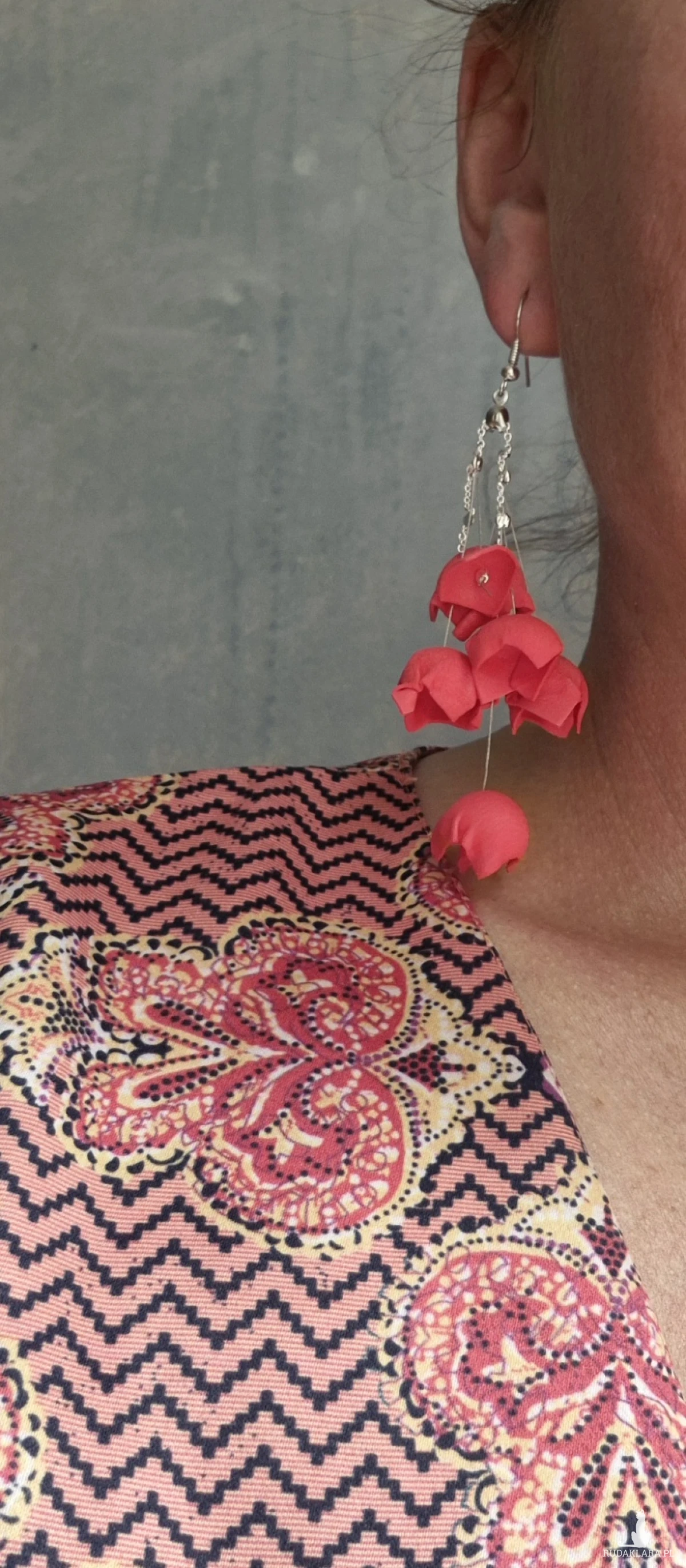 Kolczyki czerwone eleganckie kwiaty na łańcuszku niesamowicie zwracają uwagę polecam serdecznie