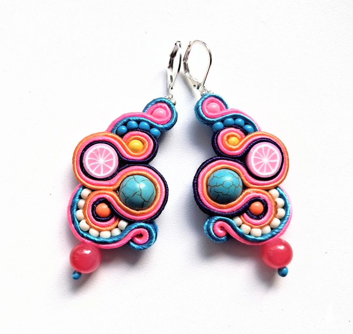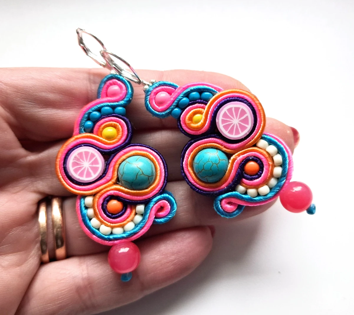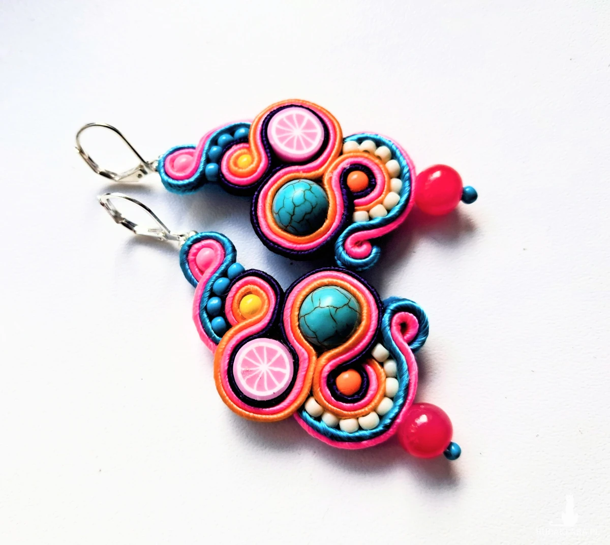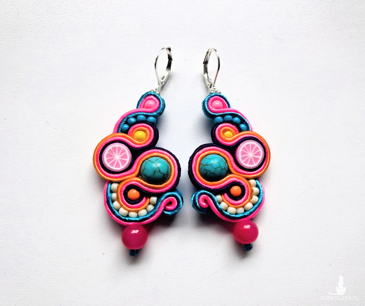 Kolczyki sutaszowe ręcznie haftowane.